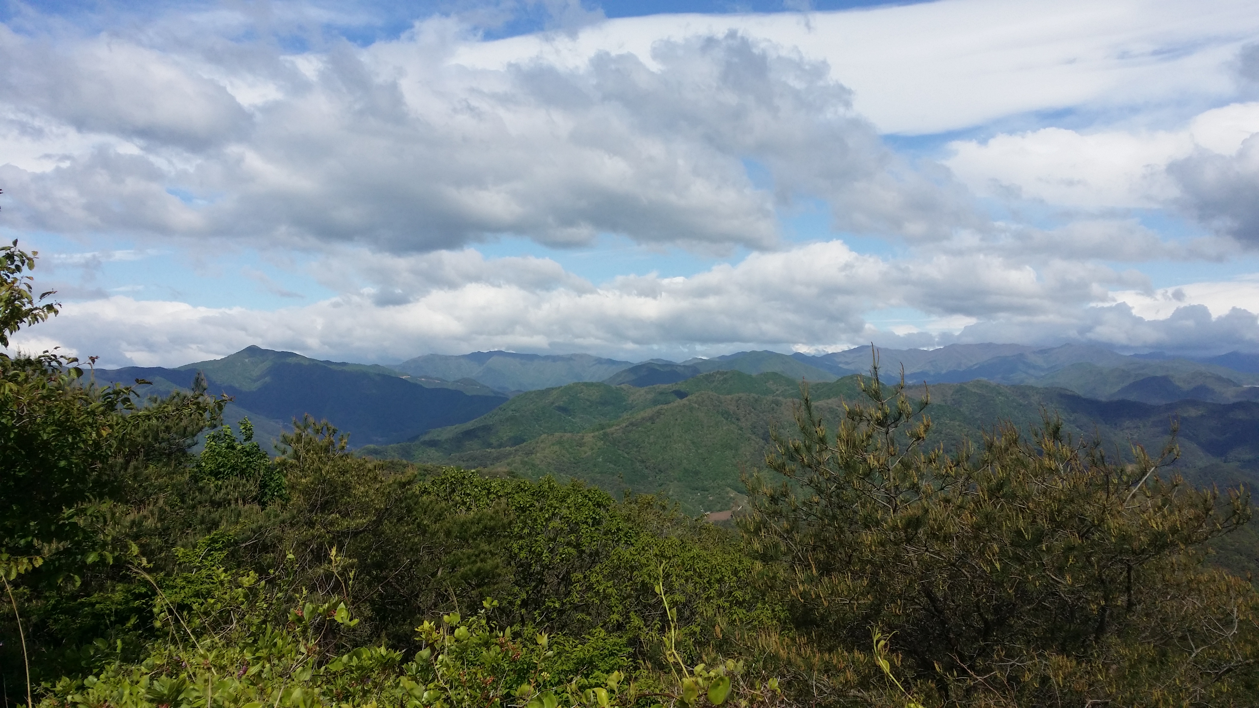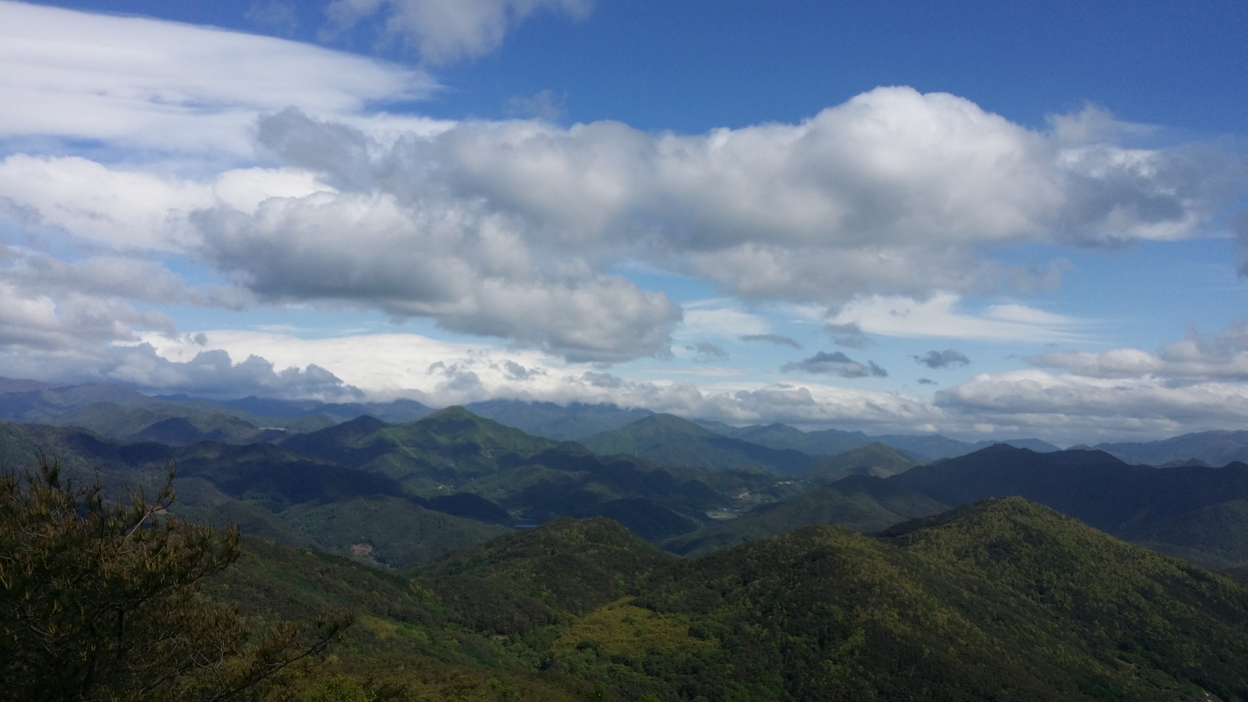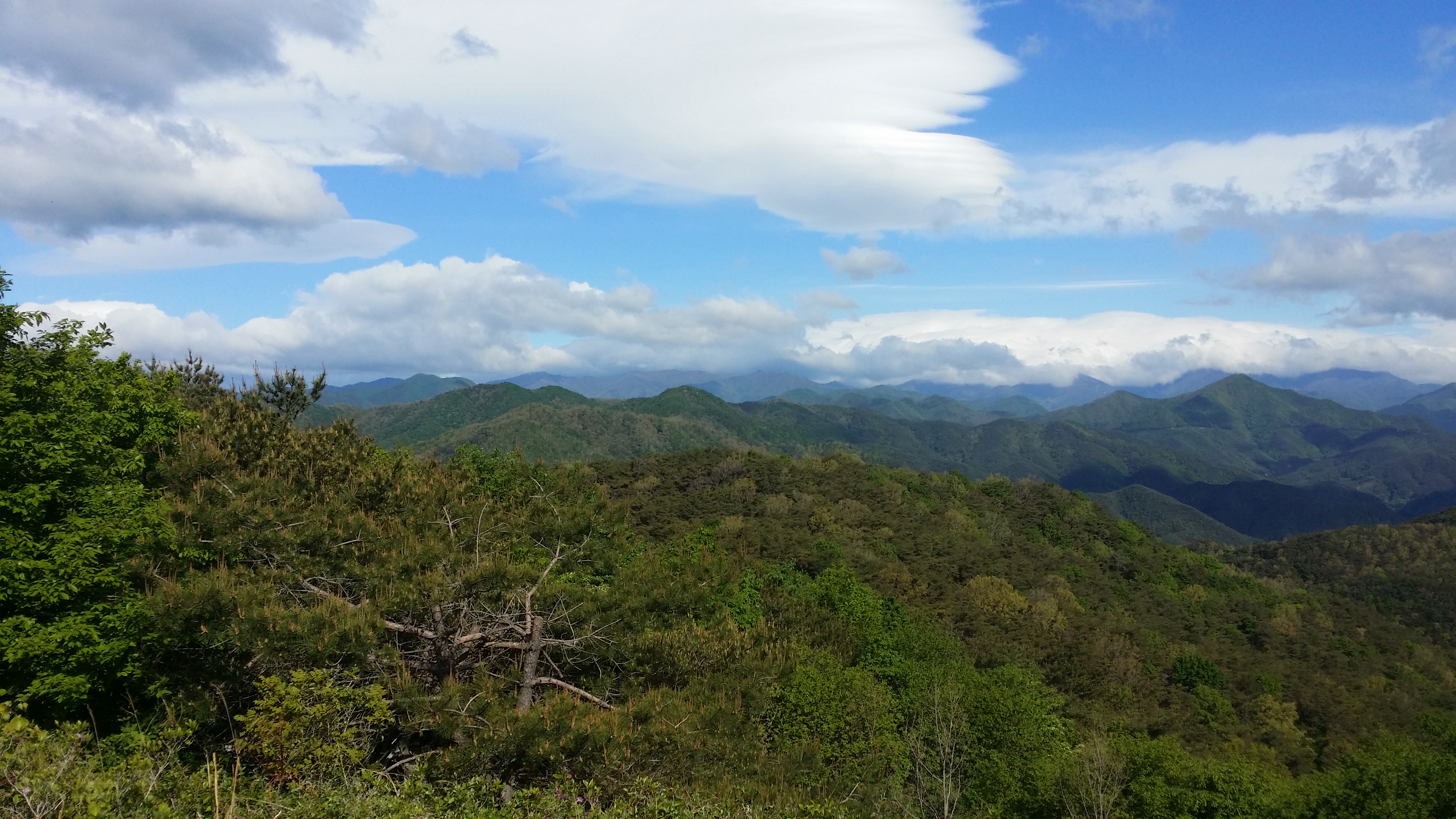 08:56 526.9봉(△)다시 바라 보지만 지리산은 여전히 구름에 덮여 있다 09:04 우듬지 분기점09:05 546.8봉09:21 602.6봉602.6봉에서 지리산을 중심으로위사진 우측우측우측 / 옥산우측우측09:28 옥산 갈림길09:40 506.4봉09:52 청수 갈림길