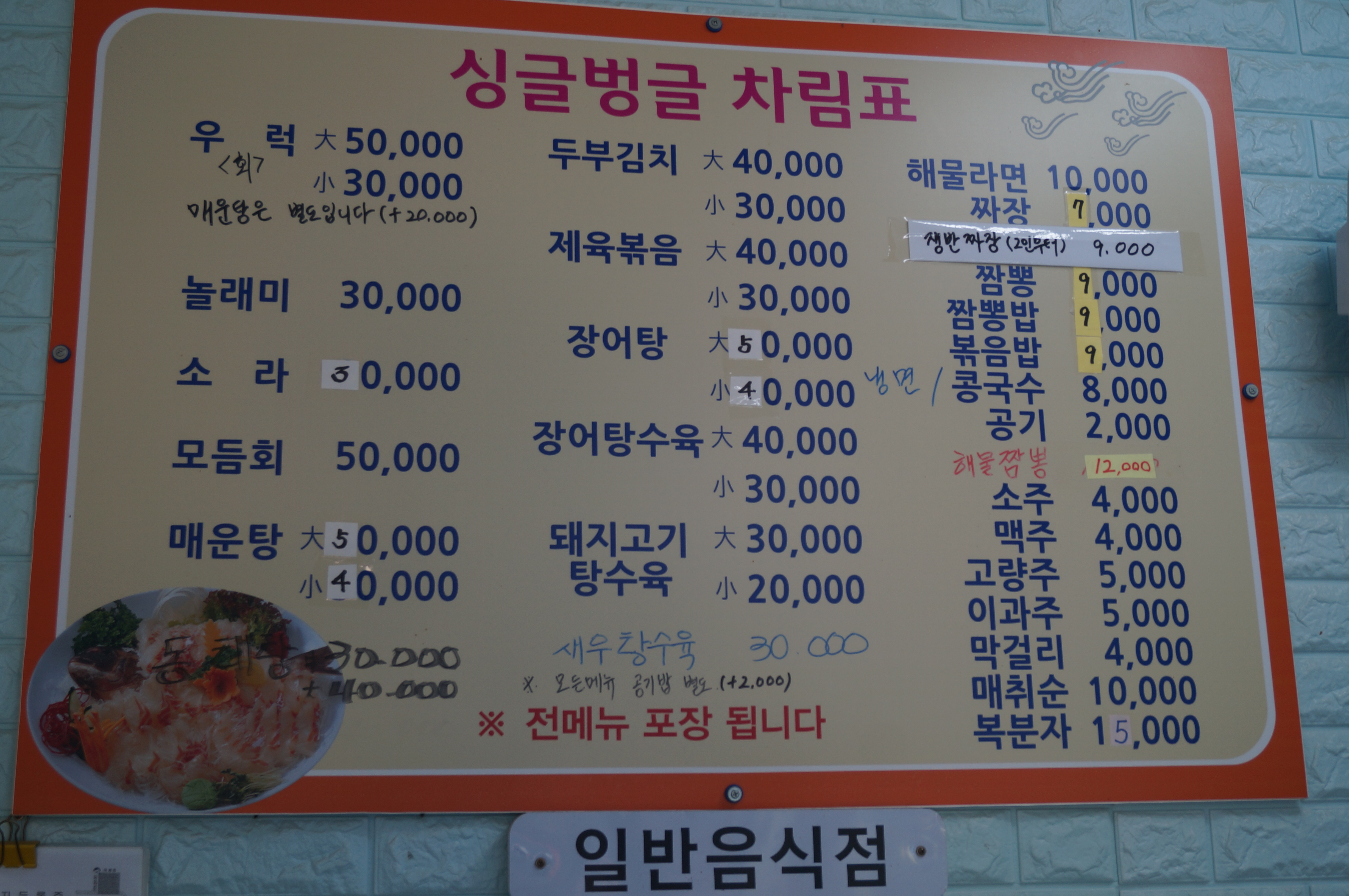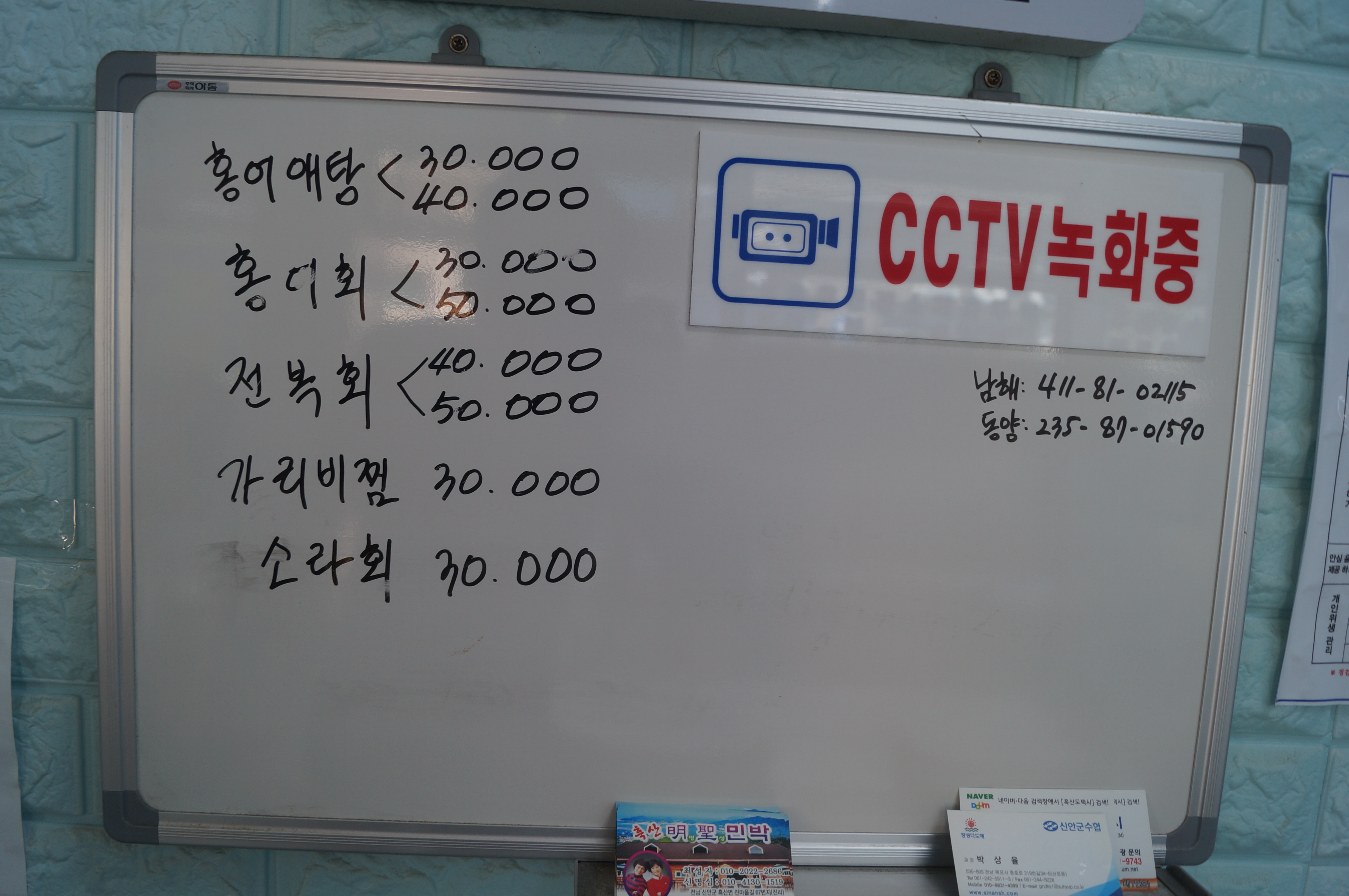 ㉱ 식당 : 숙박 시설과 겸하는곳이 다수며, 백반의 경우 1만~1만5천원, 회 3만?, 대략 19시경 영업 종료(숙박시설과 겸할경우 주인과 협의)