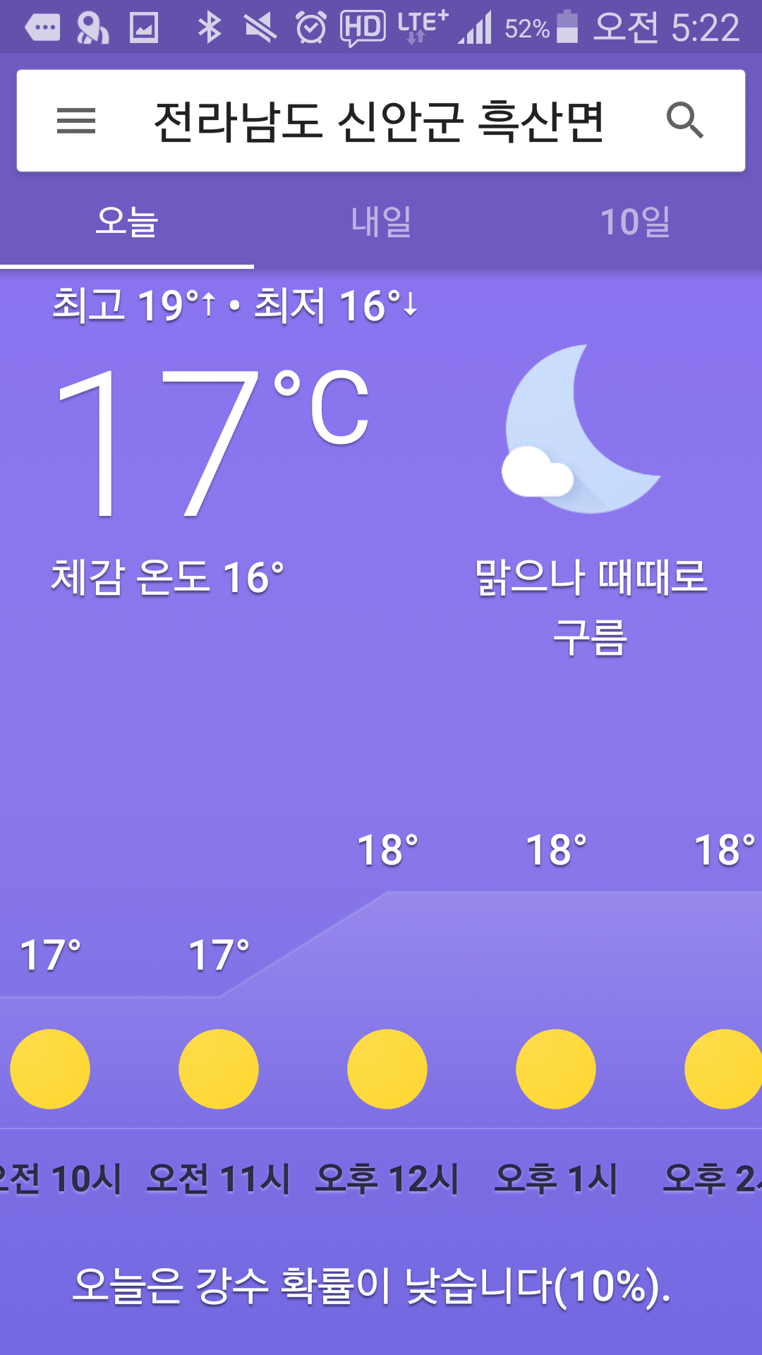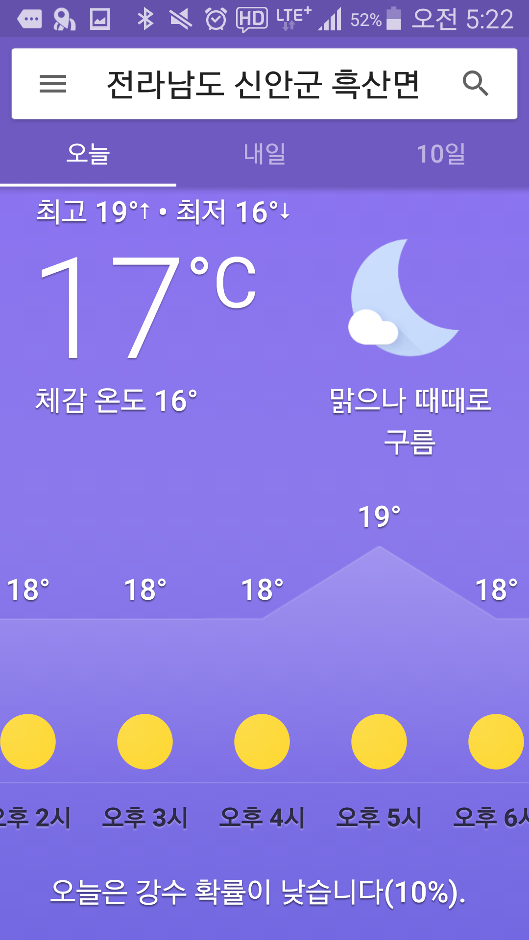 - 기상 : 17˚ ~ 18˚ , 공기질 63(보통), 바람(16/약함), 파고 1m