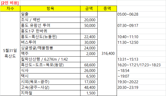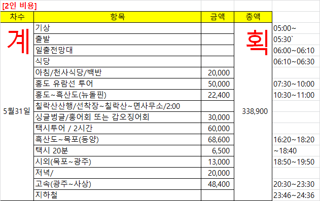 - 필수 소지품 : 신분증(없으면 배 못탐), 현금