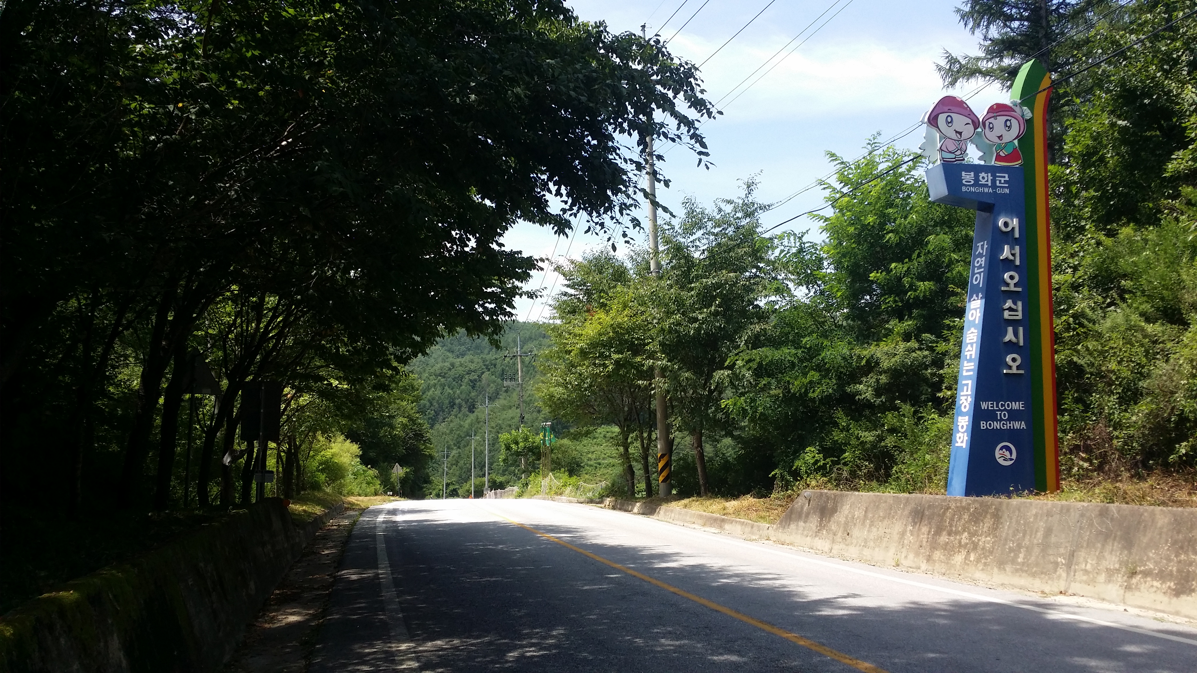13:09 산행준비 완료후 봉화군 환영 입간판 건너편에 들머리가 있다