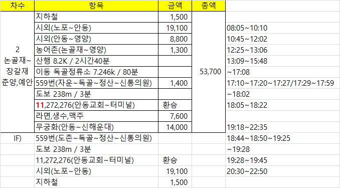 16:30 불당골 / 하루 3번 다닌다. 첫차는 정산에서 환승해야함으로 안동에서 6시 차를 타야하고, 불당골(동천)에서 안동방면 막차가 15시에 있어 독골(3.6Km)까지 더 걸어야 한다17:08 덕골정류소17시10분 자운에서 출발한 버스가 17시20분 도착하여 안동으로 나간다중도에 환승하여 18시22분 안동터미널에 도착했다안동터미널 분식점에서 라면을 먹고 19시18분 신해운대행 기차에 오른다오늘은 노을이 붉디 곱다. 진도 세방낙조나 홍도 일몰이 이랬으면 얼마나 좋았을까
