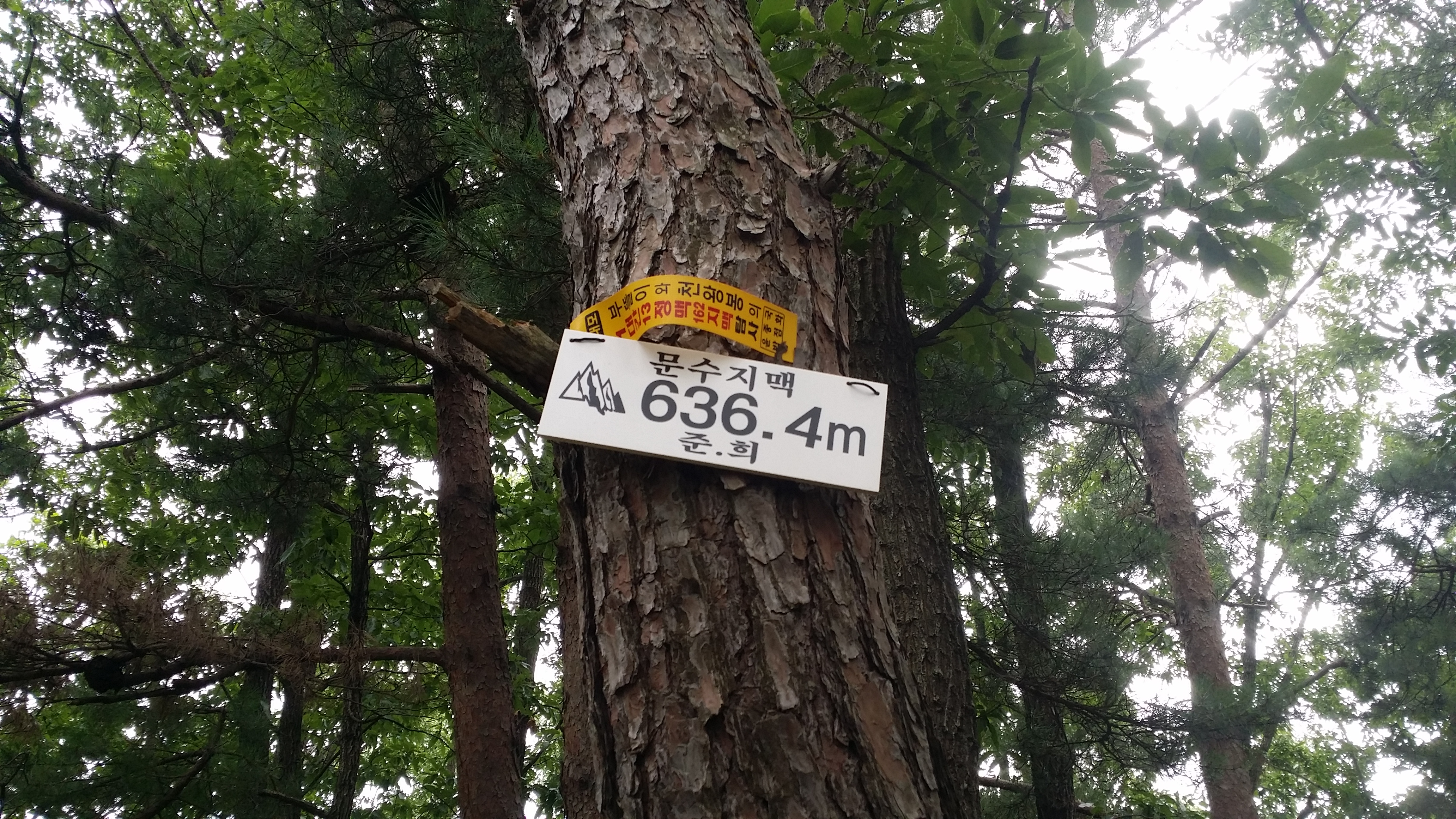 15:29 593.8봉(△)15:37 용수재/국학진흥원 갈림길16:02 505.1봉16:18 굴티 / 뒷산에 보물을 심어놨는지 맥꾼과 산주인과의 실랑이가 벌어 지는곳이라 걱정했는데, 무사통과16:37 502.4봉(△)16:39 복두산(503m) 정상은 묘지만이 있네요7월 25일 덕산지맥때 500ml를 사용하고 실온에 보관했다가 아무런 의심없이 물 500ml*2와 사과쥬스 500ml를 가져왔는데, 다행히도 물 500ml로 3시간을 버티고, 나머지 물 500ml와 사과쥬스 500ml를 섞어 마실려 혼합해야 하는데, 오늘의 일진(日辰)은 나쁜가 봅니다. 순간적으로 물이 먼저냐 쥬스가 먼저냐에서 물을 250ml 붓고 사과쥬스를 붓는데 덩어리가 들어갑니다. 닝기리 물 250ml와 사과 1개, 바나나 2개로 남은 시간을 버텨야 하는데..17:01~17:03 그물망/ 쉽게 생각 했네요. 베낭부터 넣고 낮은 포복으로 침투해야 하는데 무대포로 진입하다 그물에 등산화가 묘하게 걸려 탈출하느라 식겁합니다17:06 요놈때문이네요17:13 403.4봉17:28 489.6봉(△)17:38 방아재 내려 서기전 우측으로 시그럴 2개가 보아네요. 맥길인가 싶어 좋은길 버리고 들어 섰더니 알바길 입니다17:44 방아재 / 알바로 물길을 따라 내려섰다. 방아재에 도착하니 우측으로 건물이 보이는데, 사람이 상주하지는 않는것 같다. 250ml로 버티기에 버겁다. 산행후 포털에서 보니 창고네. 안내려서길 잘했다. 그러나 저러나 중탈에 대한 대책이 없어 죽어도 GO!18:15 523.1봉18:48 박달산(579.5m)19:18 먹골저수지 갈림길