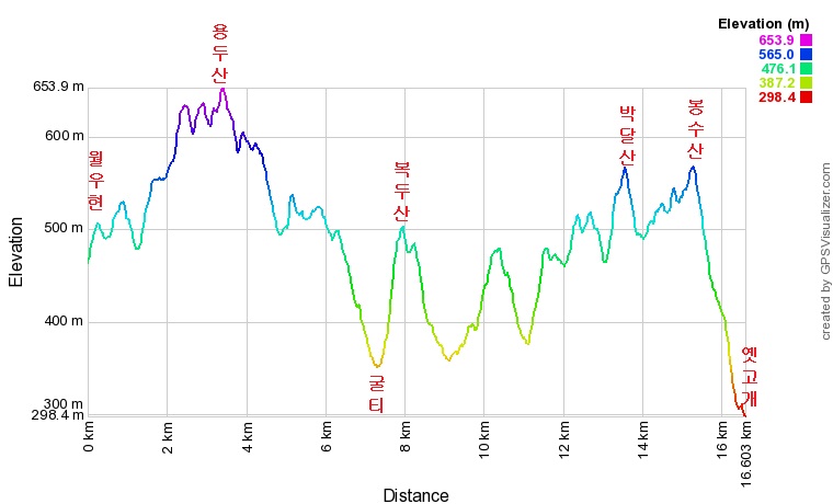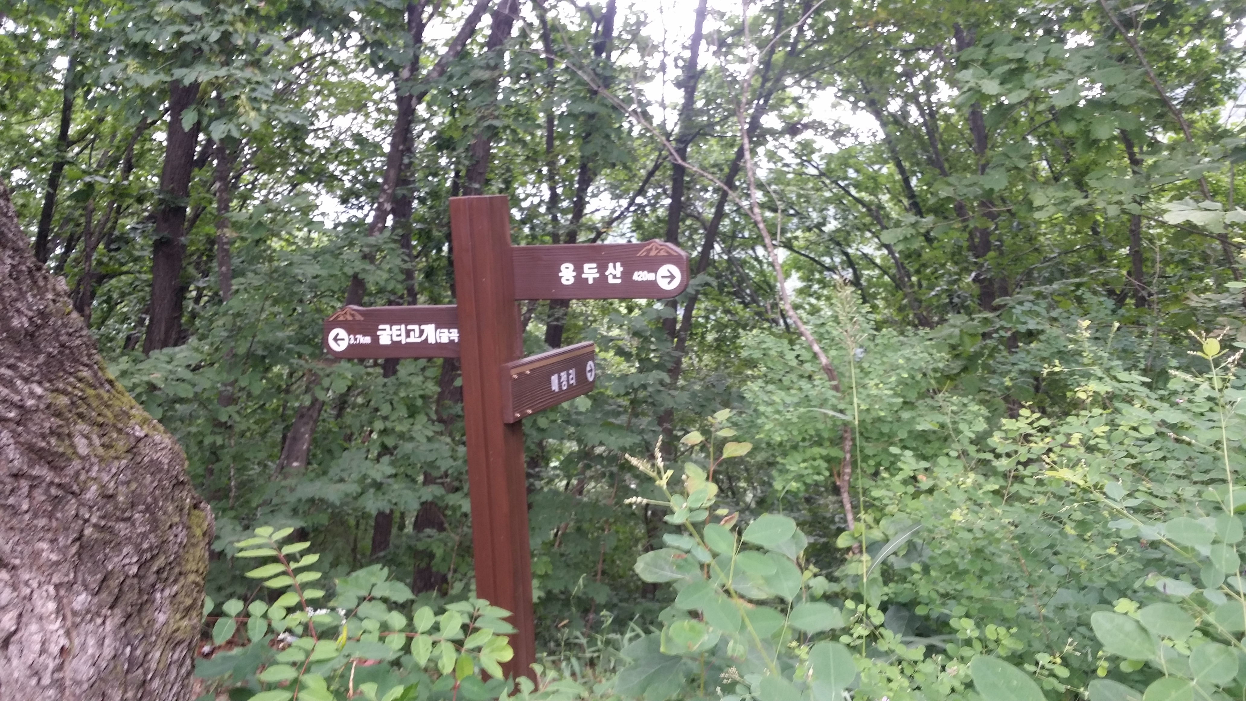 15:10 용두산(664.6m) / 등산로 정비는 되어 있는데 찾는이 없어 밀림숲이 되었네용두산에서15:15 굴티고개 이정표 / 이정표 따라가도 되고 마루금을 고집하면 직진하여 봉우리에서 우측으로 내려서면 곧 만난다15:18 매정리 갈림길15:22 625.6봉