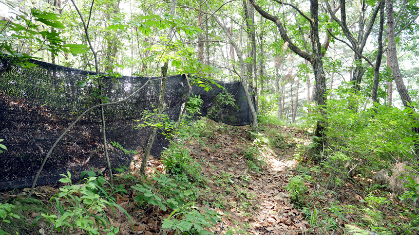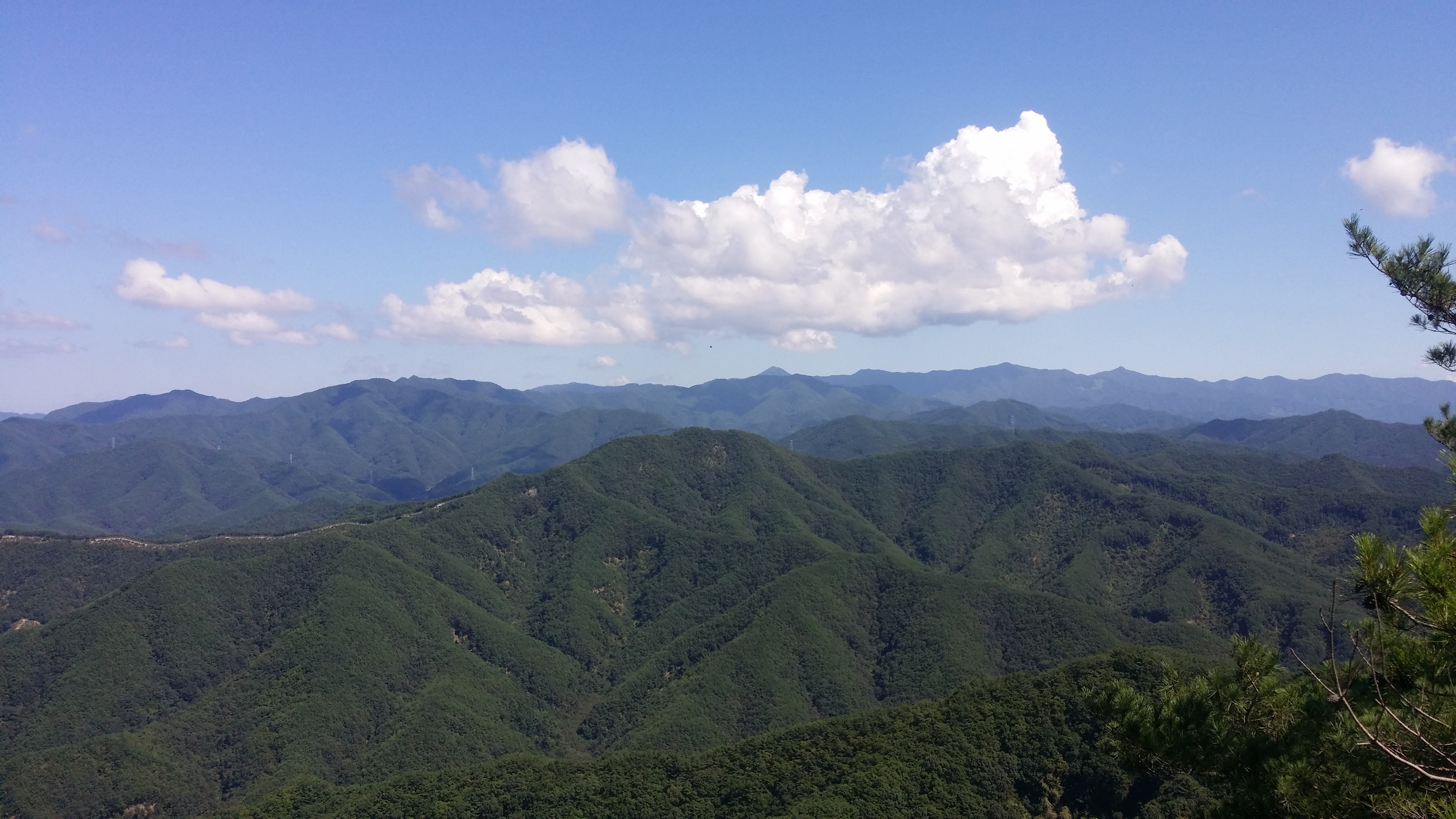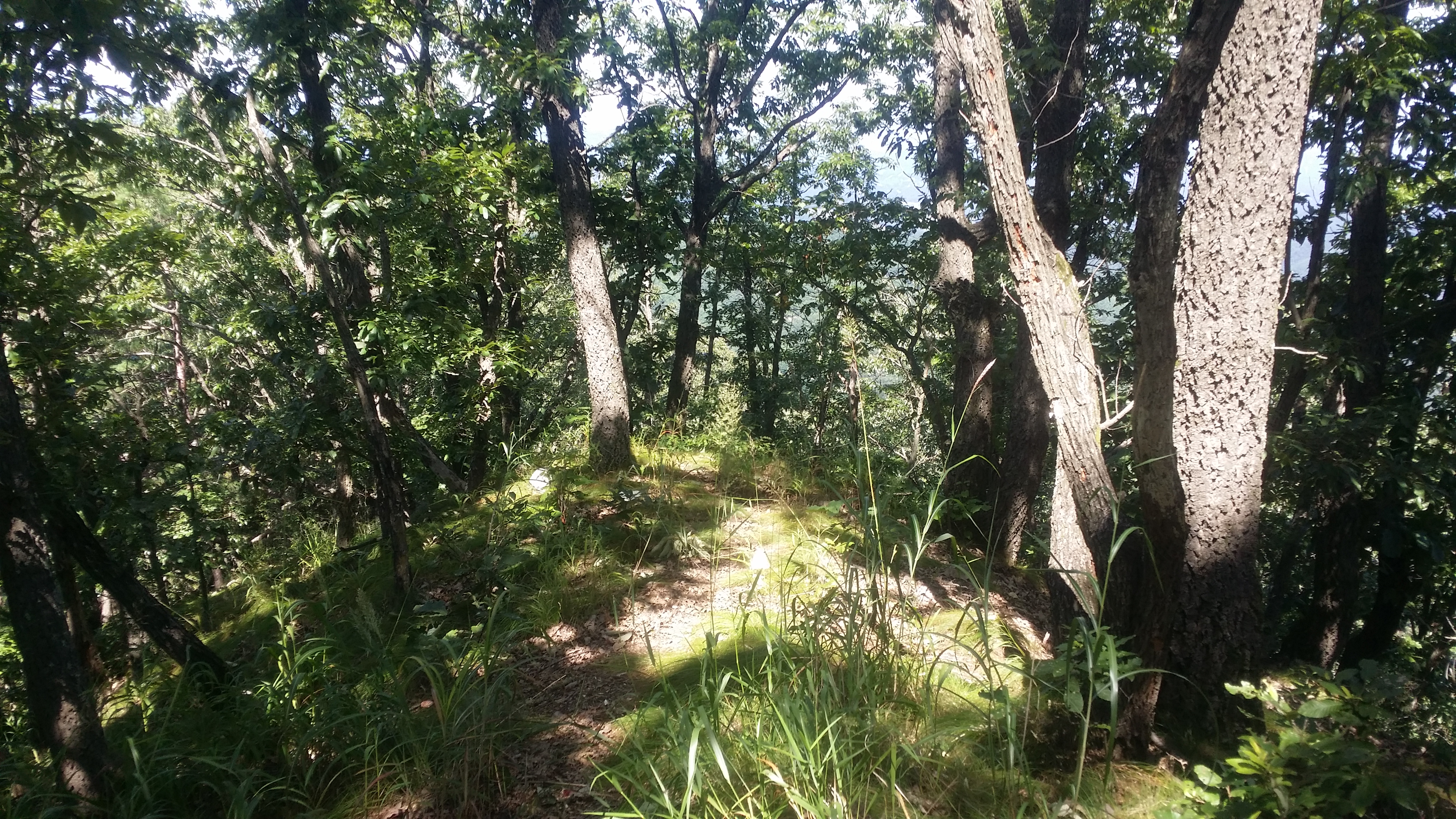 민주지산 & 백두대간14:22 574.2봉 / 지금까지 여름철에 산행하기에 너무나 좋다고 칭찬 했는데 오는길에 산불로 일부 등로가 잡풀과 잡목길이다 14:42 491.7봉14:53 등로주의15:10 울타리 안으로 진입한다. 15:16 입산금지 / 우측으로 탈출하여야 하나 능선에 올라서 내려선다15:19 입산금지