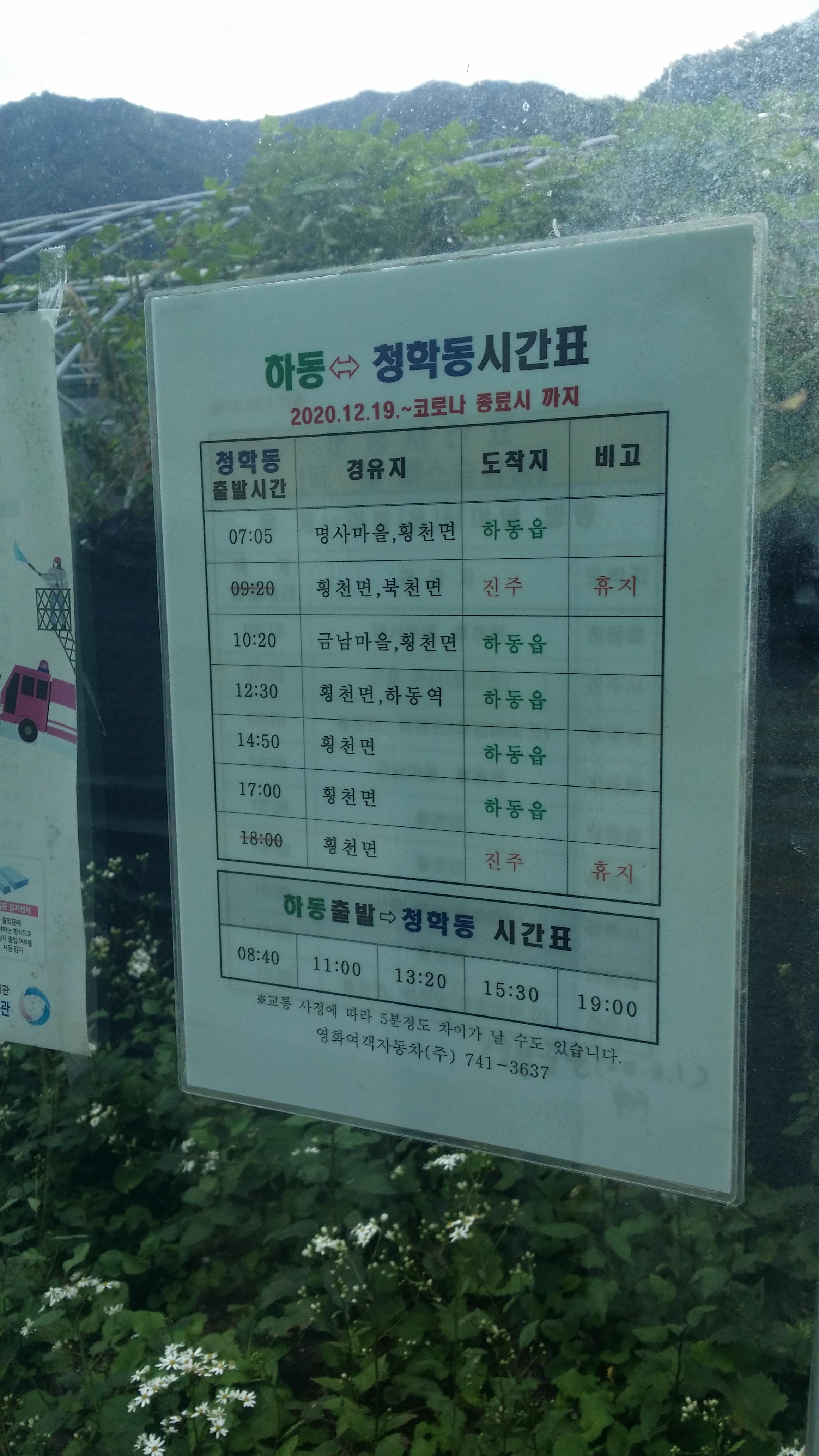 17시에 청학동 출발하는 버스가 17시52분경 하동터미널에 도착하여 18시2분 구포행 무궁화호를 탈수 있는데 안전빵으로 17시40분 원곡에서 하차한다. 참고로 횡천역사가 원곡으로 옮겨졌다