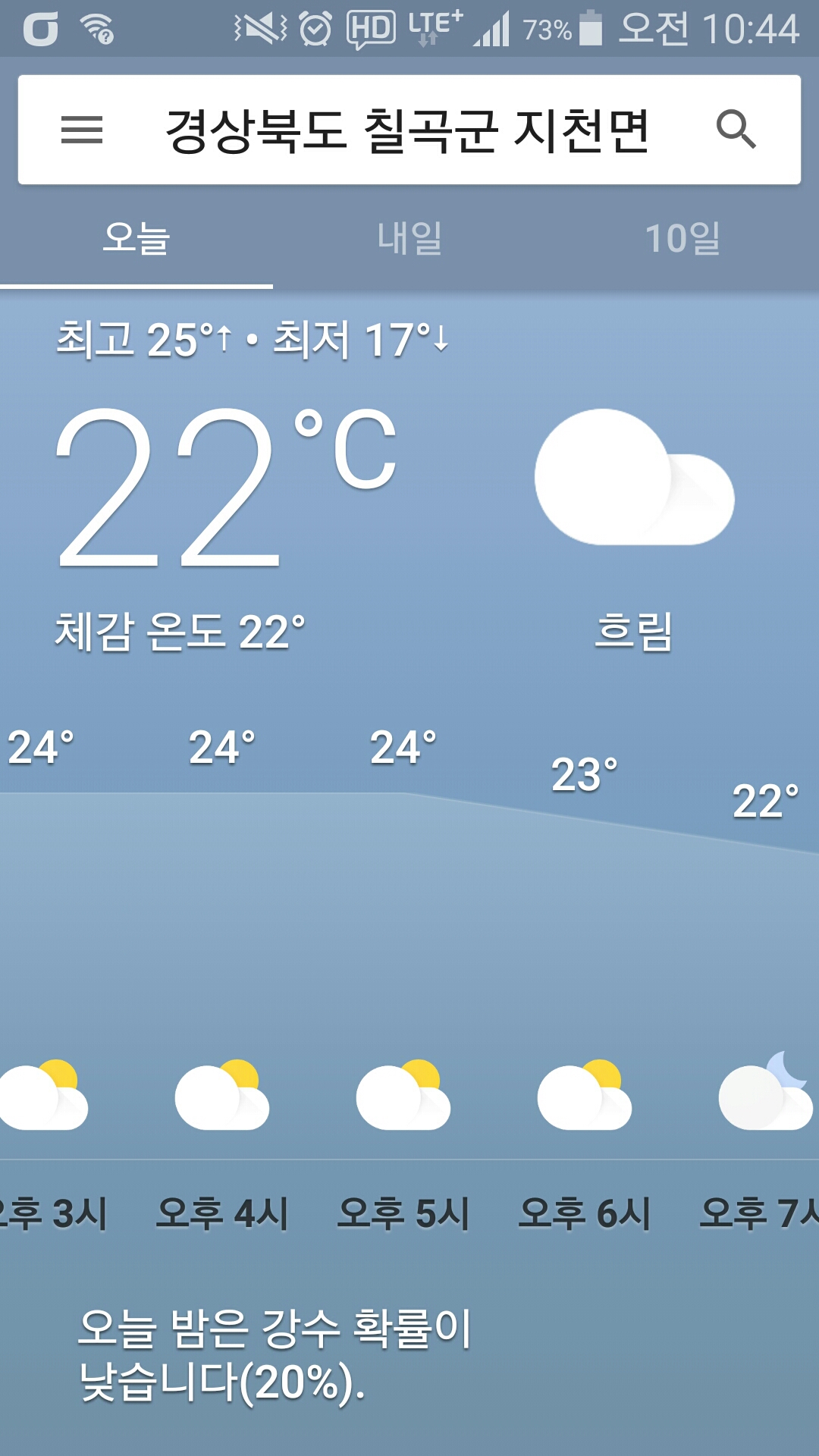 기상 : 22 ˚ ~ 24˚, 바람 5~11(잔잔), 습도 70%