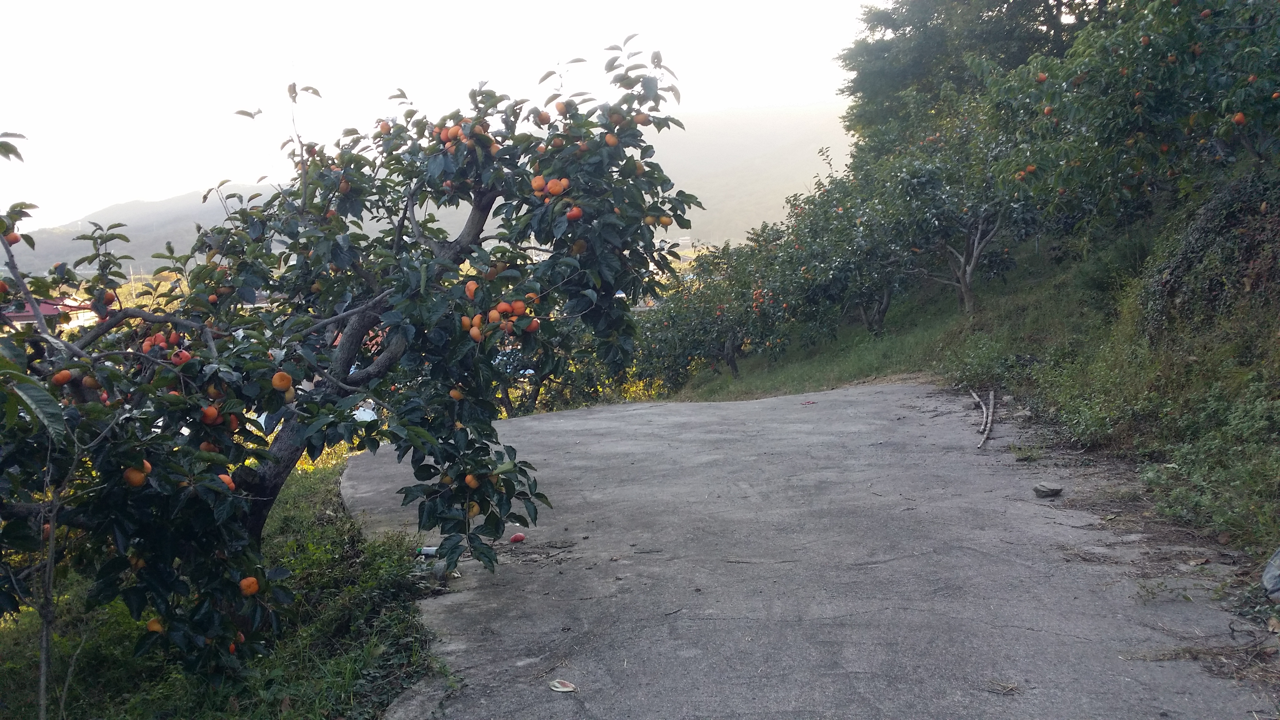 16:54 병방산등산로입구 갈림길 / 진행방향 왼쪽으로 나가야 하는데 오른쪽으로 진행한다감나무밭 단지다. 단지를 벗어났다고 안심하는순간 "여기는 길이 아닙니다" 좌측 감나무를 손보고 계시는 아주머니의 말씀에 자동적으로 " 미안합니다 미안합니다" 연거푸 사죄드리니 "예"하신다. 수확철엔 피해야 하는게 맞는데....