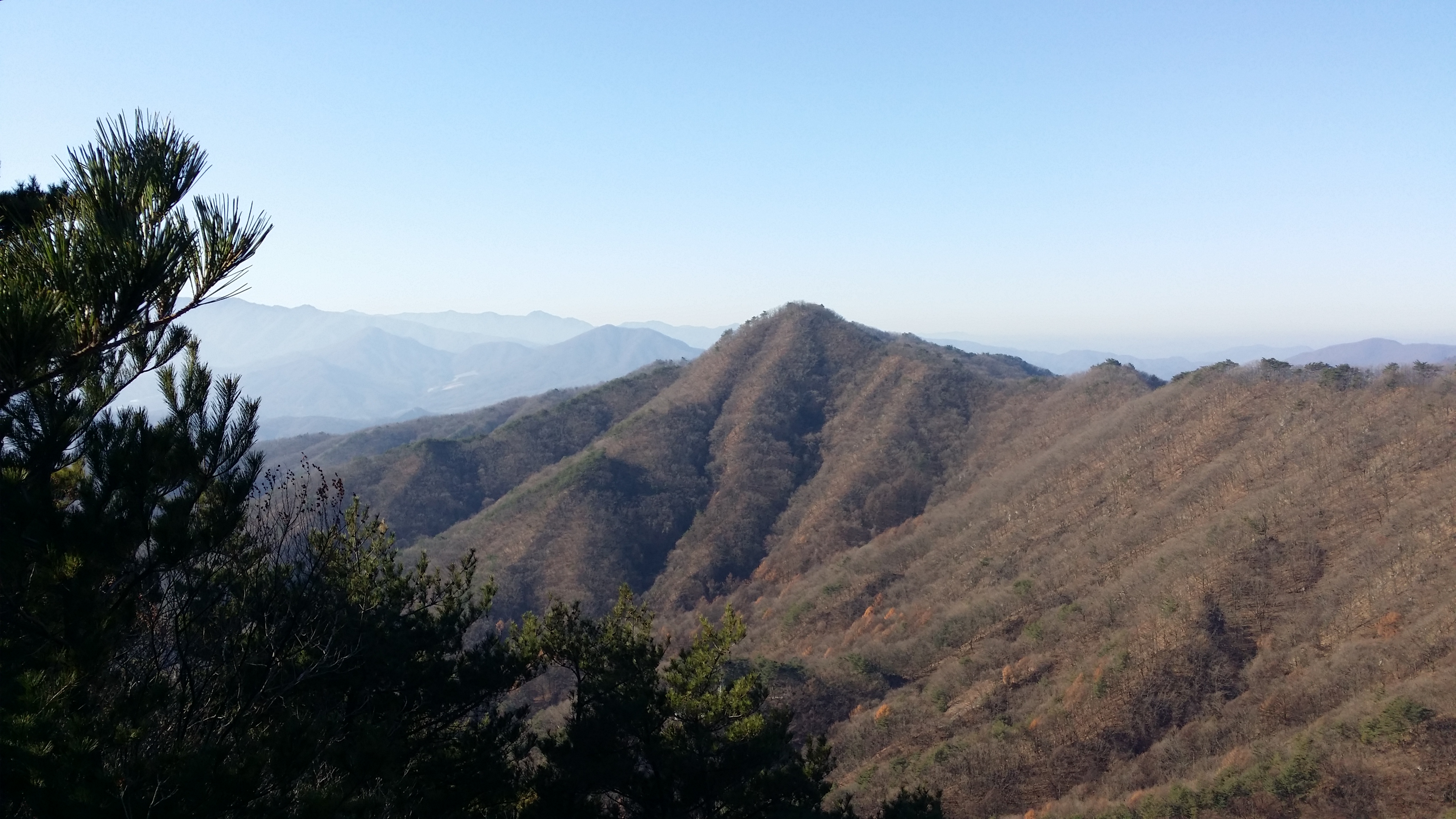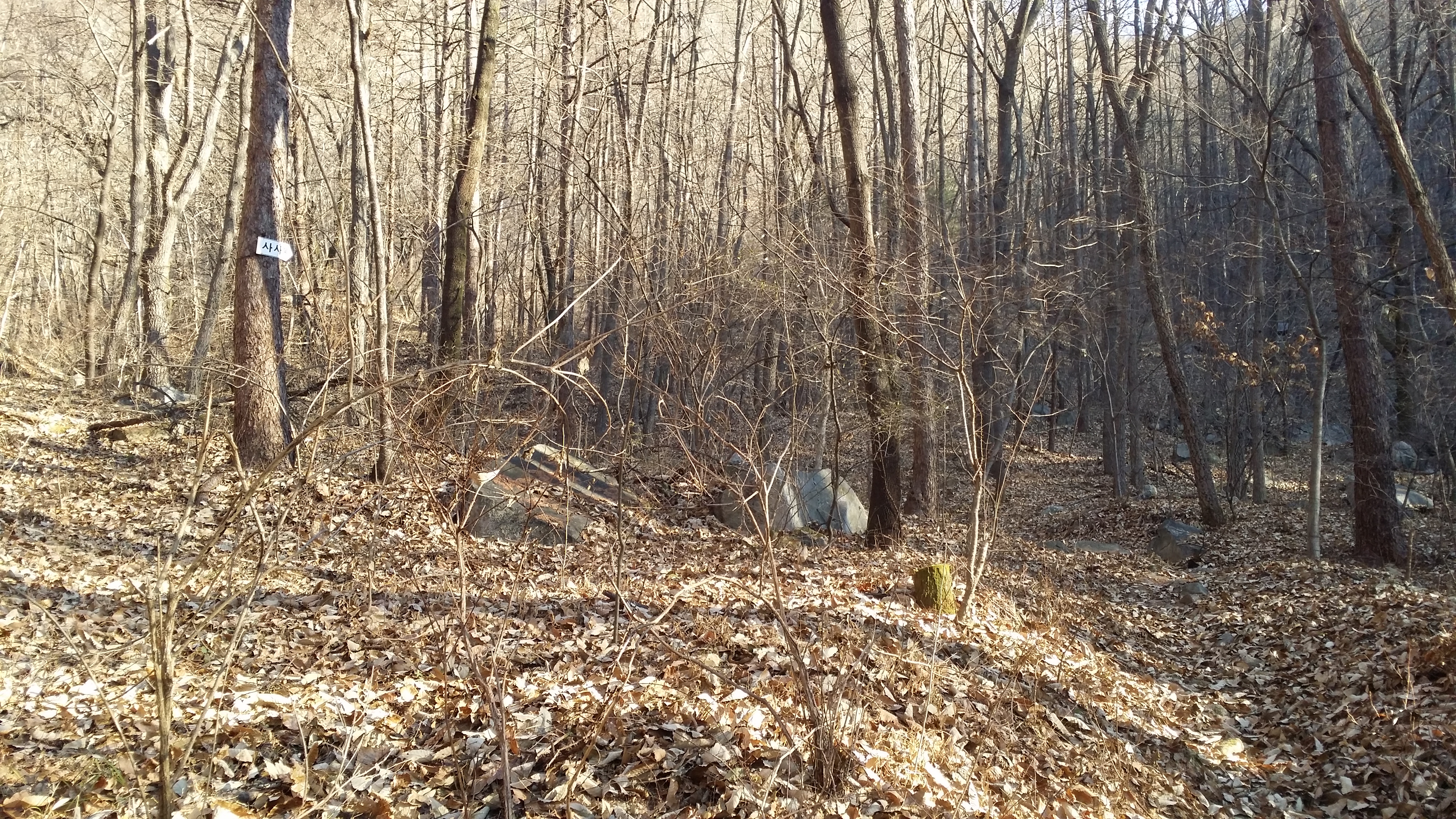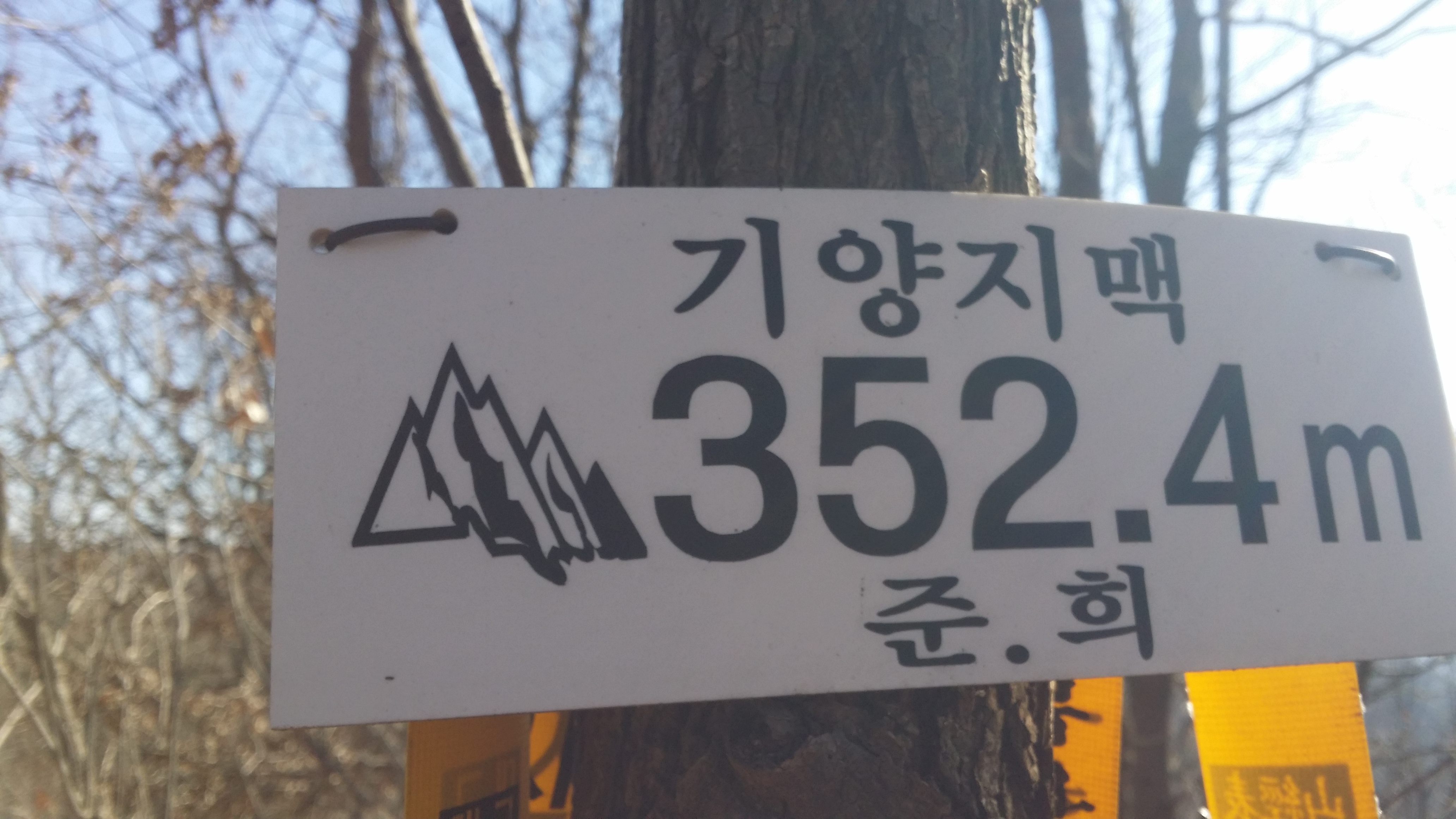 (463.7봉에서) 기양산15:33 산태백(296.3m)15:42 356.9봉15:55 갈림길 / 맥길은 저 두개의 시그럴 방향이 아니라 시그럴이 없는 우측길을 택합니다15:58 산태백재 / 오늘은 여기까지 걷고 버스타러 갑니다