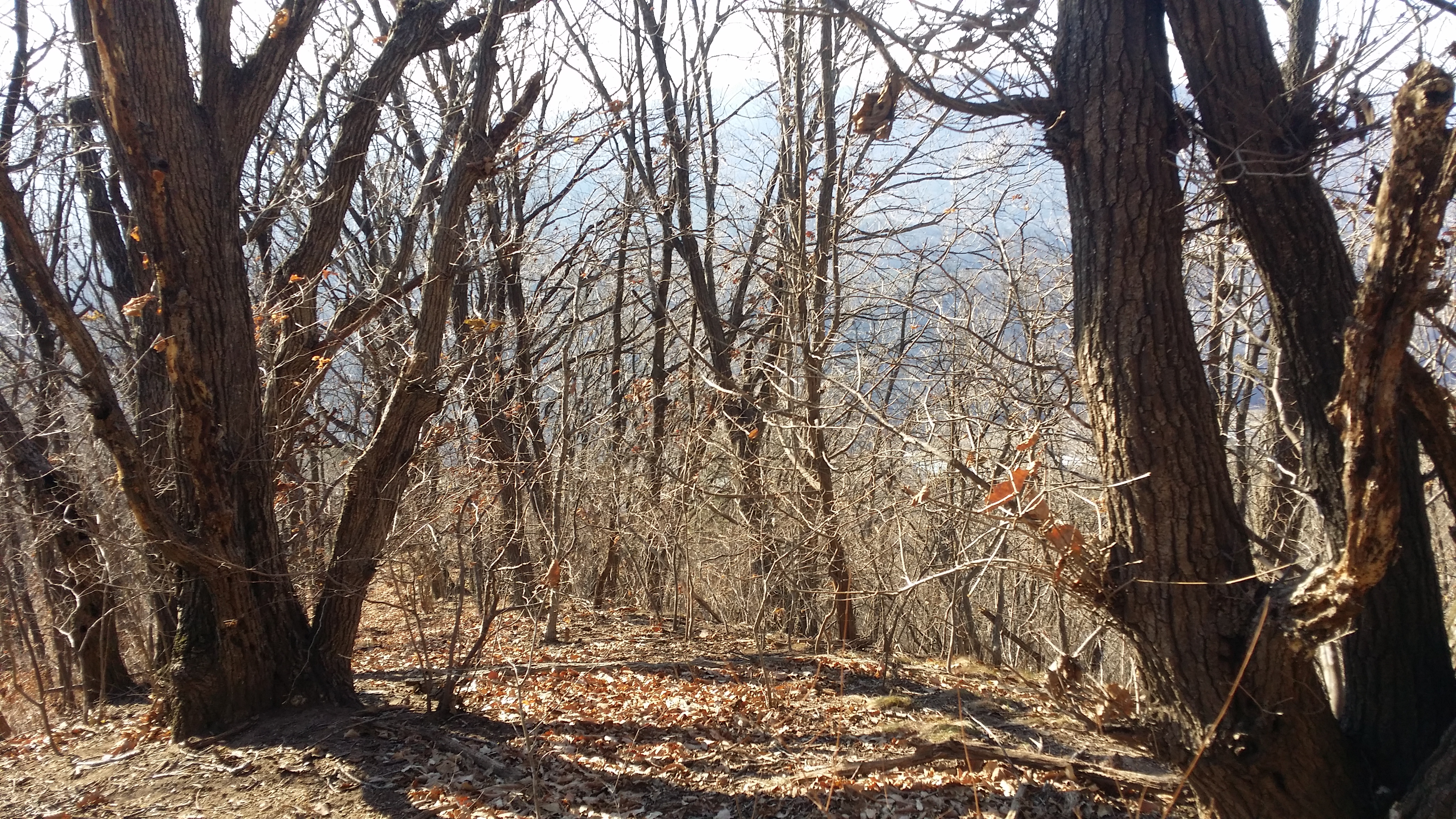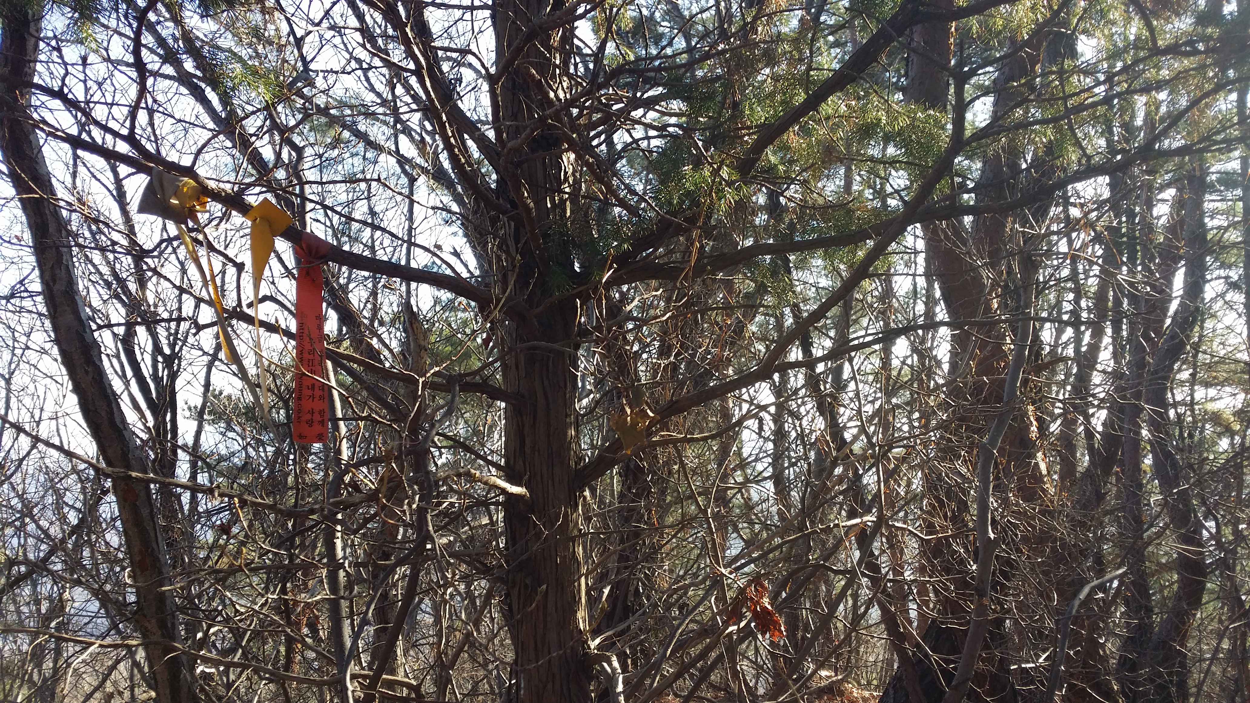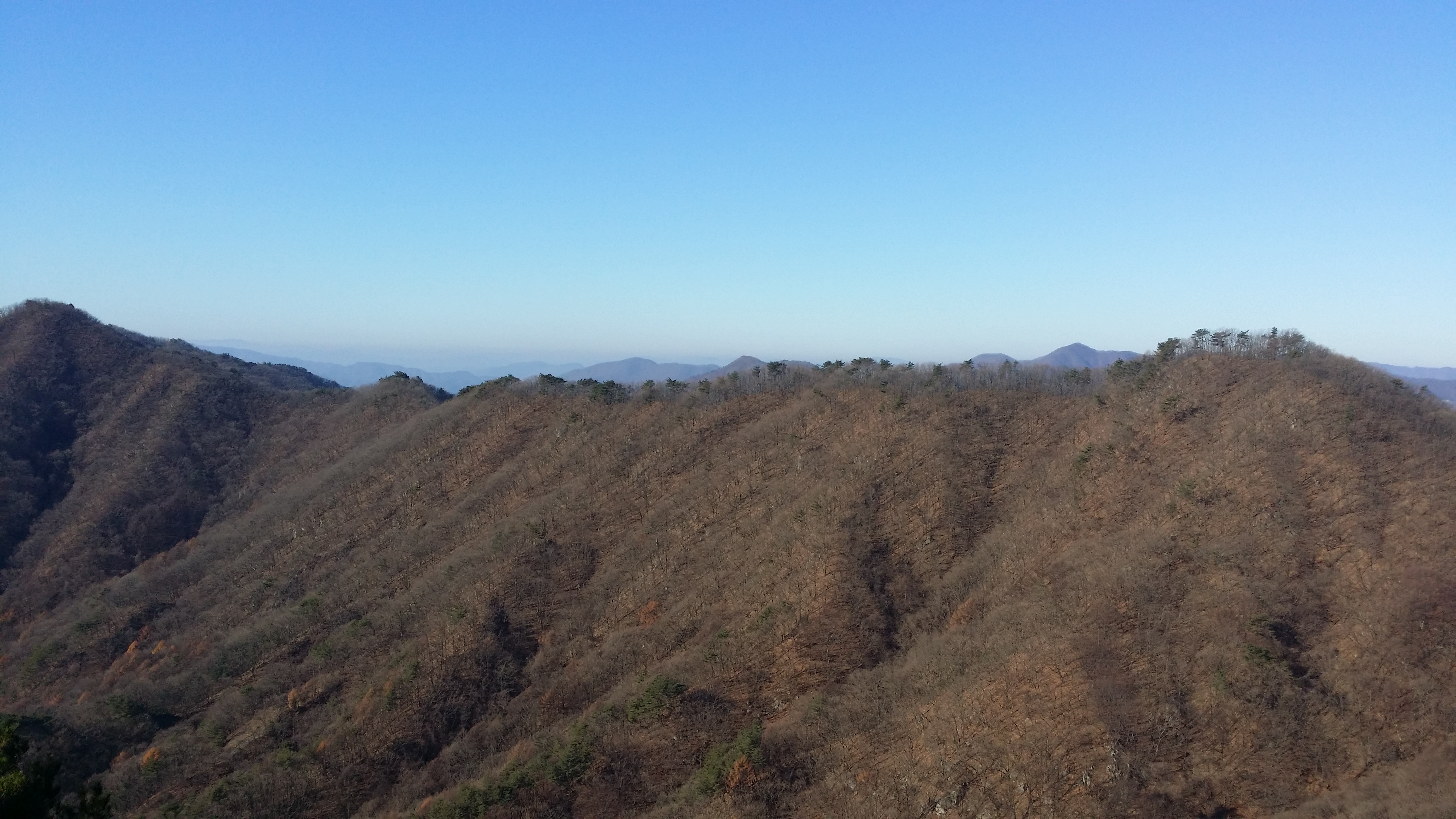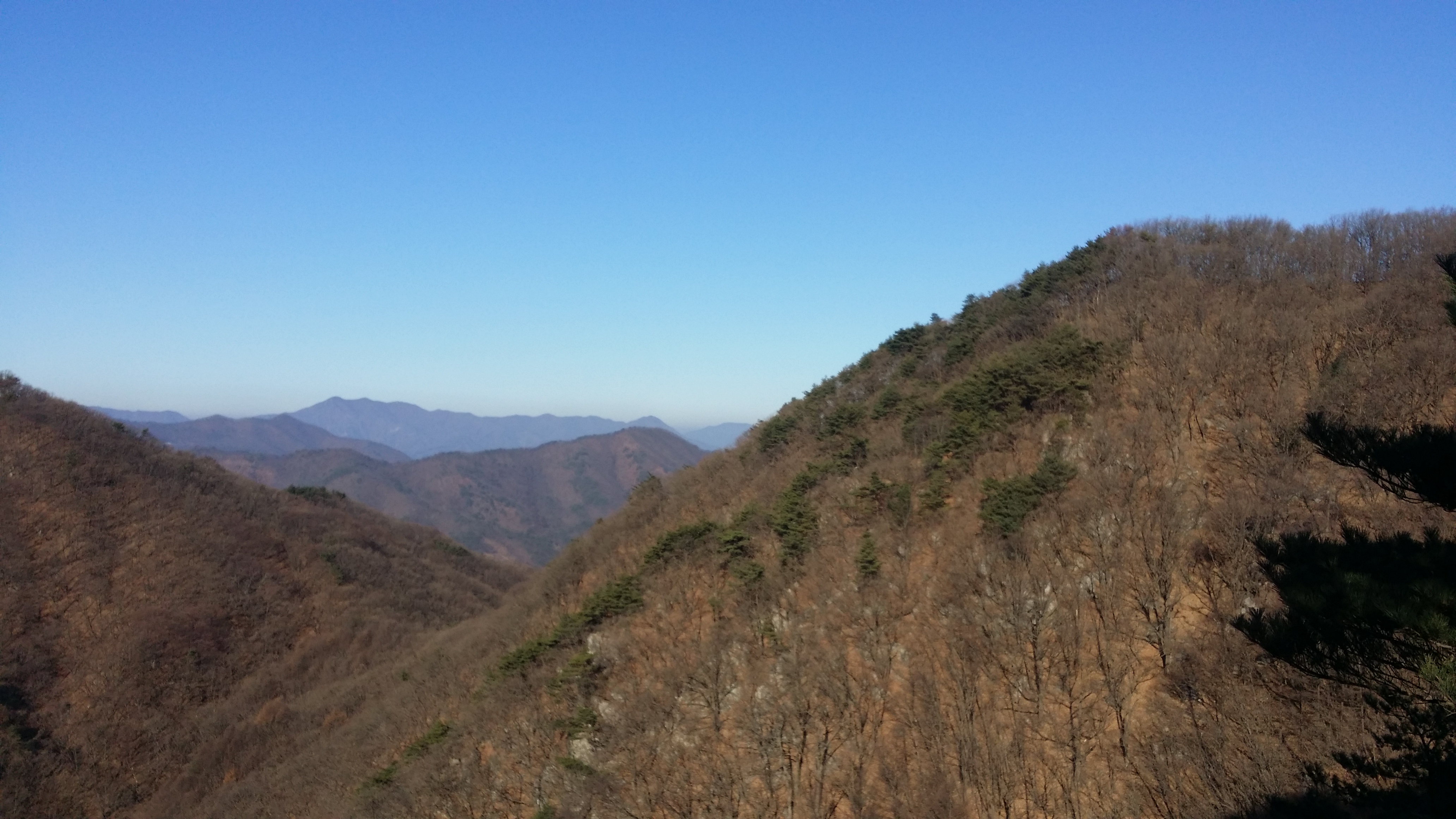 (463.7봉에서) 기양산15:33 산태백(296.3m)15:42 356.9봉15:55 갈림길 / 맥길은 저 두개의 시그럴 방향이 아니라 시그럴이 없는 우측길을 택합니다15:58 산태백재 / 오늘은 여기까지 걷고 버스타러 갑니다