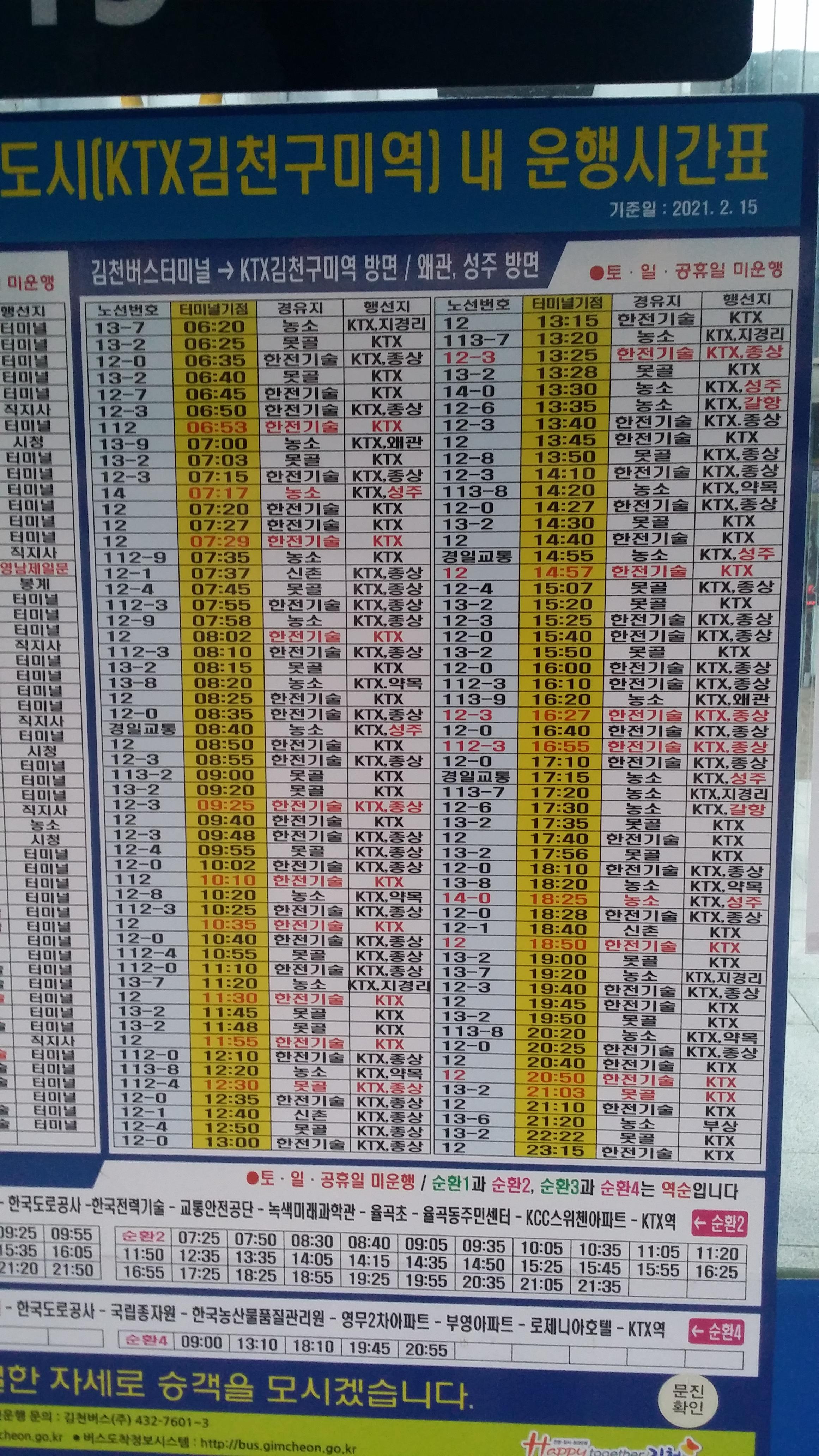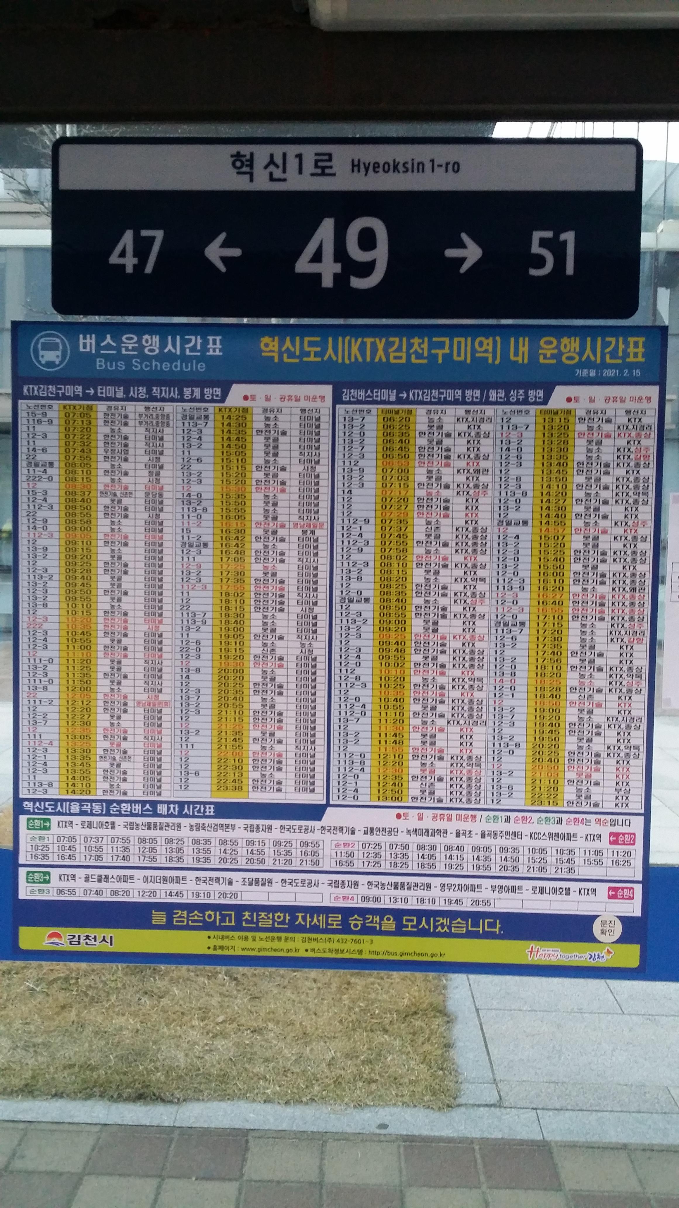 ㅎㅎ 오늘은 버스가 정시에 출발하여 부산역에 일찍 도착할줄 알았는데 평소보다 더늦게 5시47분에 도착했다내가 잘못한건지 야들리 웃기는건지 좌석 선택의 자유가 없어졌다.07:12 김천구미역 / 3분 연착하여 도착했다.07시22분 도착한 12-3번을타고 김천터미널로 이동한다
