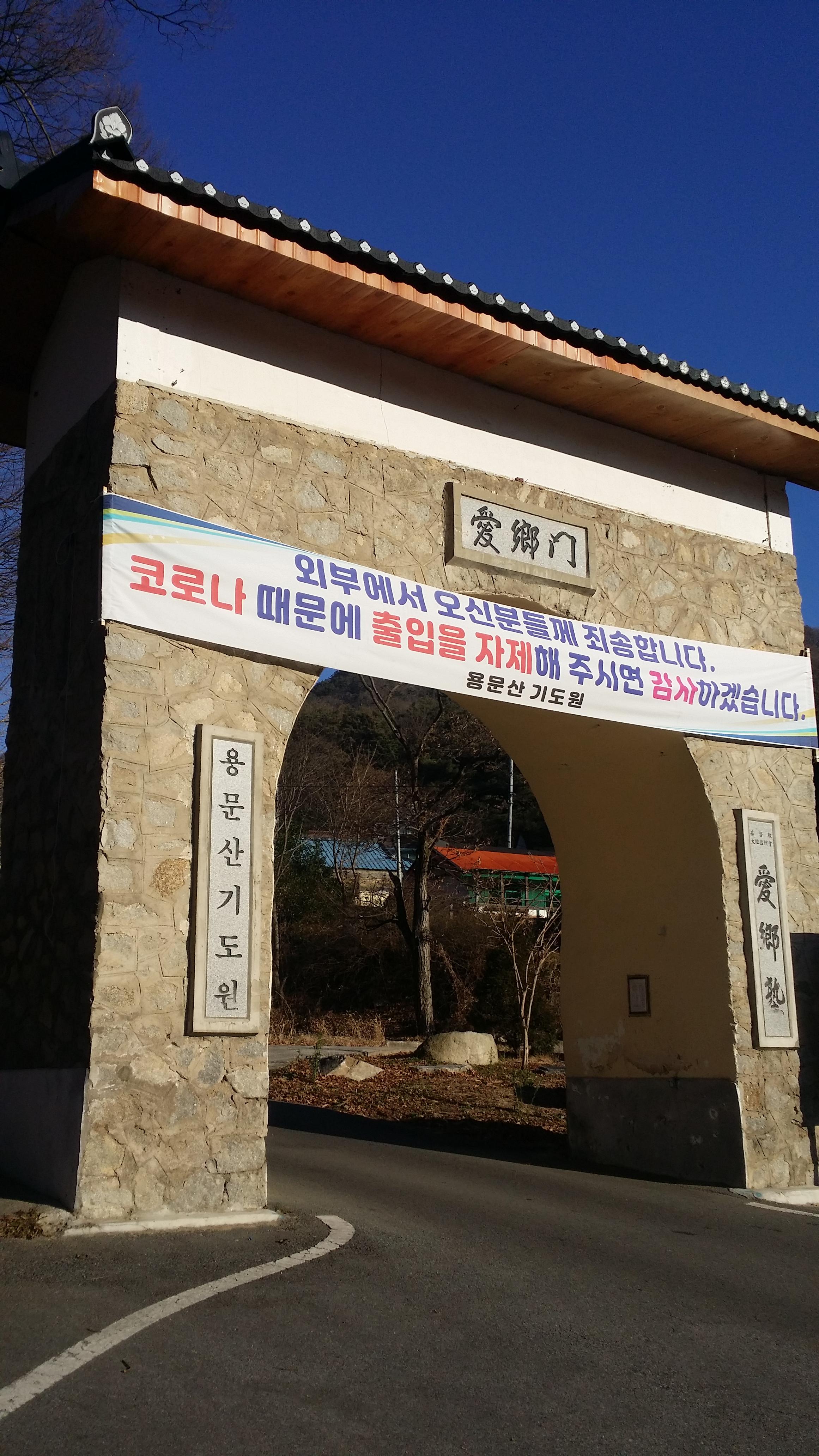 09:01 용문산 종점 / 계획보다 10분이 SAVE 되어 귀가편 기차를 질렀다 ㅎㅎ 그런데...09:01 용문산 기도원 애향문 / 등산객 출입자제 현수막이 있다. 다행히 물리적 제재는 없다내가 생각했던  기도원 개념이 아니네