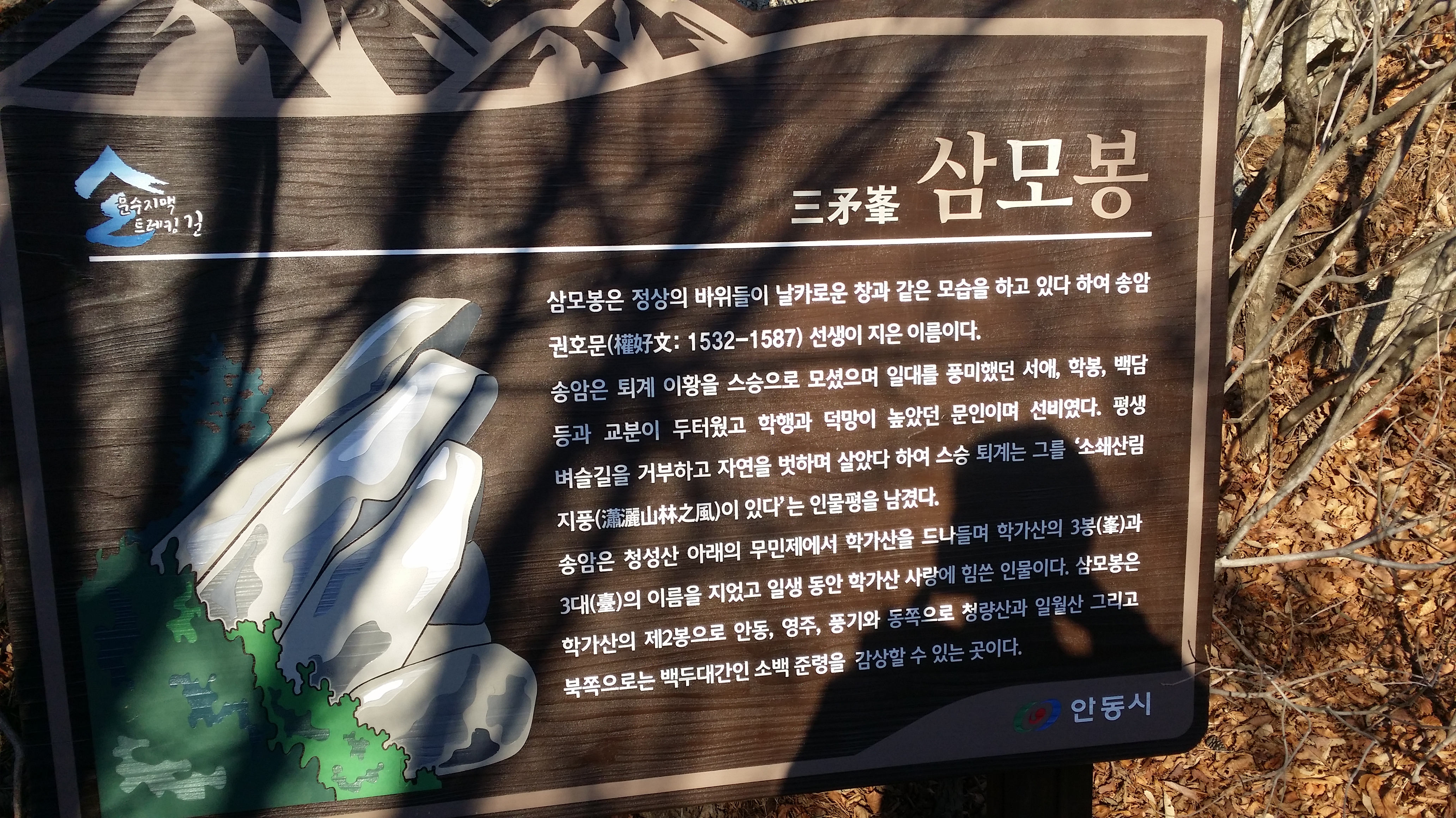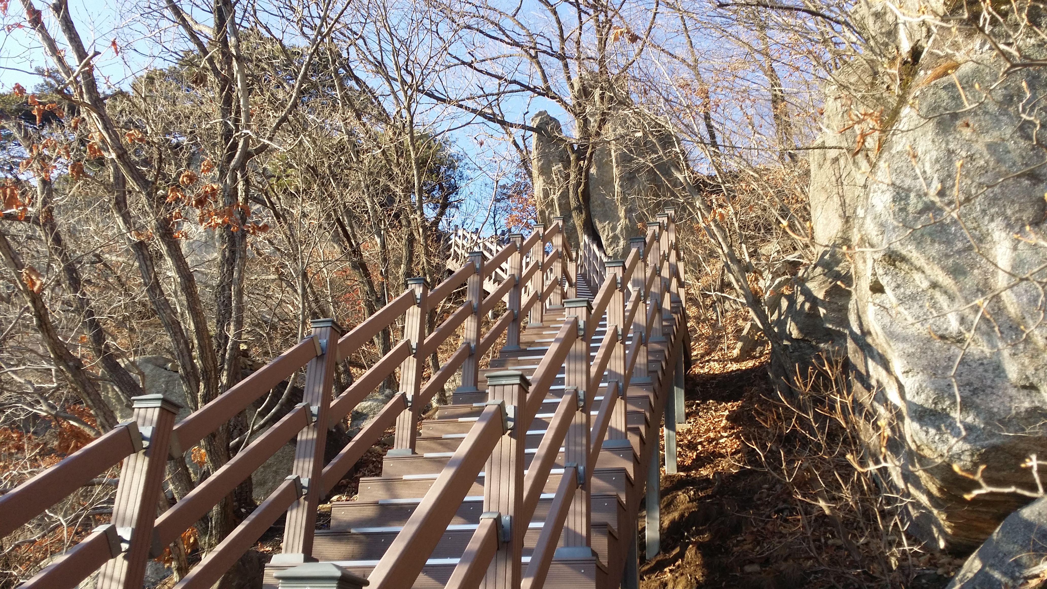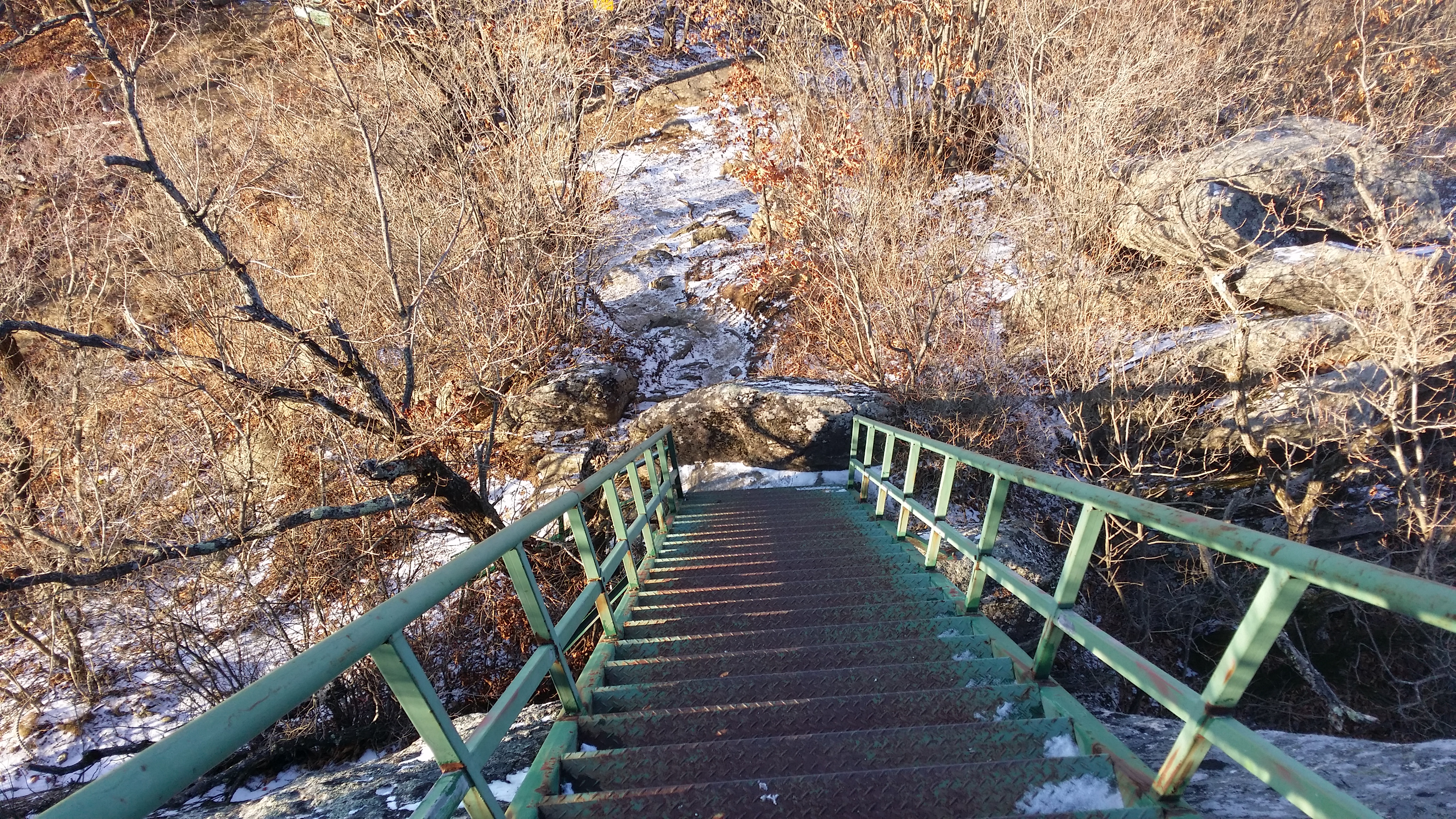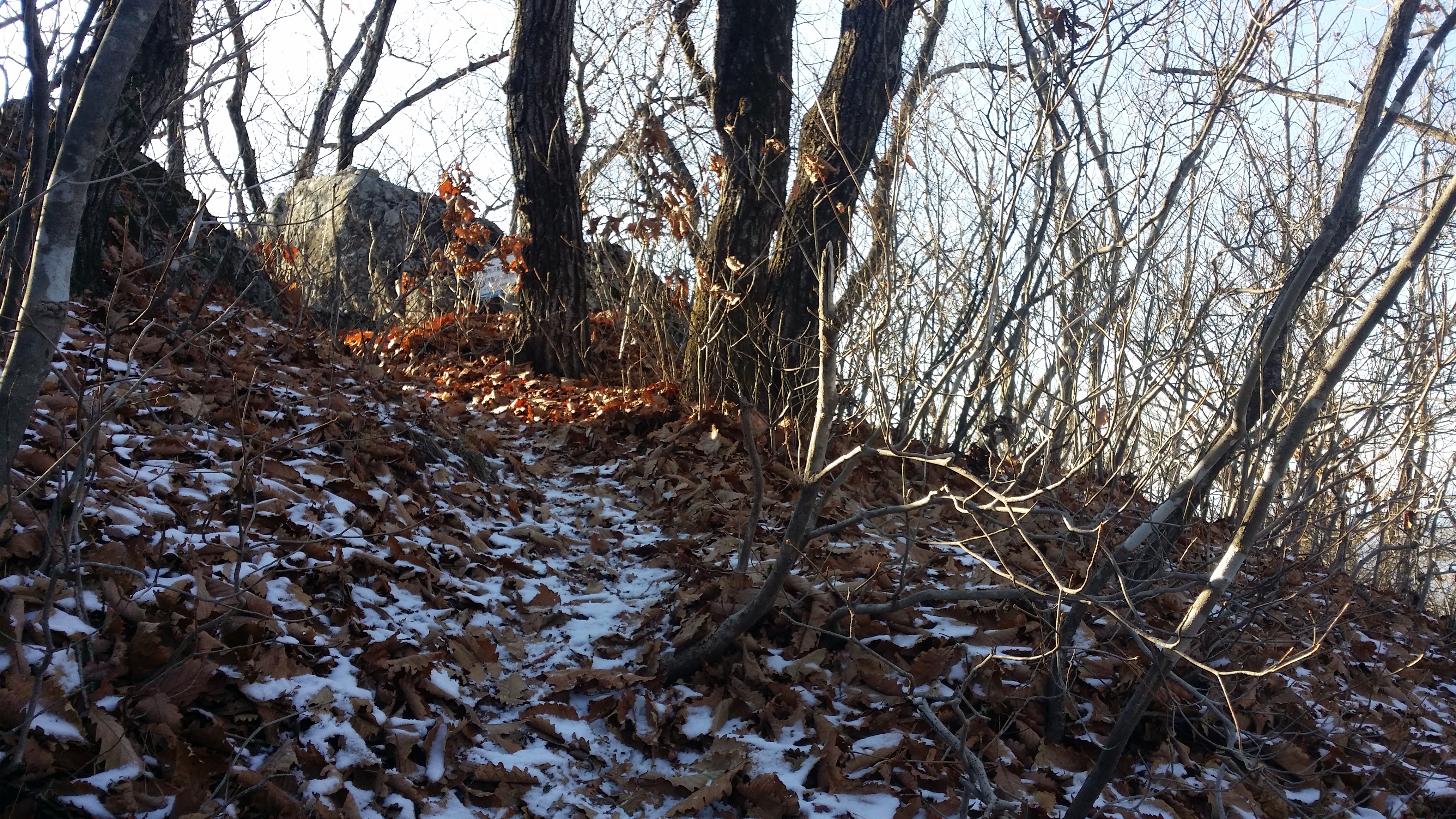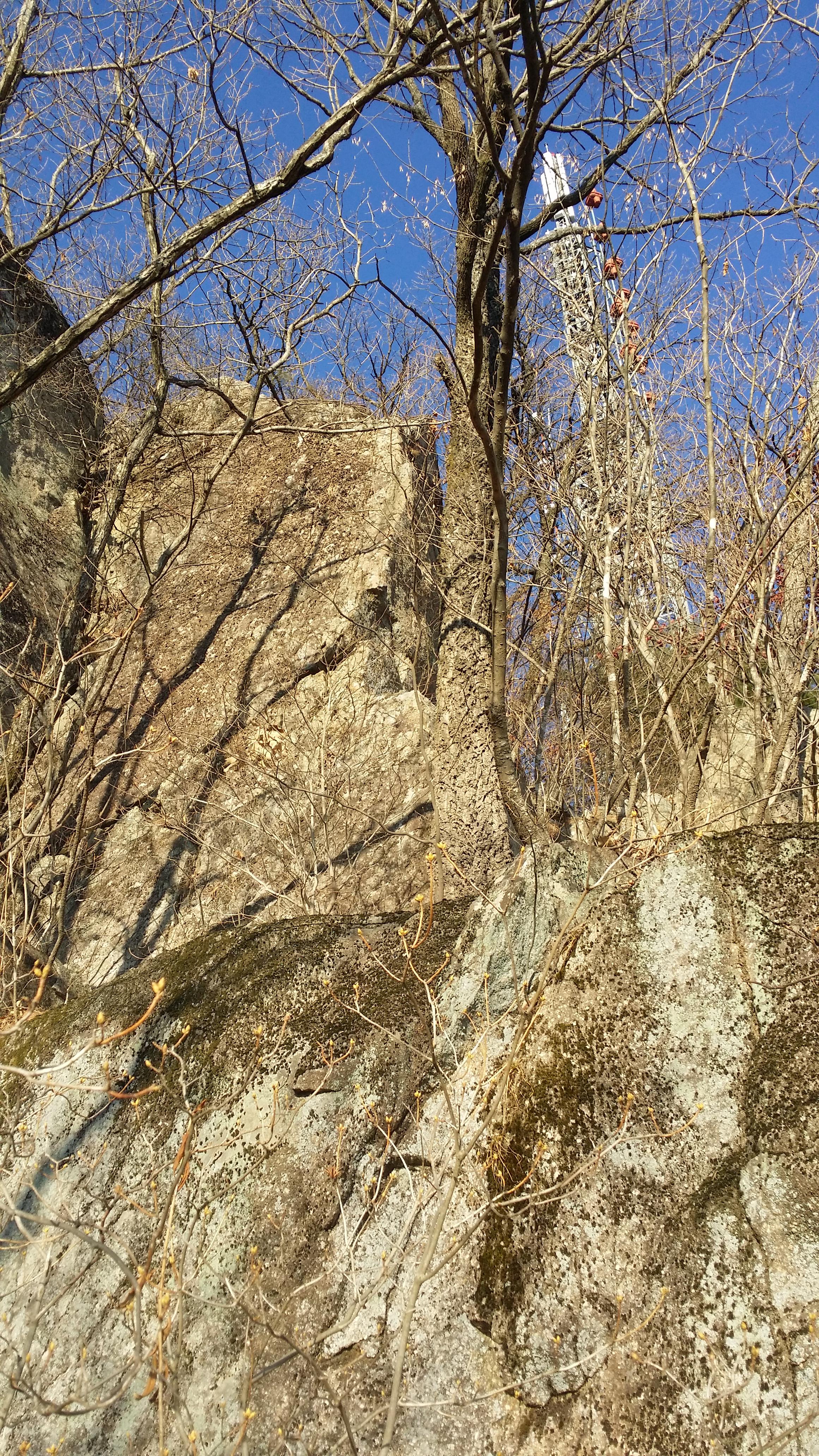 15:35 삼모봉에서 마루금은 MBC송신소에 가로막혀 진행이 불가하여 유선봉으로 되돌아가서 데크로 내려서야 하는데 귀찮아 무작정 내려서다 데크길로 합류한다15:39 신선바위 갈림길맥길은 송신소로 인하여 도로따라 우회하여야 하는데 눈길이 여간 조심스허운게 아니다 그런다고 아이젠을 사용하기엔 그렇네 아무튼 도로 가장자리 풀위를 밟고 내려선다15:44 굿당15:45 KBS송신소 갈림길15:52 KBS송신소 갈림길에서 5분정도 도로를 따라 내려서다 우측 숲길로 들어선다. 약 30m 진행하면 우측으로 철조망과 바위 경계면에 개구멍이 있다