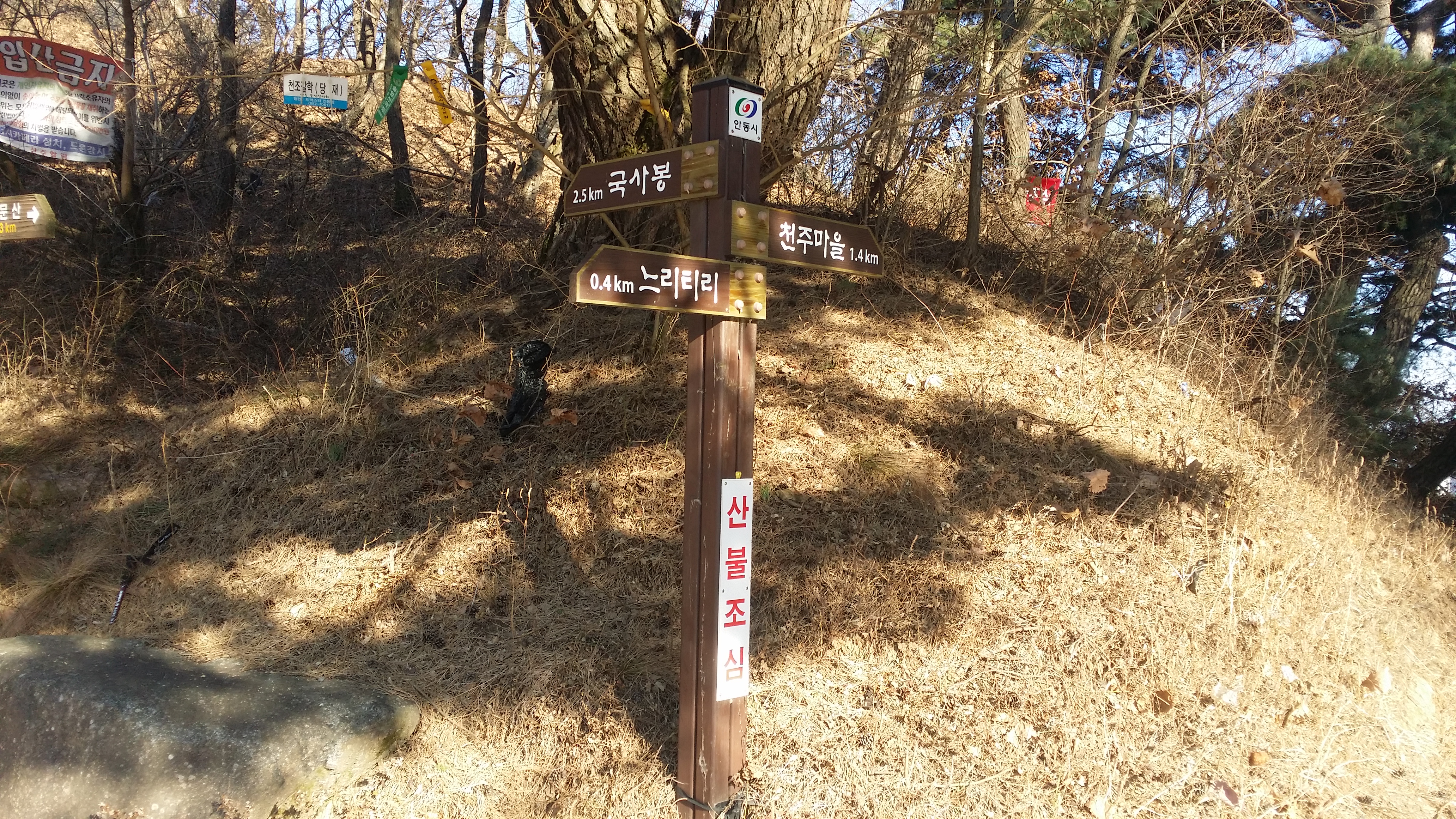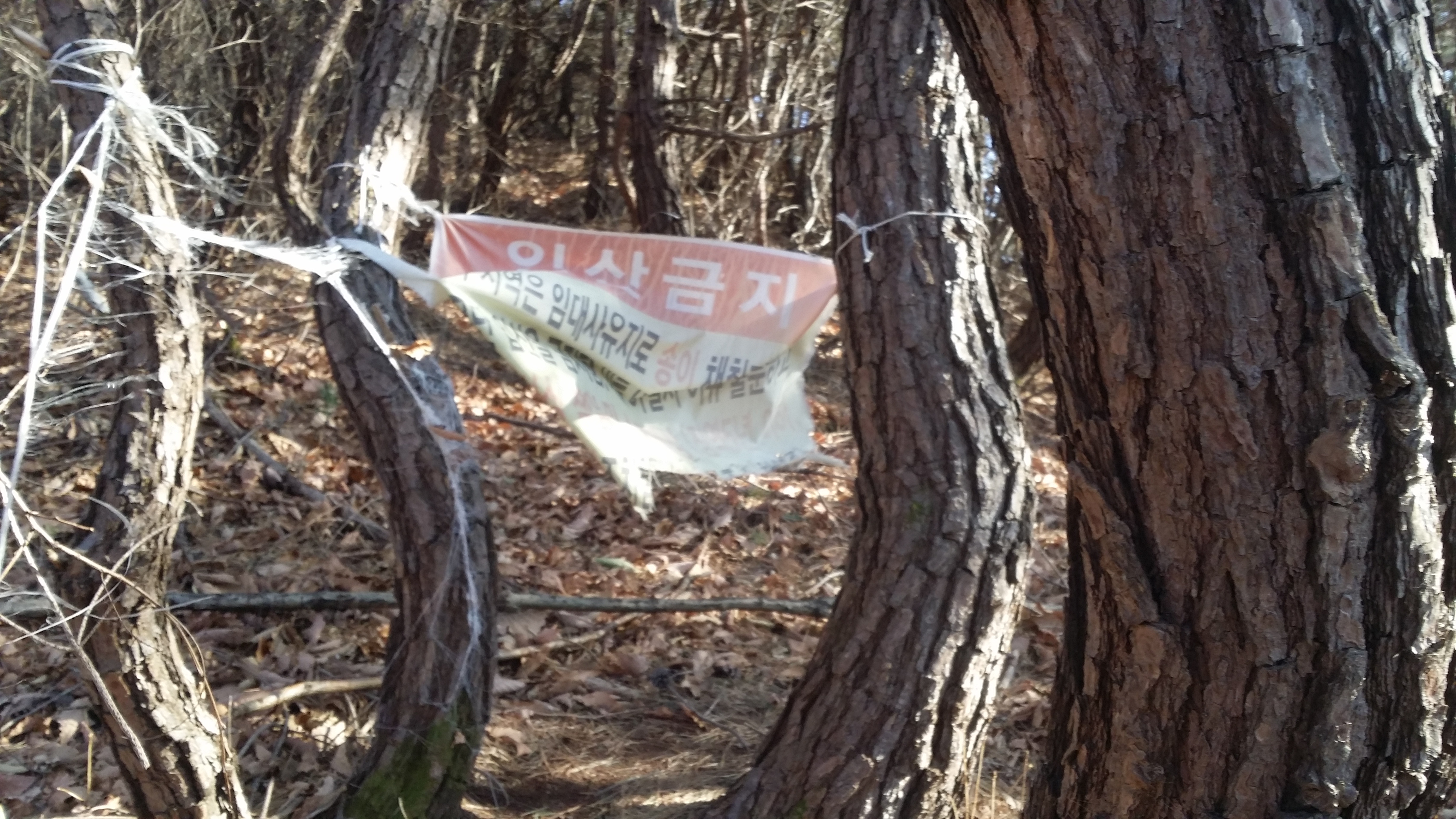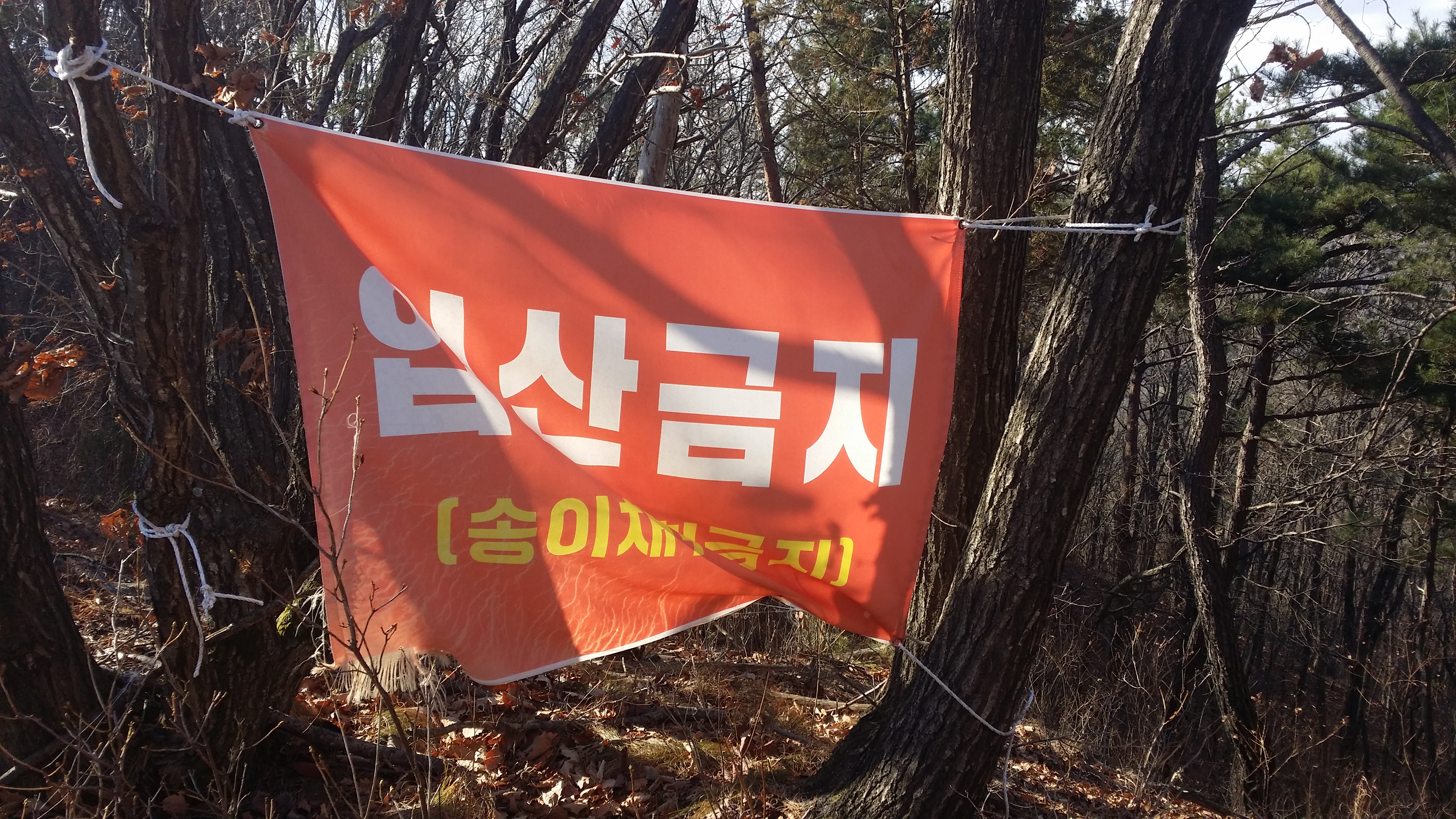 12:18 중대바위12:20 갈림길 / 이정표 덕을 봤다.(逆진행시) 숲을 헤치고 들어가니 등로가 살아 았네 12:23 송이(입산금지) / 어데가 입산금지 구역인지 모르겠네. 현수막은 합수부 방향으로 걸쳐져 있는데 오면서 동일한 현수막을 보지 못했다.