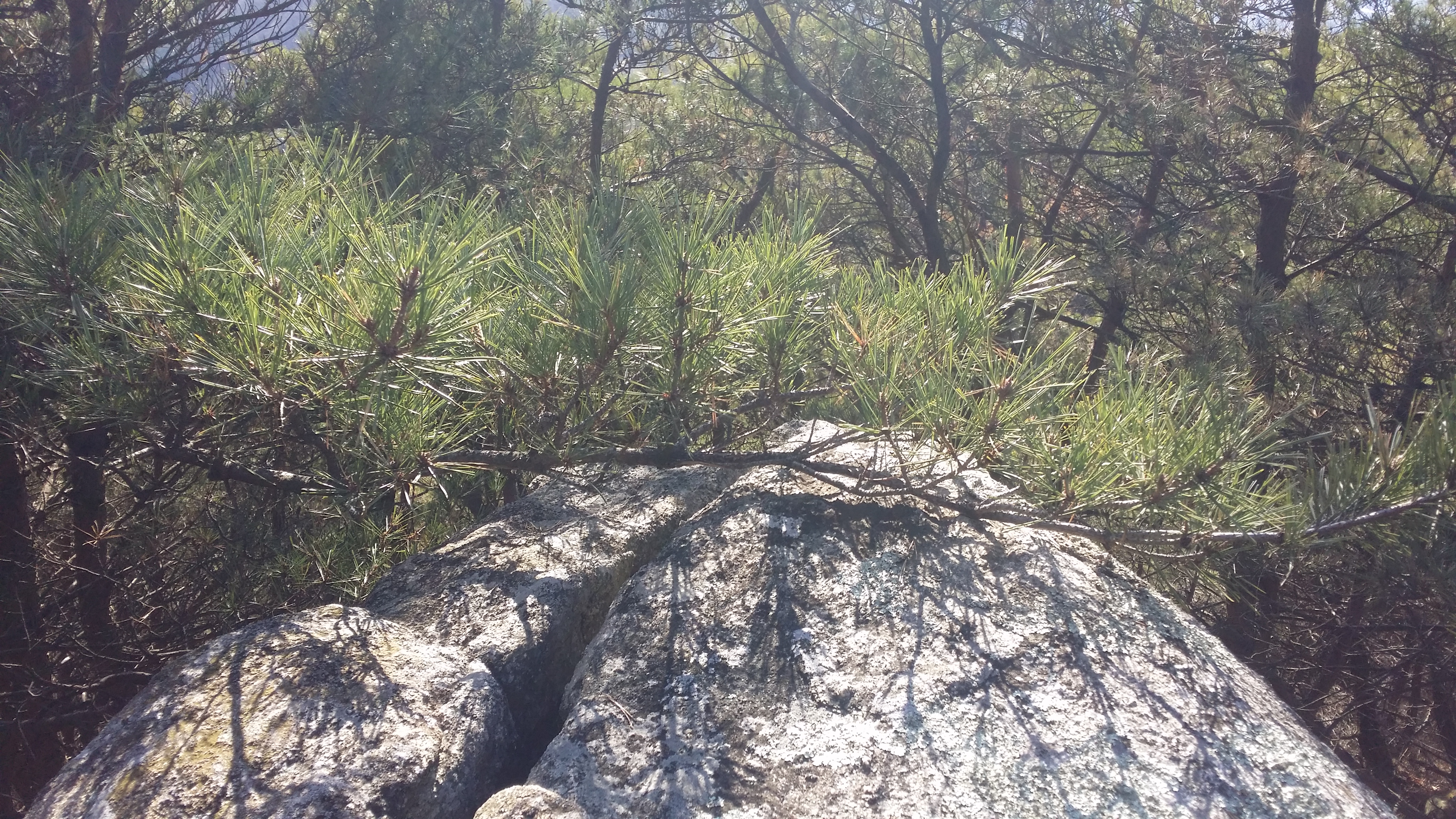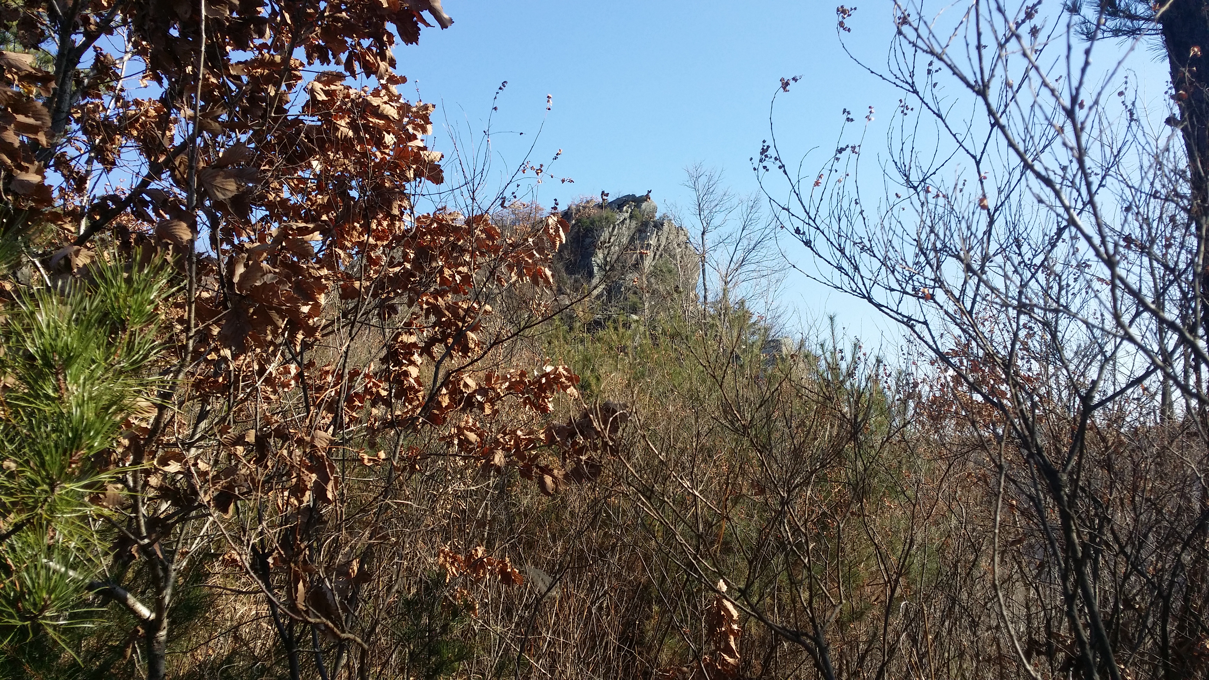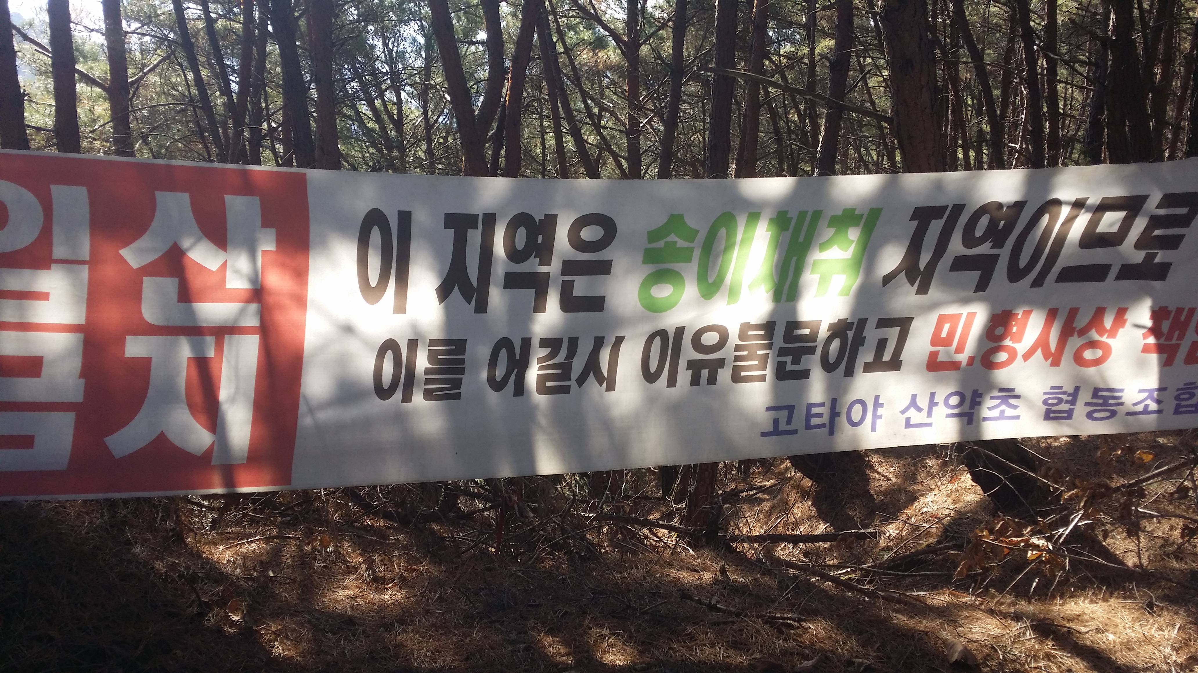 12:18 중대바위12:20 갈림길 / 이정표 덕을 봤다.(逆진행시) 숲을 헤치고 들어가니 등로가 살아 았네 12:23 송이(입산금지) / 어데가 입산금지 구역인지 모르겠네. 현수막은 합수부 방향으로 걸쳐져 있는데 오면서 동일한 현수막을 보지 못했다.