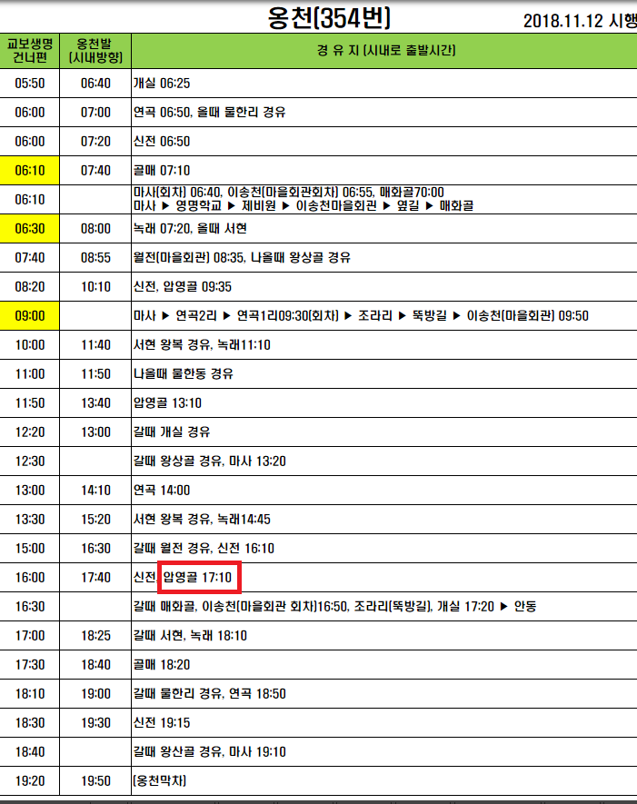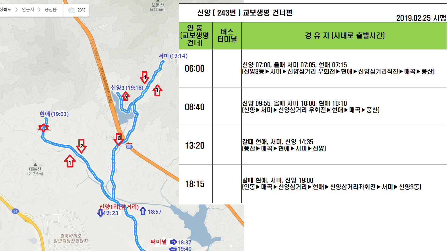 08시54분 243번을 타고 09시13분 신양1리에 하차한다