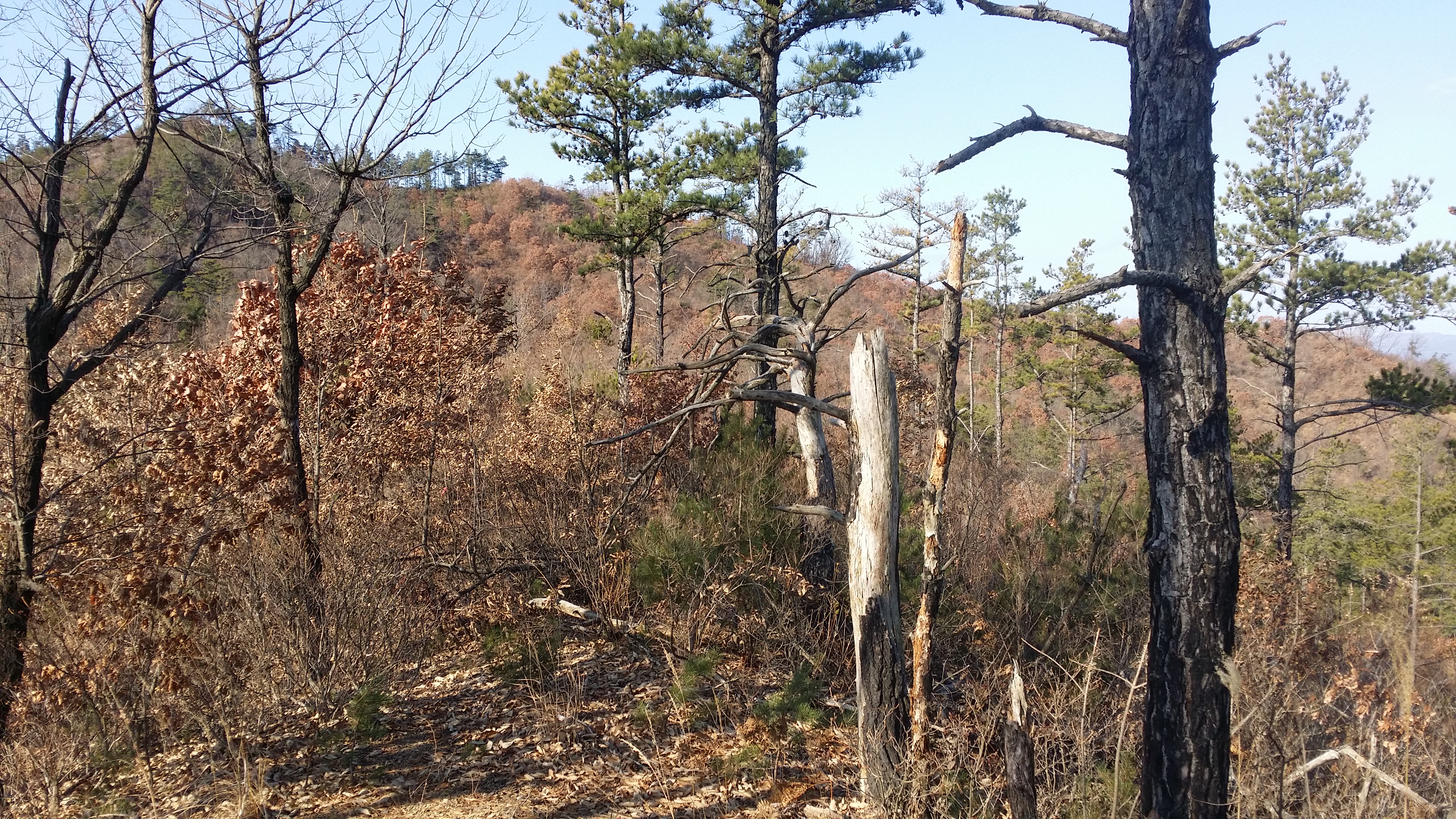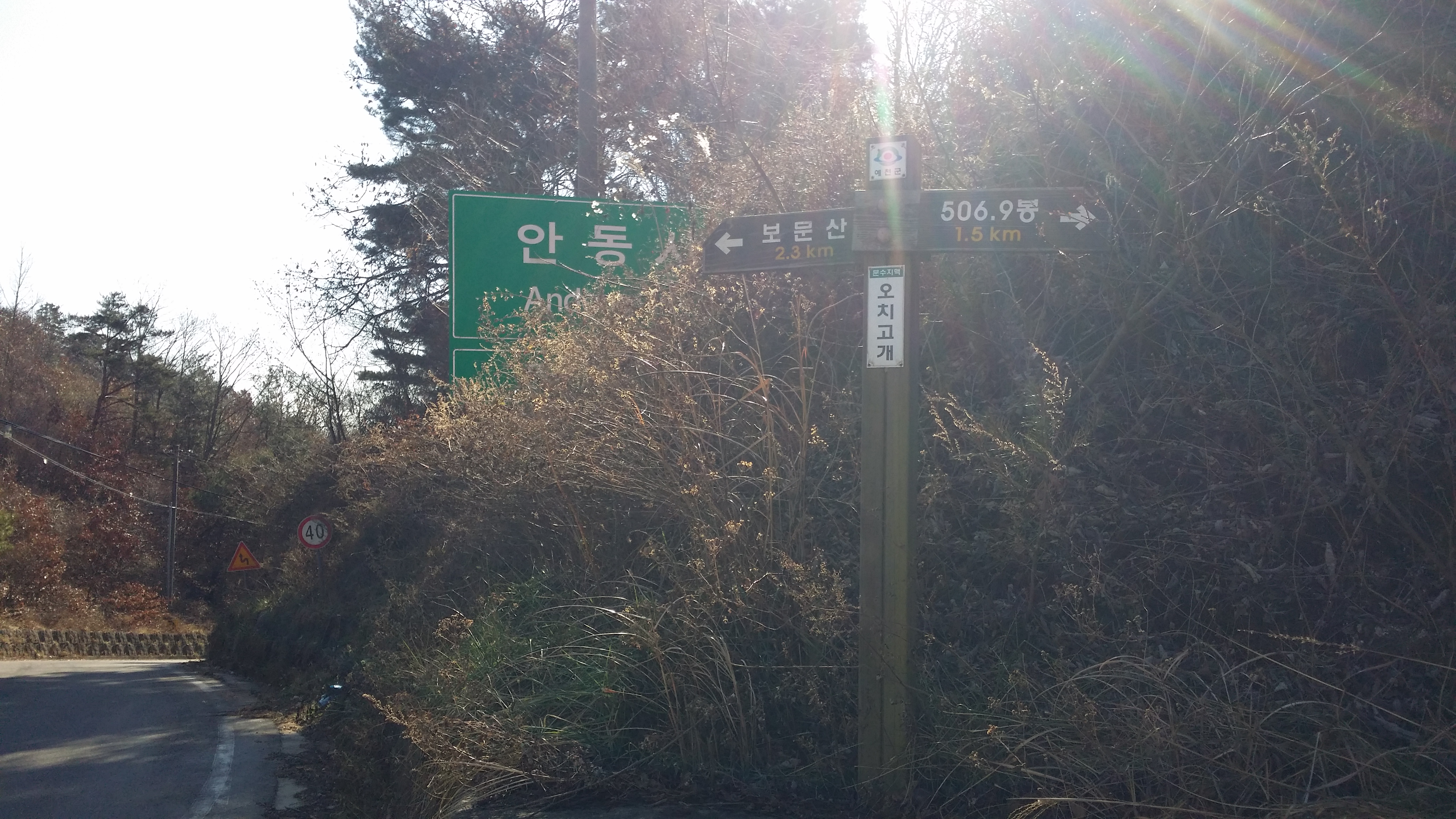 12:49 보문산(△/642.6m)13:06 558.4봉13:20 13:24 575.1봉13:2613:44 원통재 / 진행 방향에 과수원이 있습니다. 맥길 등로를 막아 놓았네요 우측으로 이동하니