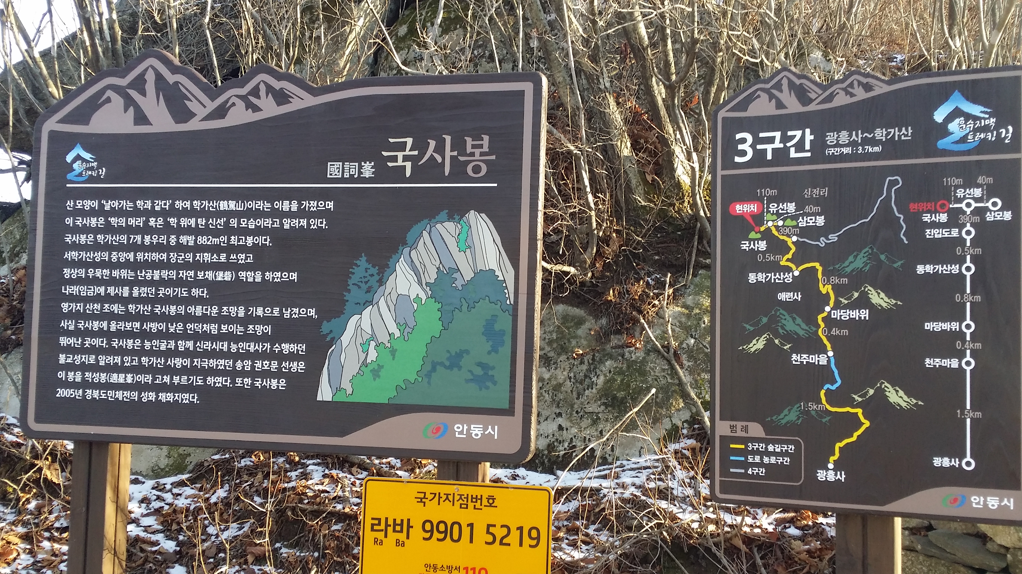 15:57 개구멍 통과후 펜스를 따라 진행하다 적당한 지점에서 우측 능선을 올라서면 또다시 개구멍이 있다.16:05 두번째 개구멍을 통과후 직진하다 펜스따라 우측으로 올라서는 방법이 있고 바로 우측으로 올라서는 방법이 있다. 바로 올라서는게 경사도가 급하지 않아 좋을듯 하다 아무튼 전자는 바로 3번째 개구멍을 만날테고 후자는 사면에 올라서 좌측으로 이동하여야 한다(트랙은 전자 선택)16:09 난가대 / 여유가 있었으면 난가대 부근에 개구멍이 있는지 확인해 볼려 했는데....16:14 학가산 문화환경 연구소가 맥길을 막고 있어 좌측으로 도로따라 내려서다 적당한 지점에서 도로를 버리고 마지막 개구멍으로 진입한다16:46 무시골재 / 마지막 개구멍을 통과한후 학가산 문화환경 연구소까지 되돌아 와야 하는데 산불감시초소에서 내려서니 경로이탈 알람이 울린다 다시올라섰다간 버스를 놓칠것 같아 사면을 따라 이동했다(트랙은 정상적인것으로 대체 처리)17:02 신천 버스정류소당재에서 신천까지 2시간30분 소요 되었다 6Km라 2시간이면 가능할것 같았는데 만만치 않은 산이네17:22 354번을 타고 신천을 탈출18:30 안동터미널에 도착하여 분식집에서 라면을 주문 밖에서 맥주를 곁들여 먹는다안동역 / 2022년 고속열차가 개통되면 좀더 빨리 귀가할까 돈이 아까워 무궁화를 여전히 이용할까