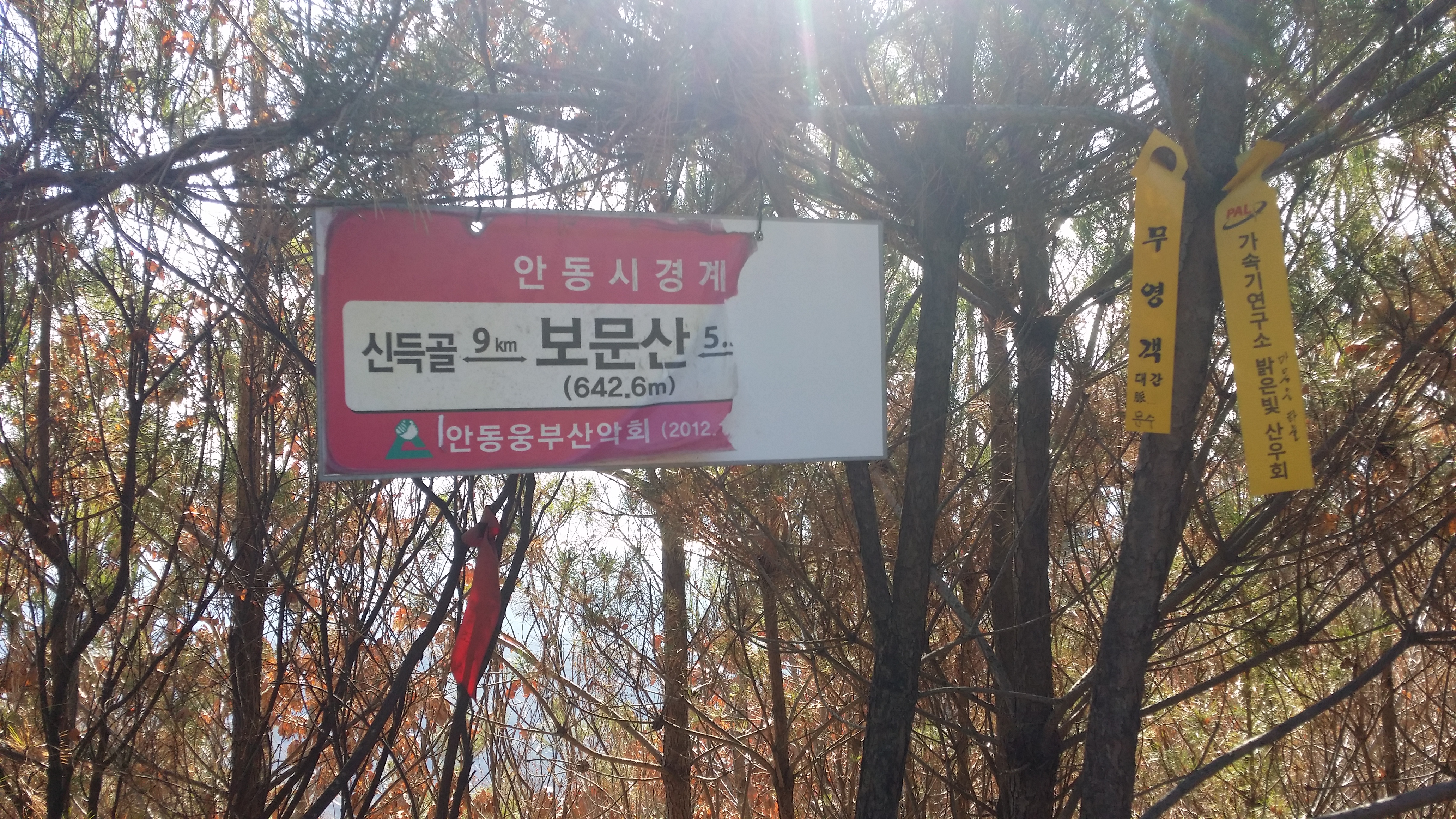 09:36 현애리 갈림길09:38 대붕산 갈림길 / 신전에서 17시20분경 버스를 타야 하기에 마음의 여유가 없다. 시간만 허락 된다면 좌측으로 진행하여 백붕현으로 진행하면 다음 구간이 수월해 지는데....09:50 백붕현 / 신양1리에 예상보다 일찍 도착하여 좋아 했는데 백붕현까지 도상거리가 잘못된건지 도루목이되어 버렸다. 이렇게 되면 마을미 그해 지는데 393.5봉 오름길이 잡목으로 식겁하네10:13 393.5봉 / 우찌 올라왔는지 모르겠다10:28 여기서 부터 조금 좋네(393.5봉을 뒤돌아 본다)다음 구간인 경북도청 신도시현애리