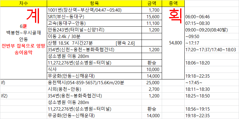 06:48 동대구역에 하차하여안동행 고속버스를 타기위해 동대구 복합환승터미널로 향한다08:26 안동에 도착하여