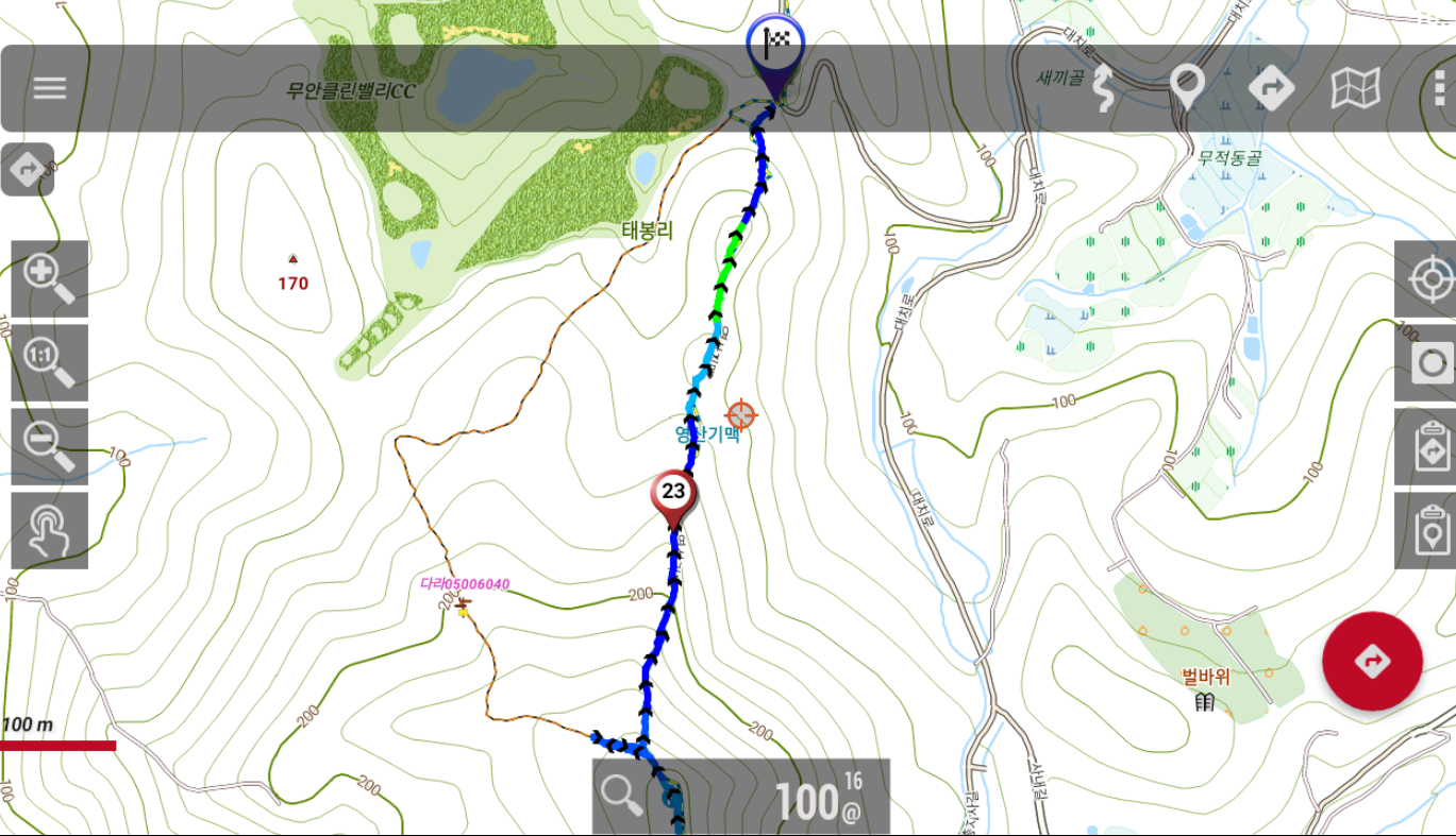 09:16 맥길 접속09:18 좌측 능선이 맥길인데 펜스로 인해 도로를 따라 진행합니다09:28 대박산(157.3m)삼향동 주민센터 내려서기전 등산로는 우측으로 우회합니다. 이길을 따르는게 맞습니다. 맥길간답시고 되돌아서 들머리를 찾느라 여기저기 기웃거리다 겨우 찾았는데 길목길목에 가시나무가 있어 안들어서는게 좋을듯 하네요.09:50 육교(1번국도)를 건넙니다.09:59 월산교회 갈림길목포 시가지10:07 144.1봉10:11 현대아파트 갈림길
