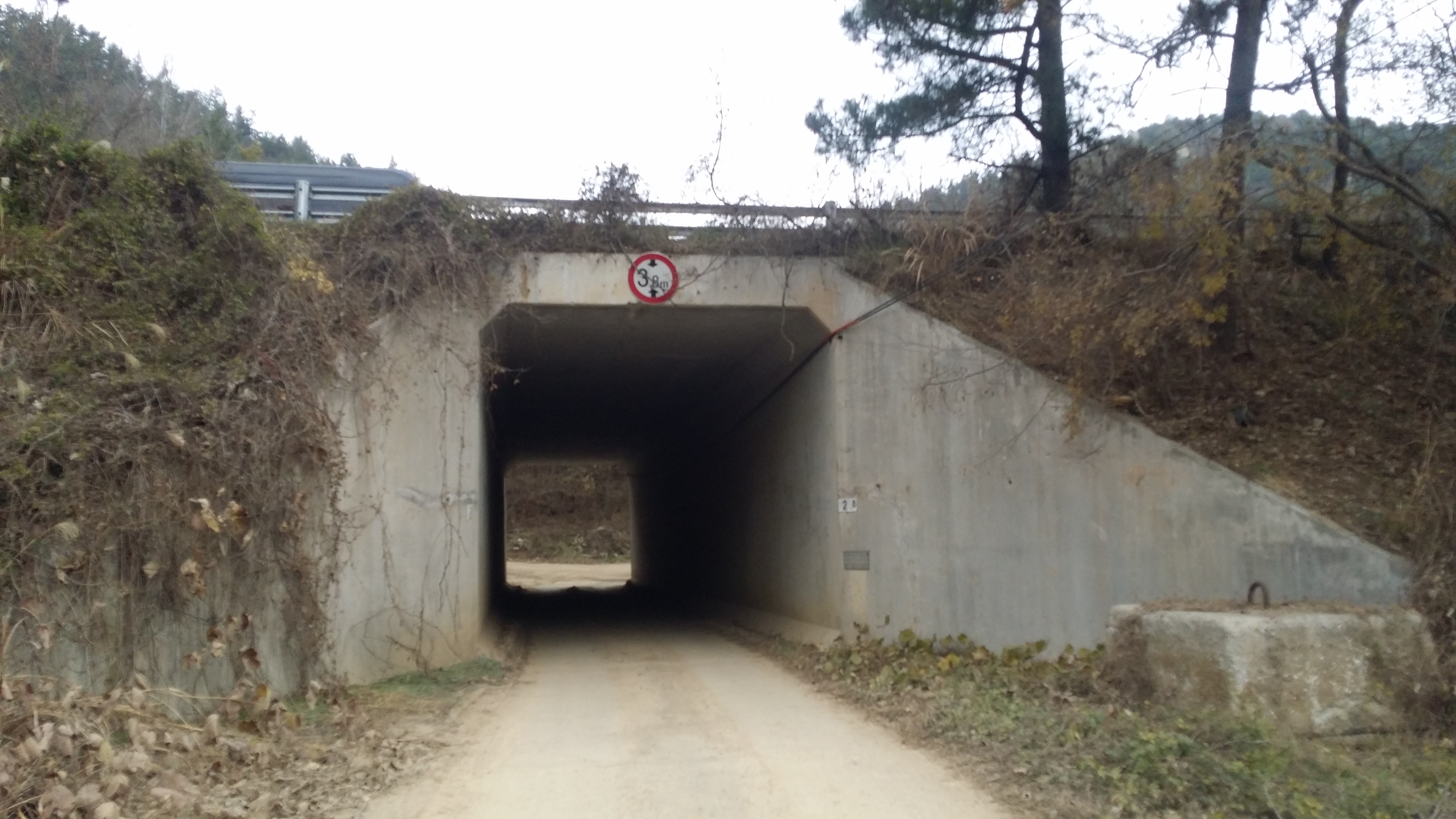 16:12 태봉재/동물이동통로 / 19년 계획 수립시엔 도로 개설 작업이 한창이어 대치리로 빠지는 지점에서 구간을 끊었는데, 이제는 도로가 개통되었고, 주차장도 있어 이곳에서 구간을 끊는게 맞을것 같다