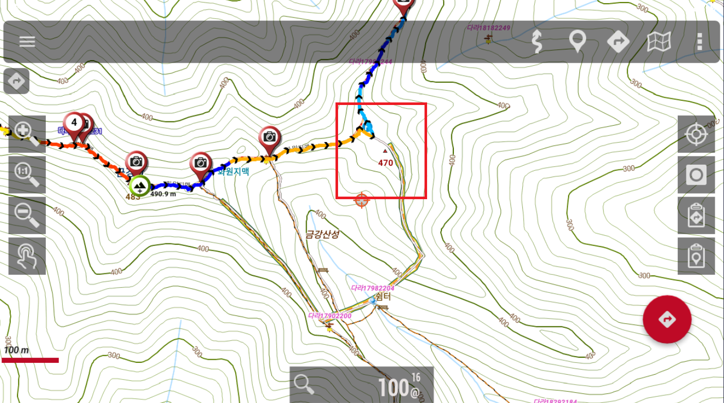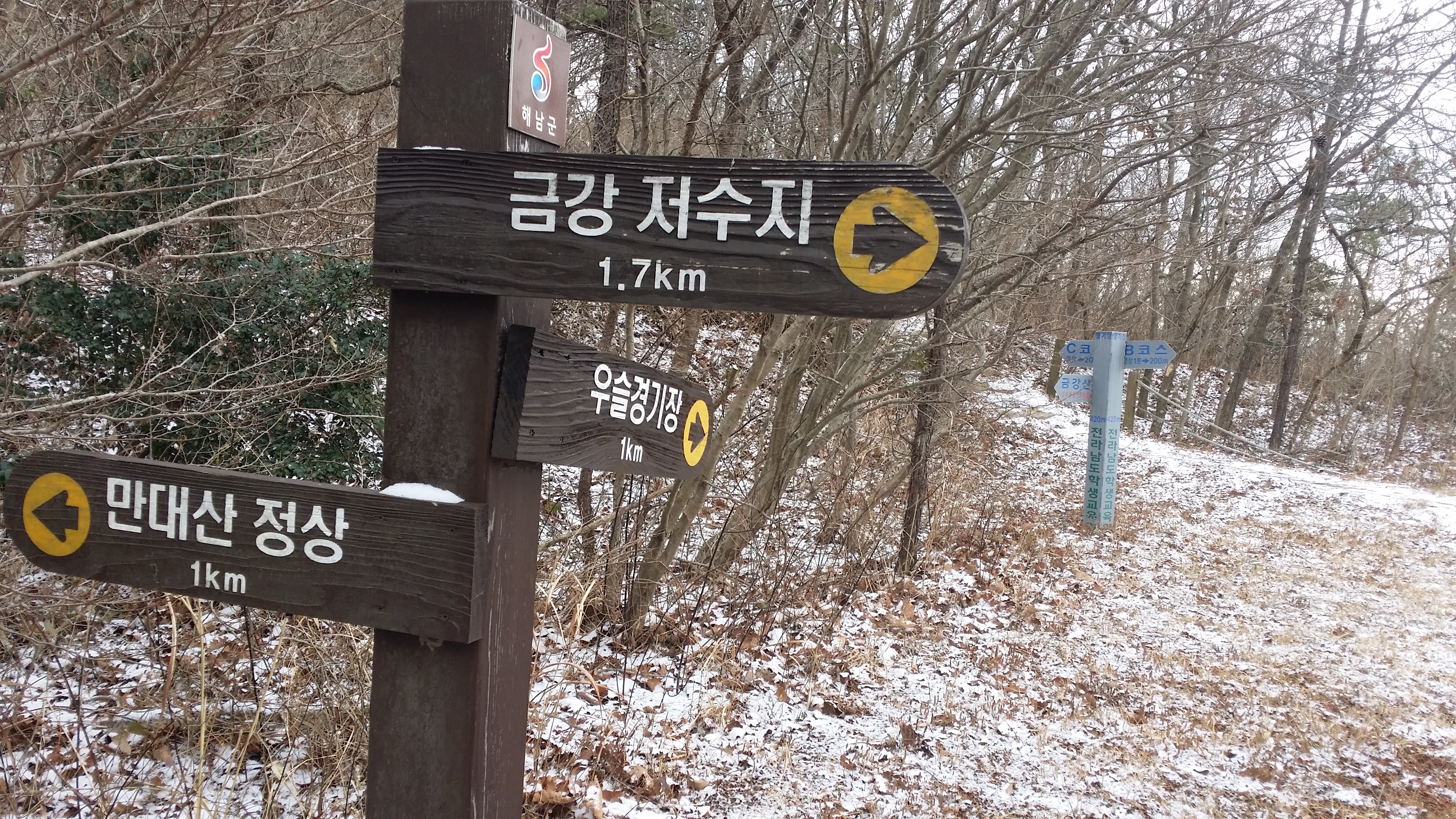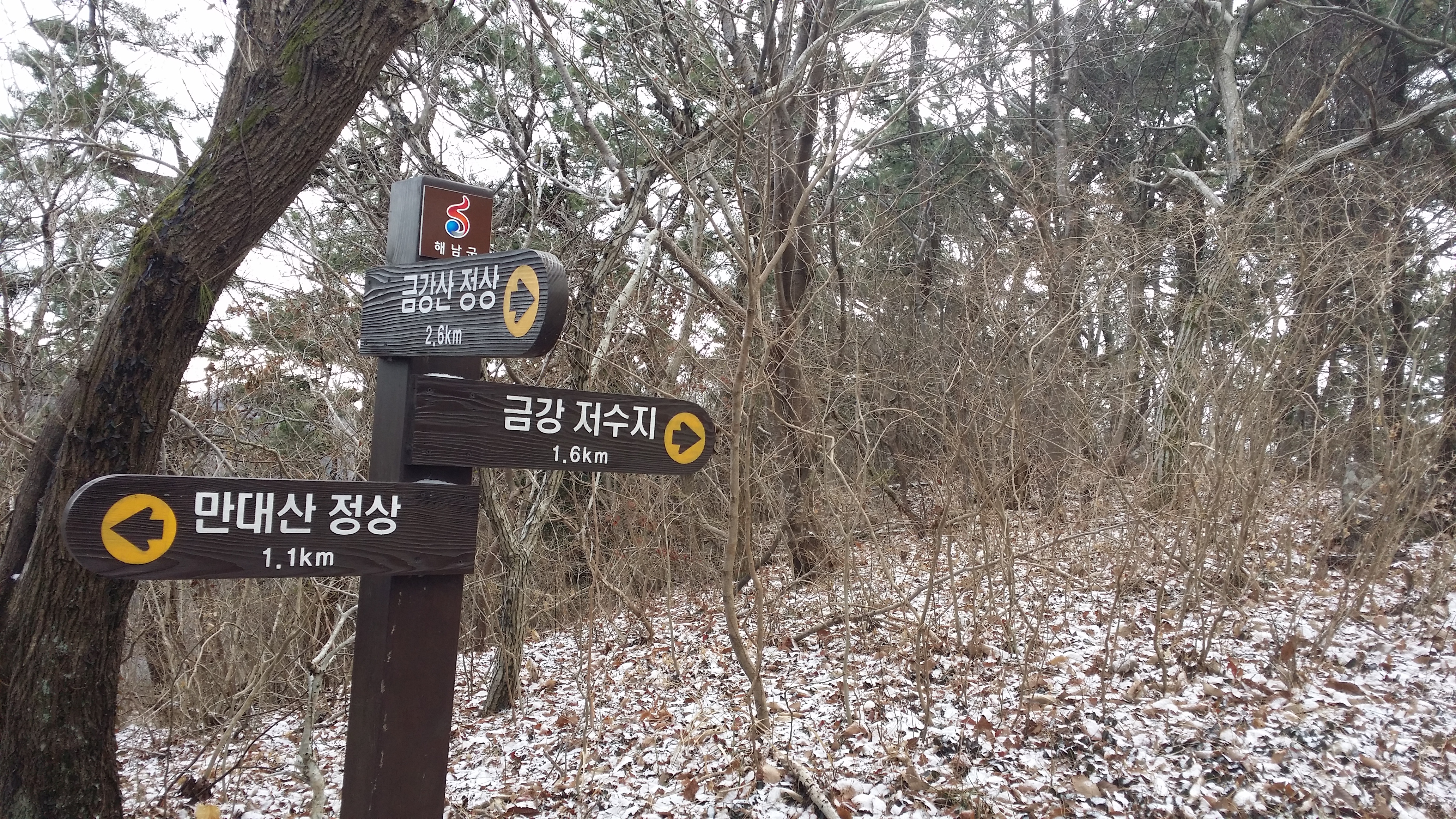 10:44 482.8봉(△)10:47 금강산(488.3m)금강산에서 내려다본 해남군 소재지10:50 주차장 갈림길10:53 우정봉 갈림길10:56 휄기장에 올라서 469.8봉을 접속할려 했는데, 등로가 없다. 억지로 밀어부쳐도 되지만 쩍지의 주력을 봐서 포기한다. 이후 산행을 종료하며 정해진 등로외 곁가지는 언감생심이라10:59 쉼터 갈림길11:07 420.1봉11:23 주차장 갈림길11:34 금강저수지 갈림길11:34 396.1봉 / 금강저수지 방향으로 20m 떨어져 있다11:47 465.8봉11:54 만대산(493.1m)11:59 깃대봉(458.4m)12:03 440.3봉12:06 440.3봉 부근에 삼형제바위가 있다는데 혹시 저놈들인지. 우슬치로 내려서며 마지막 바위를 돌아봅니다12:13 금강저수지 갈림길12:18 447.3봉으로 진행하는 암릉구간에 도착했습니다. 마음은 꿀떡 같은데, 우회하기로 합니다12:19 447.3봉 우회지점 / 합수부로 진행시 447.3봉은 직등이 불가하여 우회하는데, 사전에 공부하고도 현장에서 부딪히니 헤메네요12:21 447.3봉