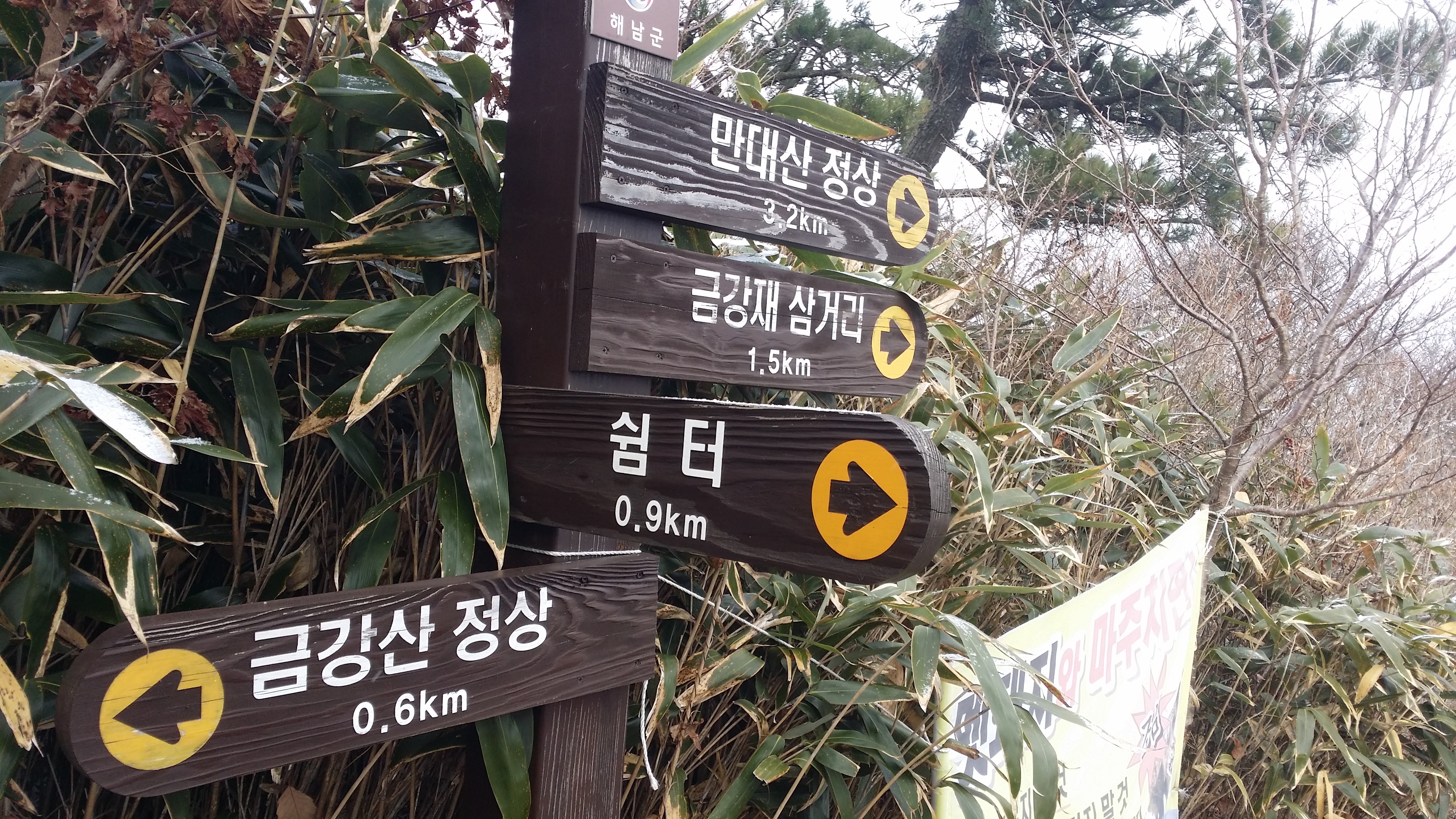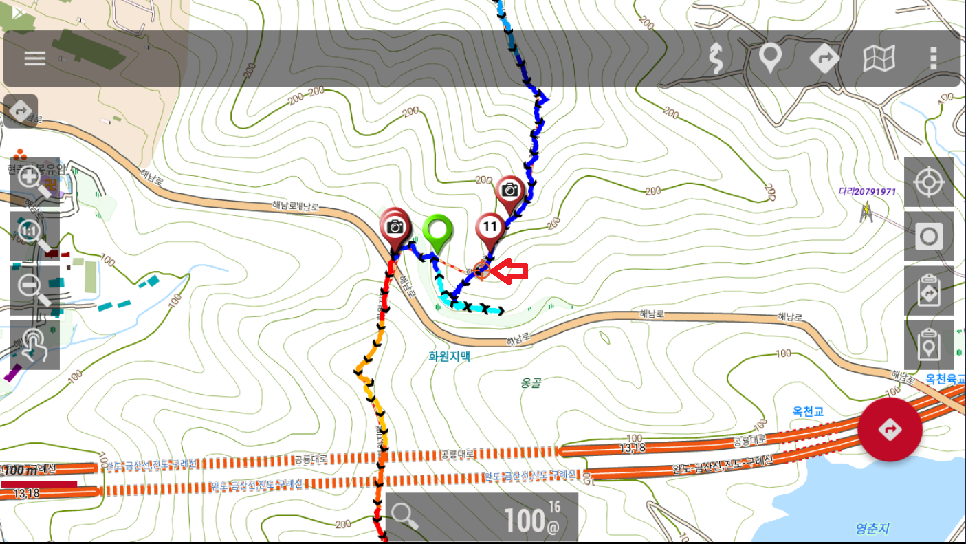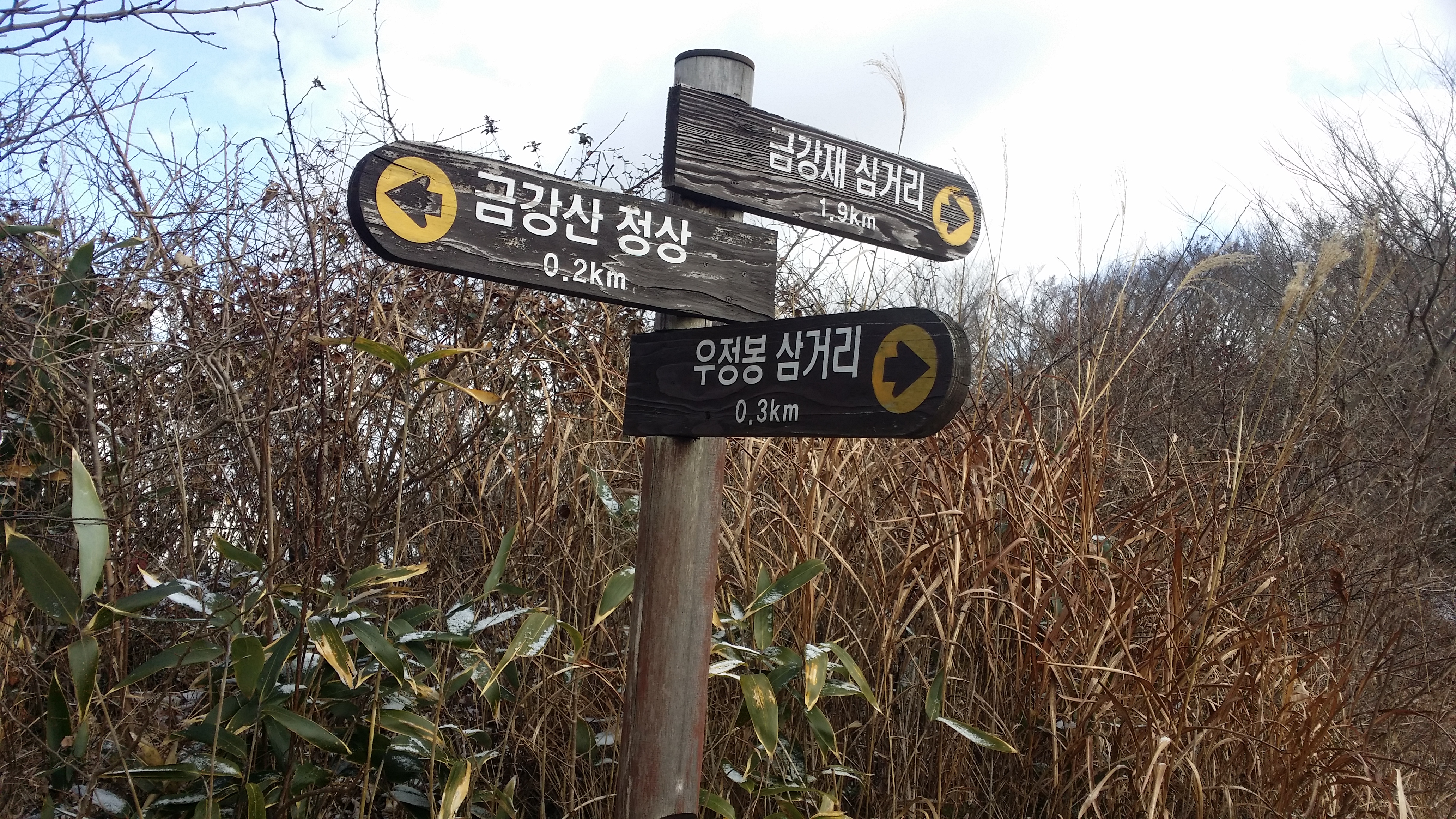 10:44 482.8봉(△)10:47 금강산(488.3m)금강산에서 내려다본 해남군 소재지10:50 주차장 갈림길10:53 우정봉 갈림길10:56 휄기장에 올라서 469.8봉을 접속할려 했는데, 등로가 없다. 억지로 밀어부쳐도 되지만 쩍지의 주력을 봐서 포기한다. 이후 산행을 종료하며 정해진 등로외 곁가지는 언감생심이라10:59 쉼터 갈림길11:07 420.1봉11:23 주차장 갈림길11:34 금강저수지 갈림길11:34 396.1봉 / 금강저수지 방향으로 20m 떨어져 있다11:47 465.8봉11:54 만대산(493.1m)11:59 깃대봉(458.4m)12:03 440.3봉12:06 440.3봉 부근에 삼형제바위가 있다는데 혹시 저놈들인지. 우슬치로 내려서며 마지막 바위를 돌아봅니다12:13 금강저수지 갈림길12:18 447.3봉으로 진행하는 암릉구간에 도착했습니다. 마음은 꿀떡 같은데, 우회하기로 합니다12:19 447.3봉 우회지점 / 합수부로 진행시 447.3봉은 직등이 불가하여 우회하는데, 사전에 공부하고도 현장에서 부딪히니 헤메네요12:21 447.3봉