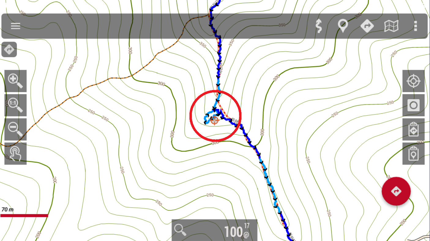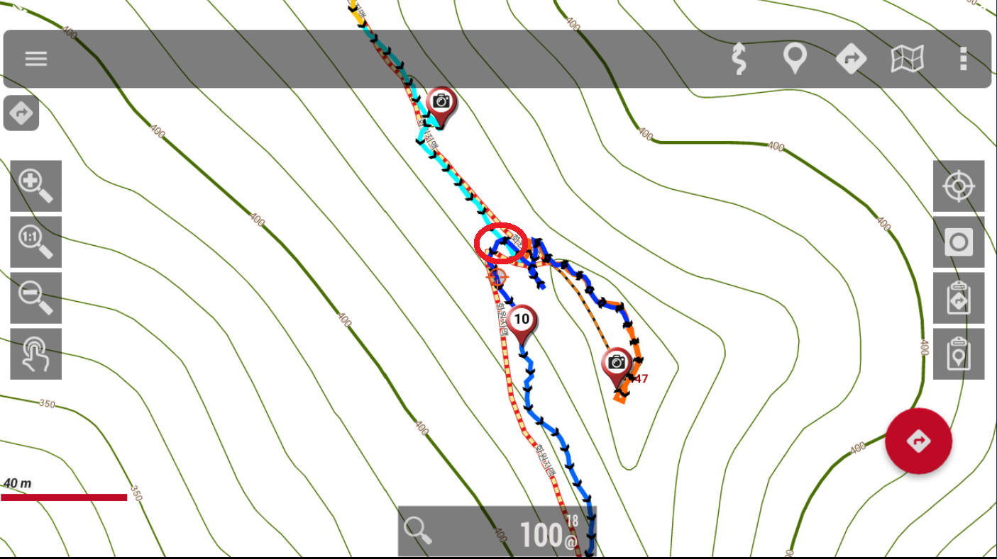 12:31 전남학생교육원 갈림길 / 등로양호 경계지점 / 여기서 부터 다시 등로는 엉망진창 입니다12:37~12:41 알바 / 합수부로 진행시엔 문제가 안되는데 역산행시엔 지맥길보다 우측길이 선명하여 주의를 요하는 지점입니다12:59 오늘은 예상보다 늦게 A조를 만났습니다. 결론은 우리가 가야할 등로가 나쁘다는 의미죠13:02~13:14 알바 / 逆산행시 등로 체크지점