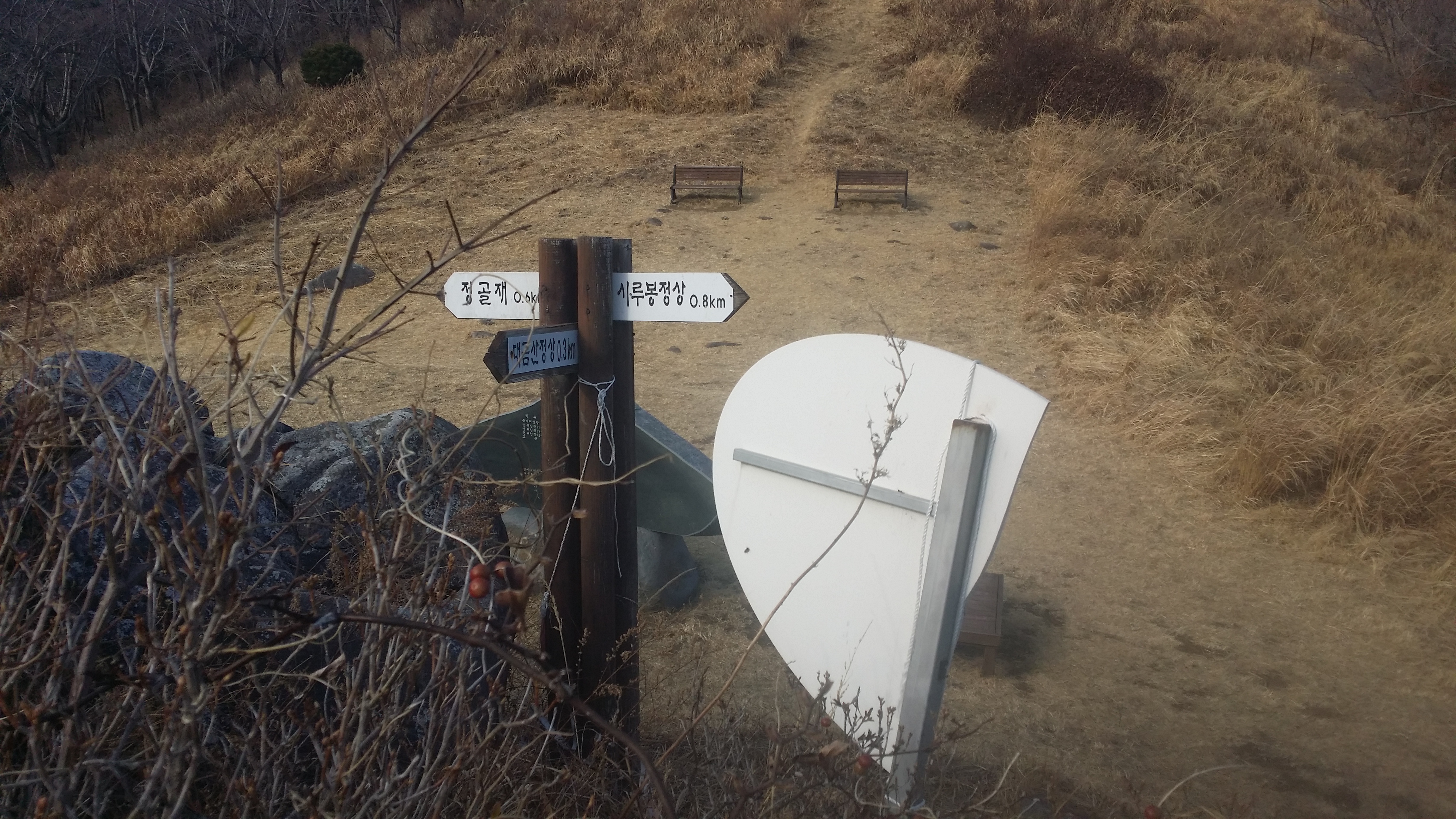 16:03 대금산(△/438.7m)16:10 시루봉 갈림길16:18 시방 갈림길16:22 상금산(285.5m)상금산에서 등로는 우측으로 형성되어 있다. 마루금은 좌측으로 진행해야 한다 들어섰더니 희미하게 흔적이 보인다. 중도에 우측으로 내려서야 하는데 길 좋다고 직진하는 바람에 제대로된 맥길을 놓쳤다.16:35 율천고개16:44 209.5봉