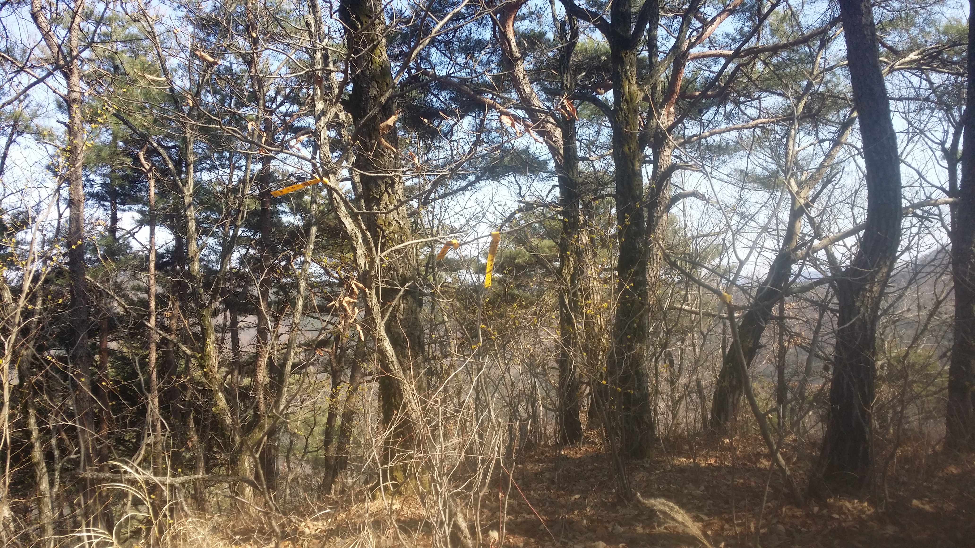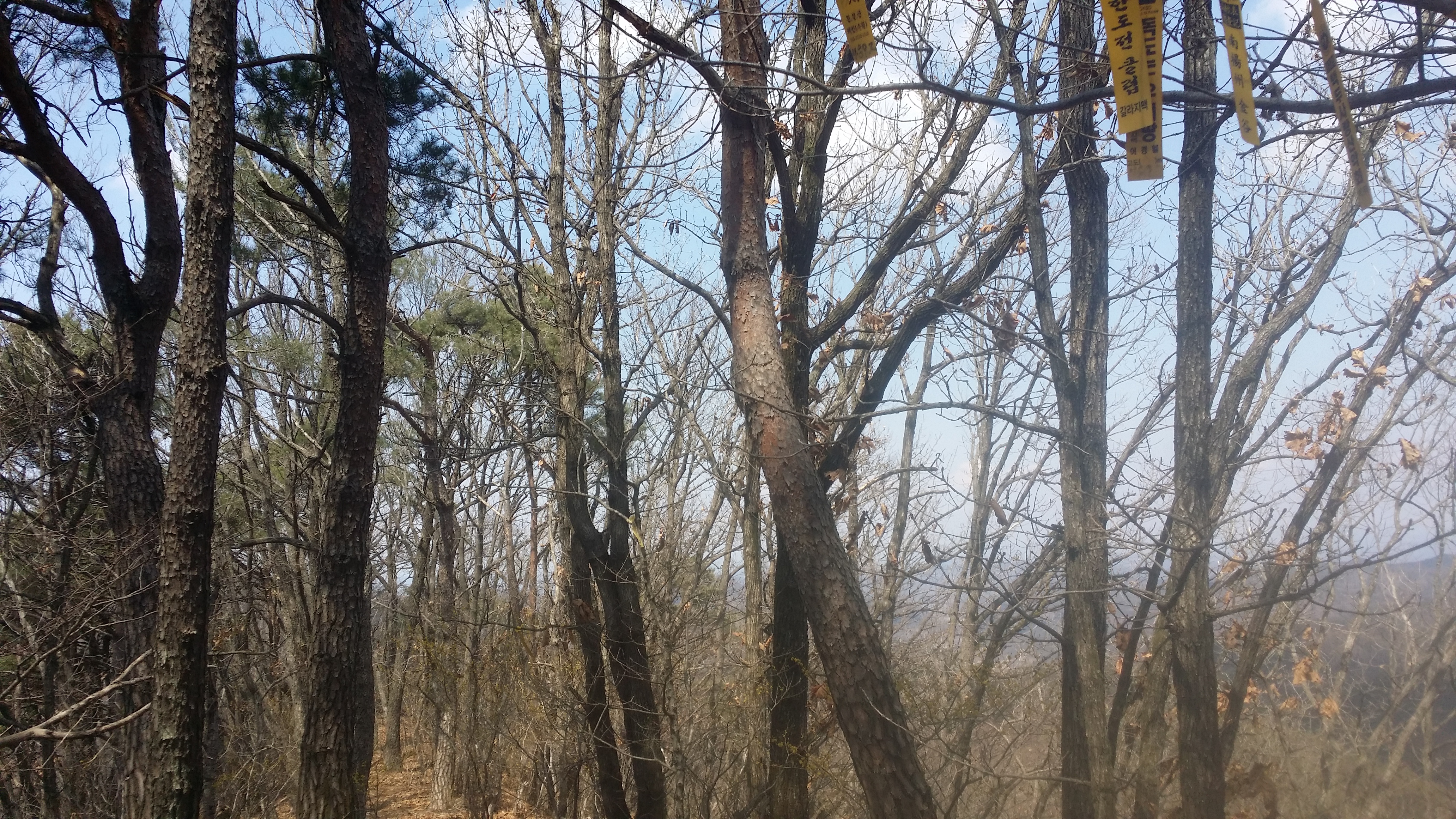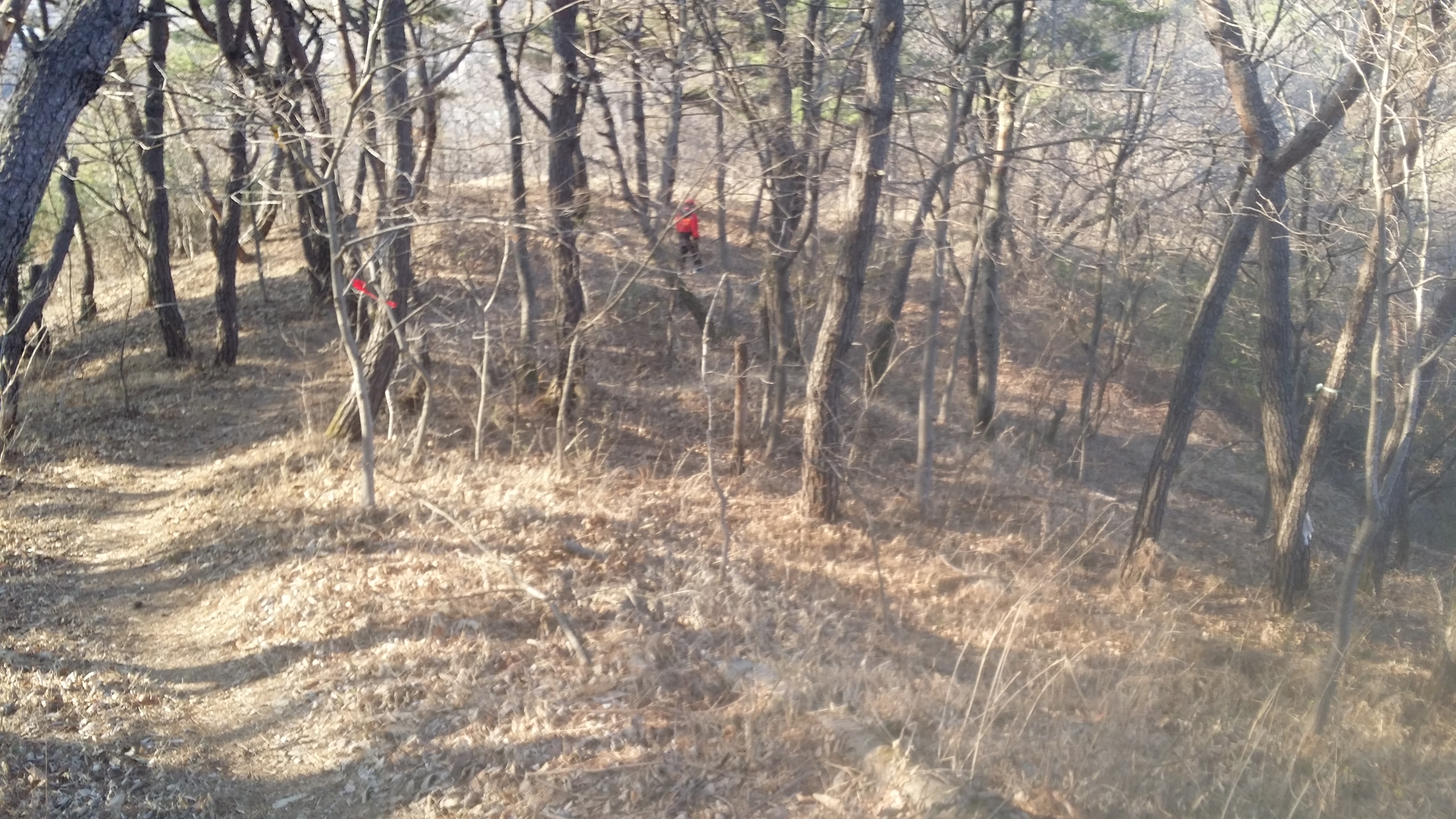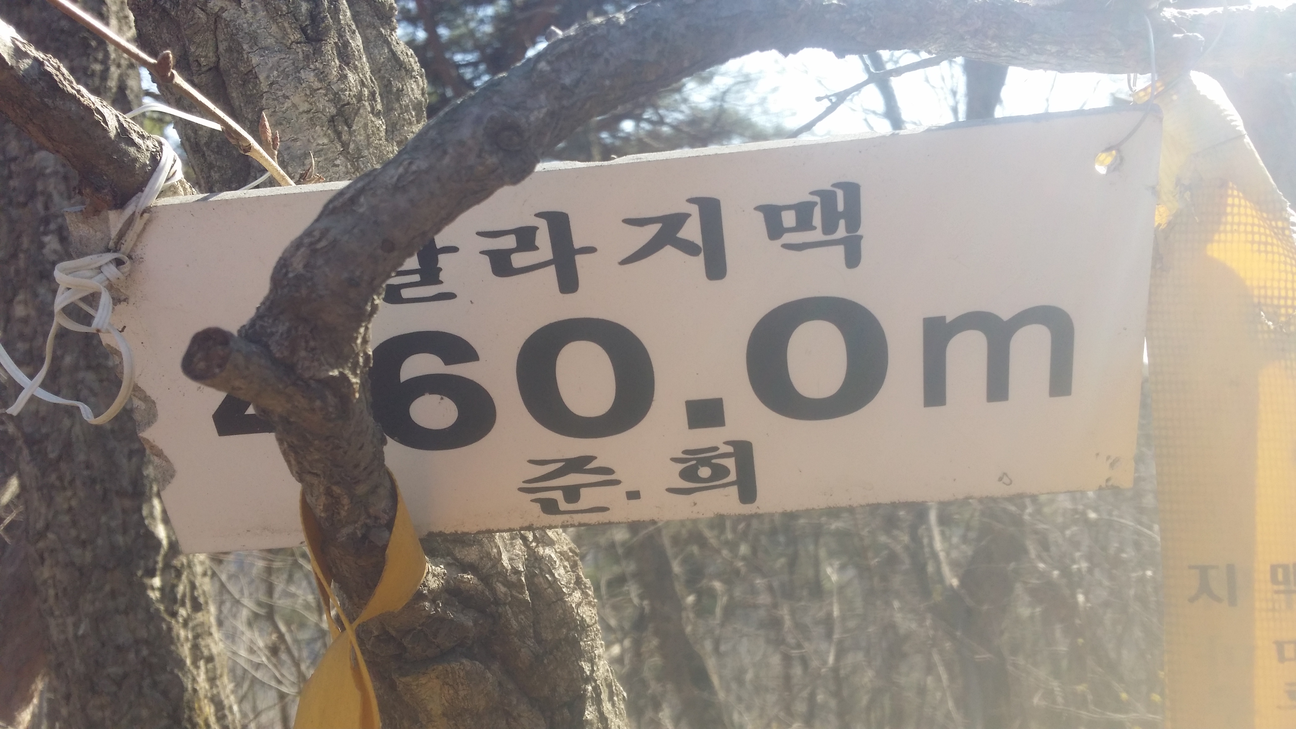 12:28492.9봉(△)12:50 489.2봉13:13 입산금지 / 능선 오른쪽으로 지 땅인것 같네. 거긴 안들어 가요13:29 고갯마루13:44 기룡산 갈림길 / 마루금은 좋은길을 버리고 좌측으로 떨어진다. 마루금에서 떨어져 있는 기룡산에 가보자13:52 502.4봉(△)13:59 기룡산(555.4m)14:12 기룡산 갈림길 / 왕복 28분 소요되었다14:30 519.8봉 / 등로체크지점 / 육안상으론 3거리로 직선방향과 90도 방향의 등로가 보인다. 맥길은 135도방향으로 급작스럽게 꺽는다. 519.8봉에 올라서 90도 방향의 등로가 맥길이라 생각하고 우측으로 보이는 시그럴을 무시했는데 계속 보인다. 그중 맥꾼의 시그럴도 있어 믿고 내려선다14:34~14:37 내림길이 제법 가파르다. 완만한 지점에서 다시 진드기 기피제를 뿌린다. 지속 유효 시간이 6시간용 이지만 어차피 중간에 한번 더 뿌려야 하기에 예상한 산행종료 시점을 기준으로 절반을 잘라 뿌리고 뿌리고14:57 471.5봉15:15 460봉 산패 / 지리원에 고도 표시가 없는 봉우리에 460봉 산패가 설치되어 있다.