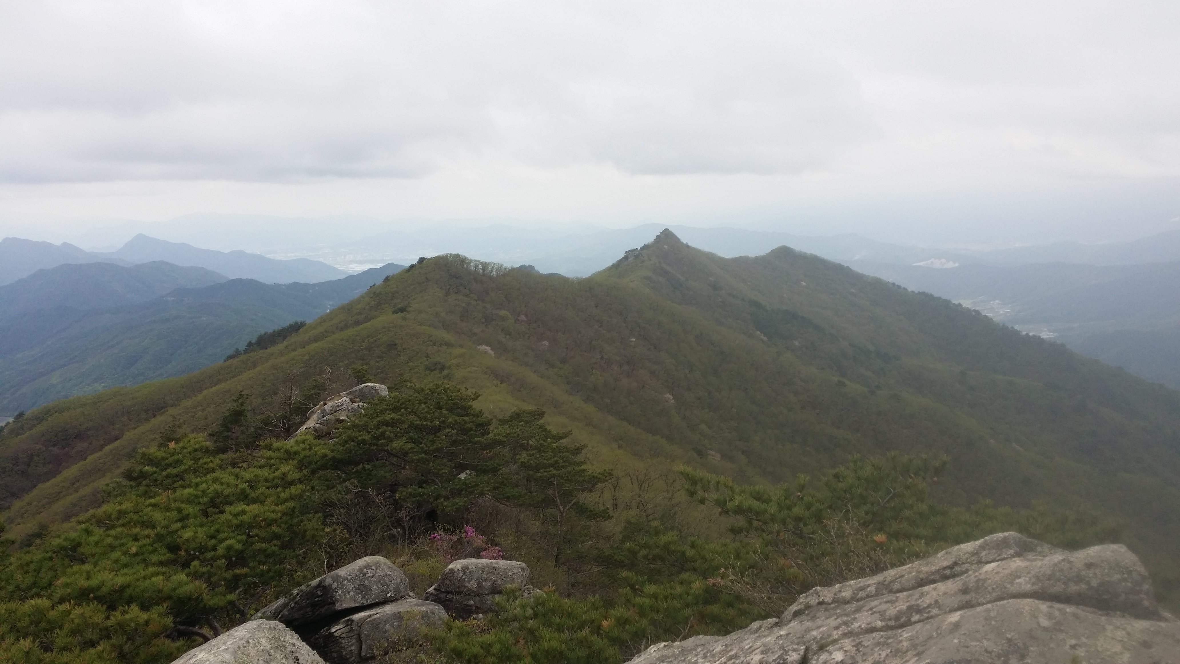15:36 보해산(△/911.5m)금귀산보해산을 지나면서 멋진 암릉구간이다건너편엔 수도지맥 고봉들이 보이고15:58 857봉에서 수도지맥을 바라본다16:09 834.1봉에서16:17 고대마을 갈림길