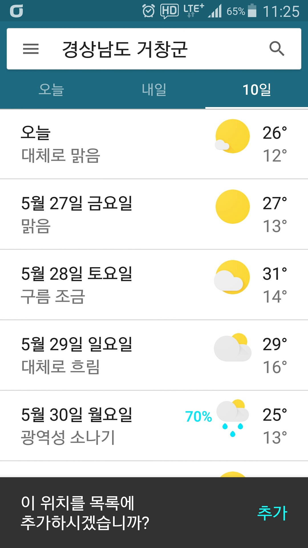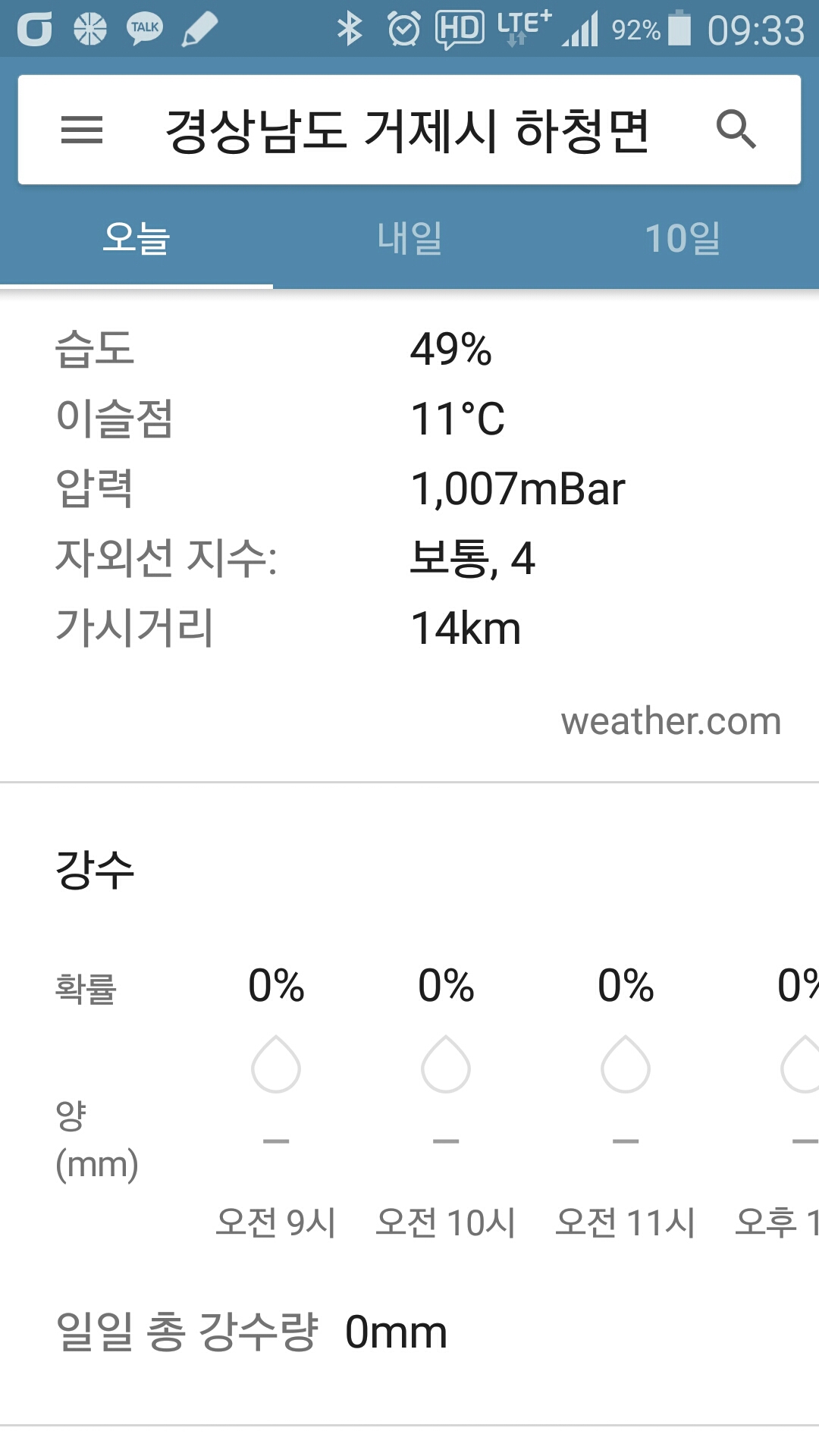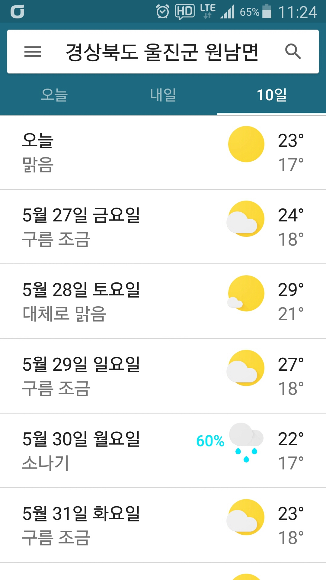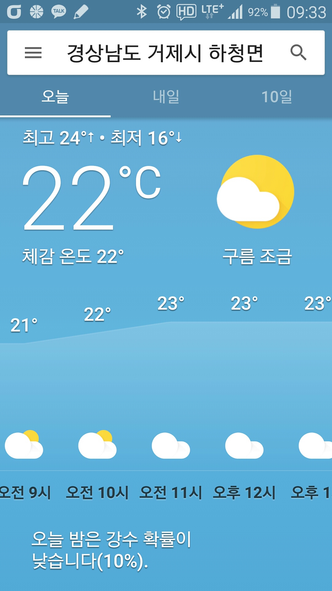 - 기상 : 22˚ ~ 24˚, 습도 49%, 바람 14~24(약함), 공기질 87(보통), 일몰 19시31분