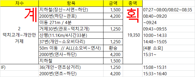 이번주 주말도 가고자 하는곳 대다수가 30도를 웃돈다. 그중 울진쪽이 낫는데, 비용 문제로 고민이다. 3구간으로 나눌시 232,700원이 소요되고, 1박2일로 마무리 하자니 178,700원 정도가 소요되지만 둘째날 열씸히 걸어야 되어 갈등이다. 통상 1구간은 65천을 안넘기기로 방침을 정했는데, 이는 너무 초과라 몇일을 두고 고민하다, 덮어두고 차선 산행지인 거제도로 향하기로 한다