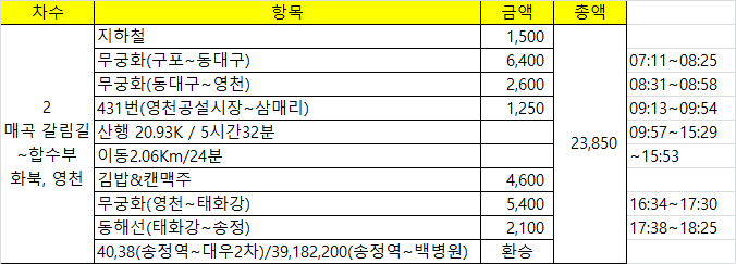 - 산행구간 : (삼매2리) ~ 매곡 갈림길 ~ 금호강&신령천 합수부