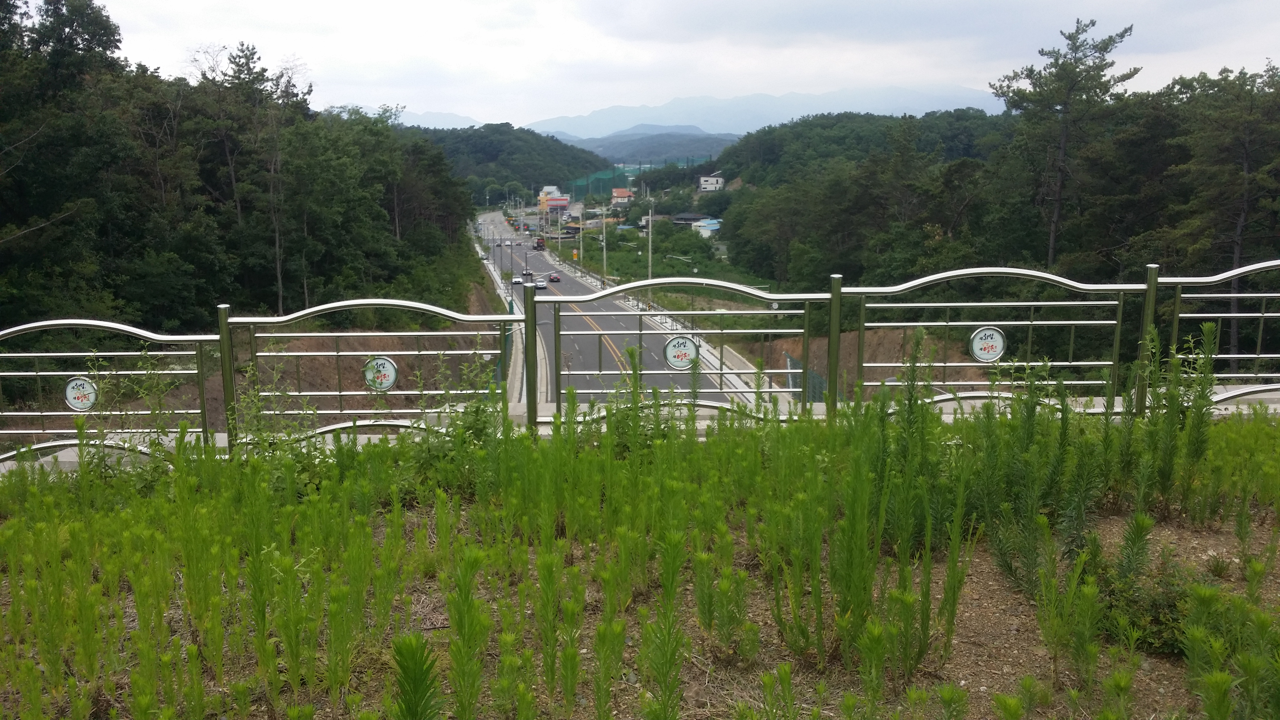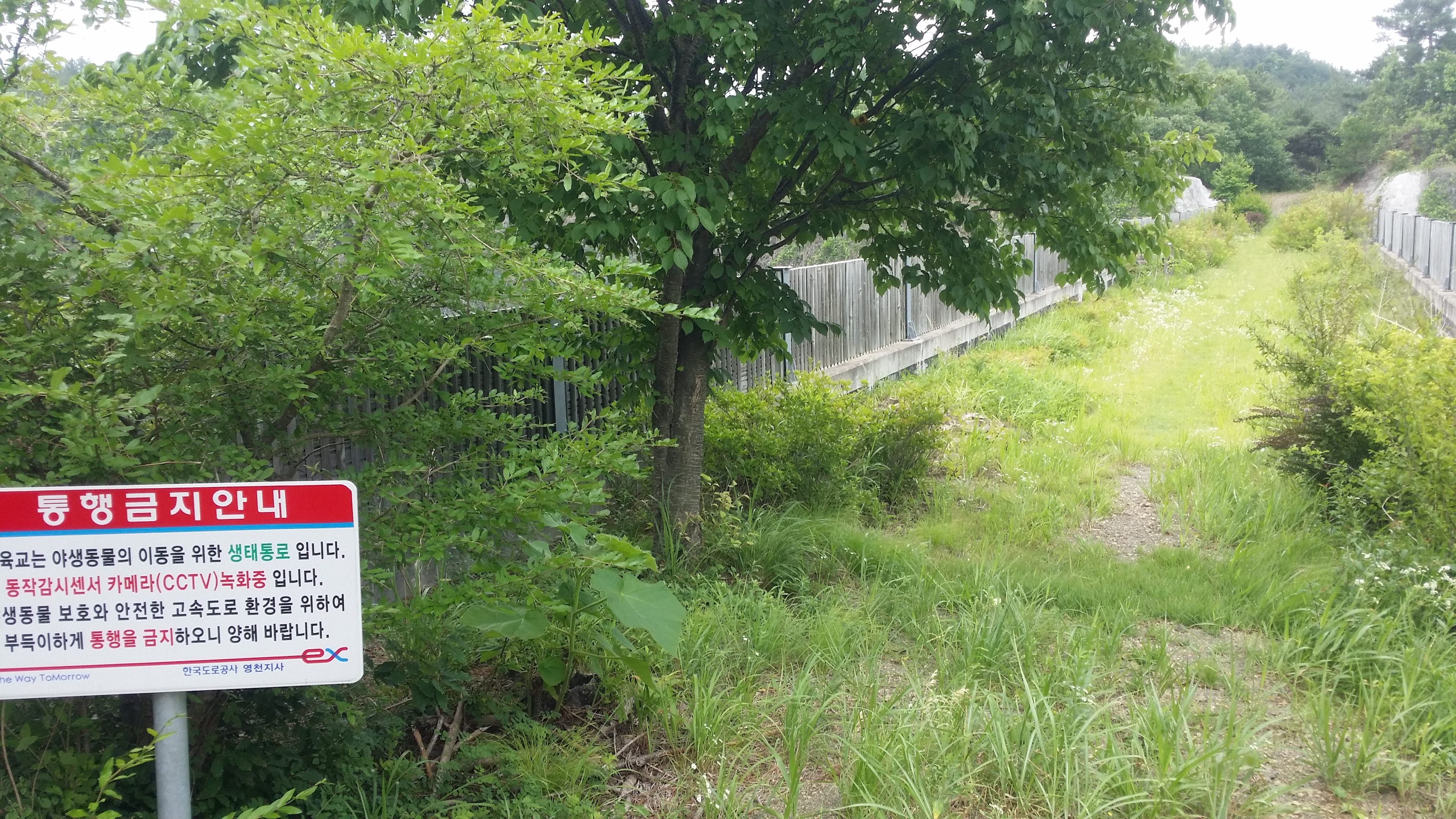 10:46 마루금(분홍선)은 익산~포항간 고속도로로 인하여 마루금에 충실하자면 수로(빨간선)를 따라야 하고 포복이 싫으면(파란선) 동물이동통로로 우회하여야 한다. 정수지맥때 수로를 통과했는데 유쾌하지 않아 우회한다. 동물 이동통로를 지나 마루금으로 복귀하는길이 만만치가 않네