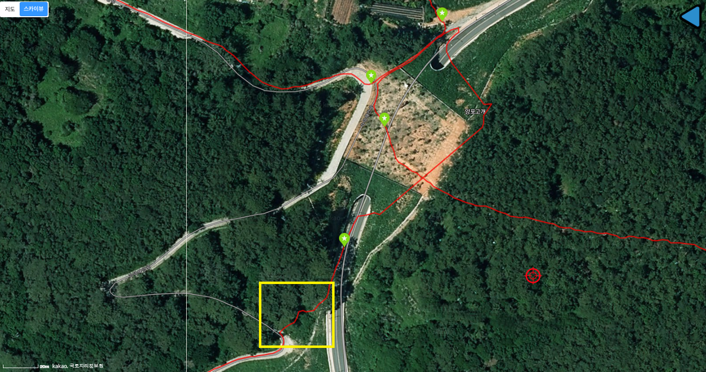 큰길을 따라 갔어야 하는데 참조한 트랙이 지름길이라 대항회식당 뒤를 올라섰는데