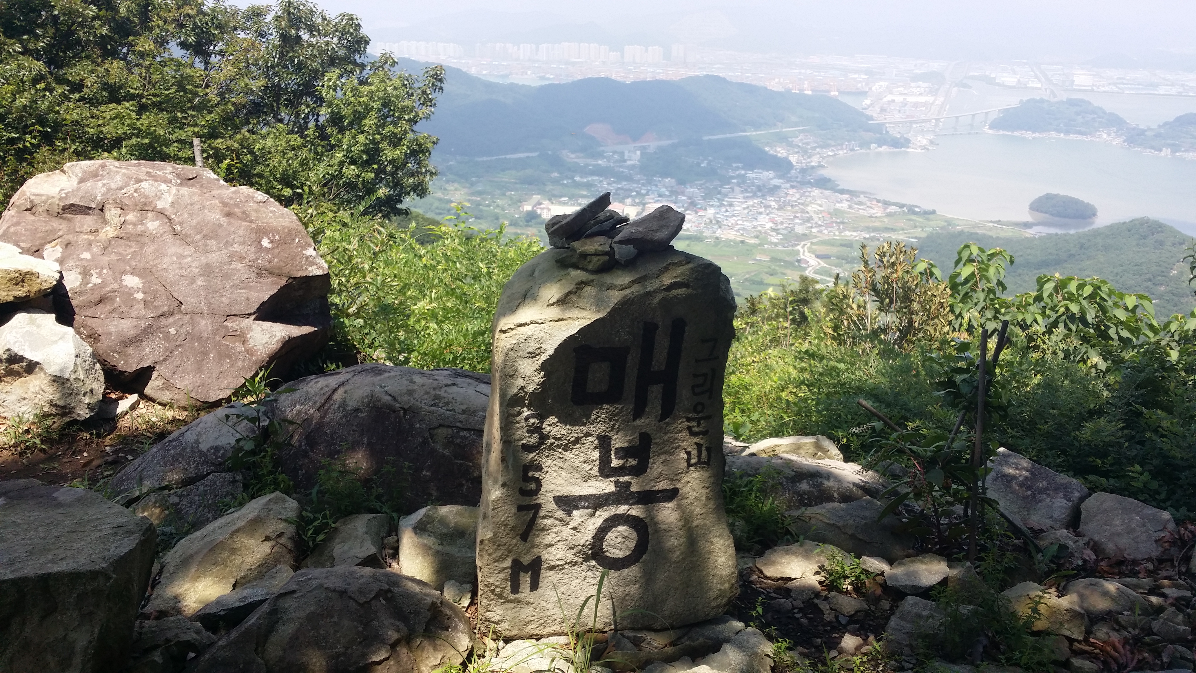 매봉을 올라서며 낙동강 하구 명지 신도시를 바라본다