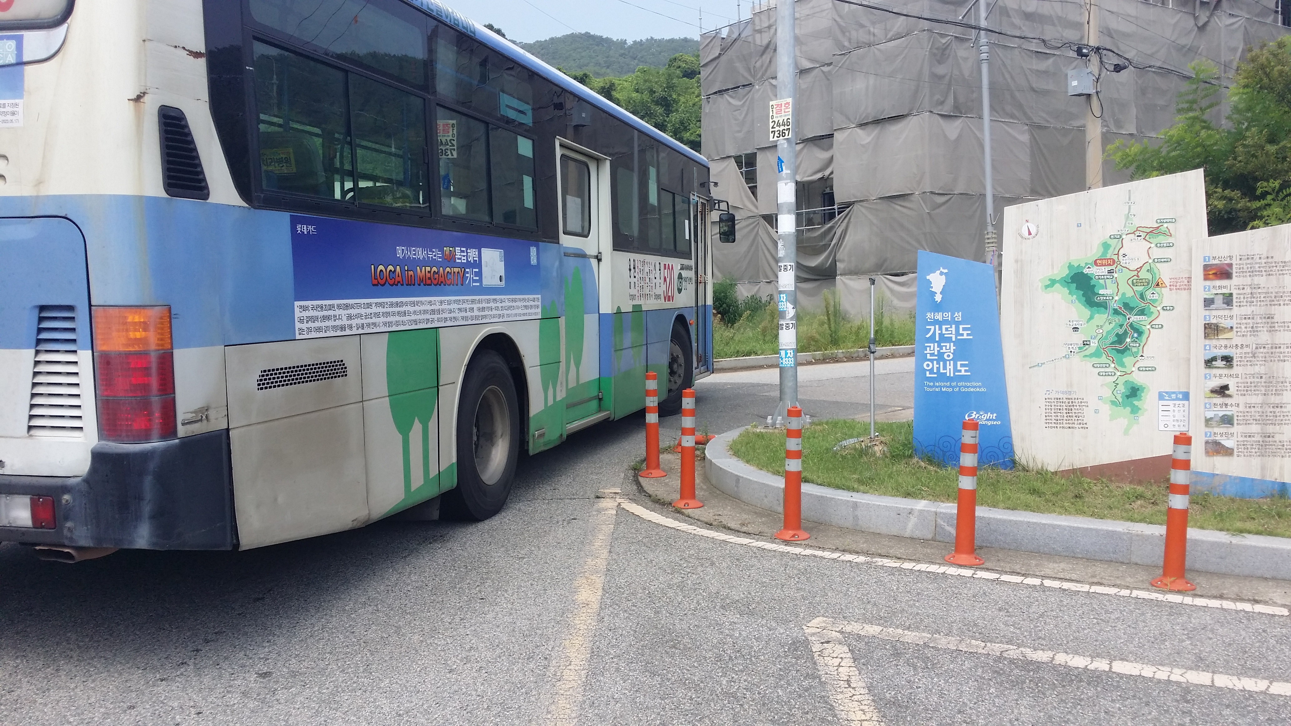 10시51분 520번이 먼저 도착하고, 뒤에 1011번이 따라 온다. 만약 장산역에서 9시15분? 버스를 탔다면 간발의 차이로 520번을 놓치는 형국이다. [참고사항] 1. 용원~한성기린아파트를 운행하는 520번 버스의 경우 양방행 모두 경제자유구역청에서 대항마을까지 중복 운행함으로 들머리 동선마을行은 보이는 즉시 타면되고 가덕도에서 탈출시 경제자유구역청까진 중복 운행함으로 일단 무조건 승차하여 경제자유구역청에서 환승하는게 낫을것 같다. 2. 토,일,공휴일엔 대항마을에서 외양포까지 연장 운행한다