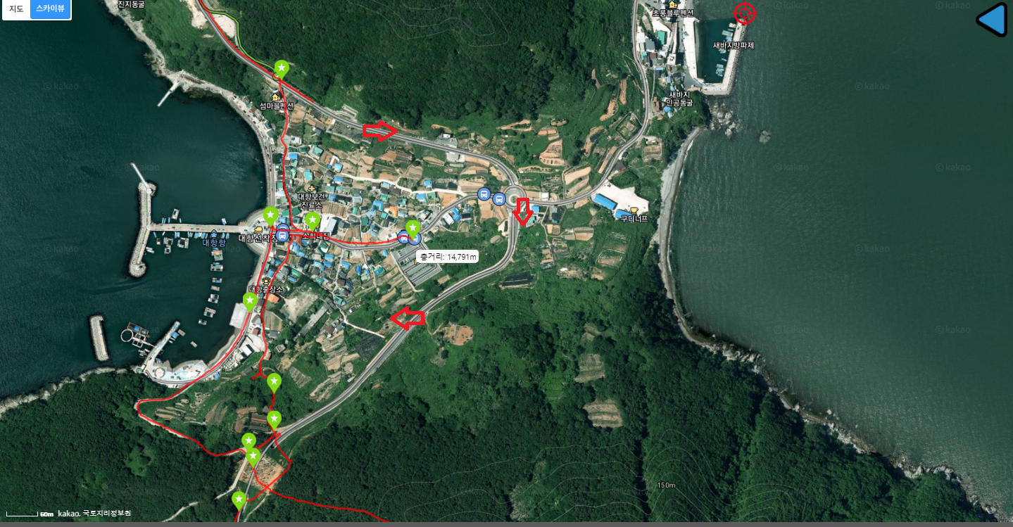 - 참고사항 : 대항식당 뒷길 외양포 생태터널 가는 등로는 여름엔 피하고 도로따라 이동하이소, 여기에 진드기 있는것 같아요.
