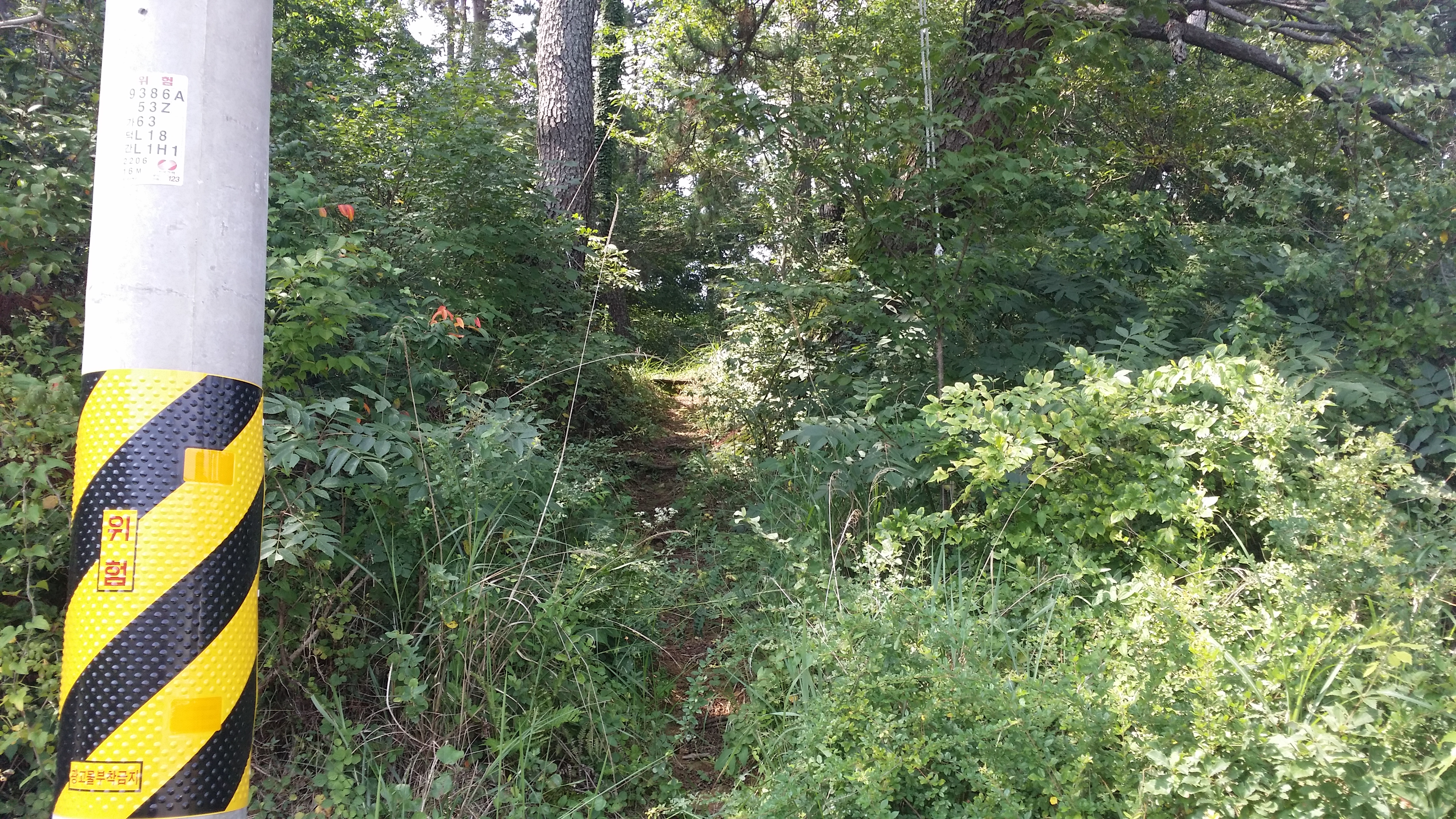 11:13 전봇대 옆으로 들어선다. 조금 올라서면 좌측으로 묘지가 있고 이를 지나면 좌측으로 등산로가 있는데 중간중간에 등로가 흩어져있어 적당히 움직이며 진행한다