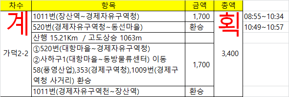 부산은 시내버스 배차 시간을 제공하지 않기에 산행 이틀전날 들머리 이동 방법 및 환승 시간을 체크해 보니 장산역에서 8시경 승차하는게 최적이고, 다음으론 8시45분 버스다. (평일기준)
