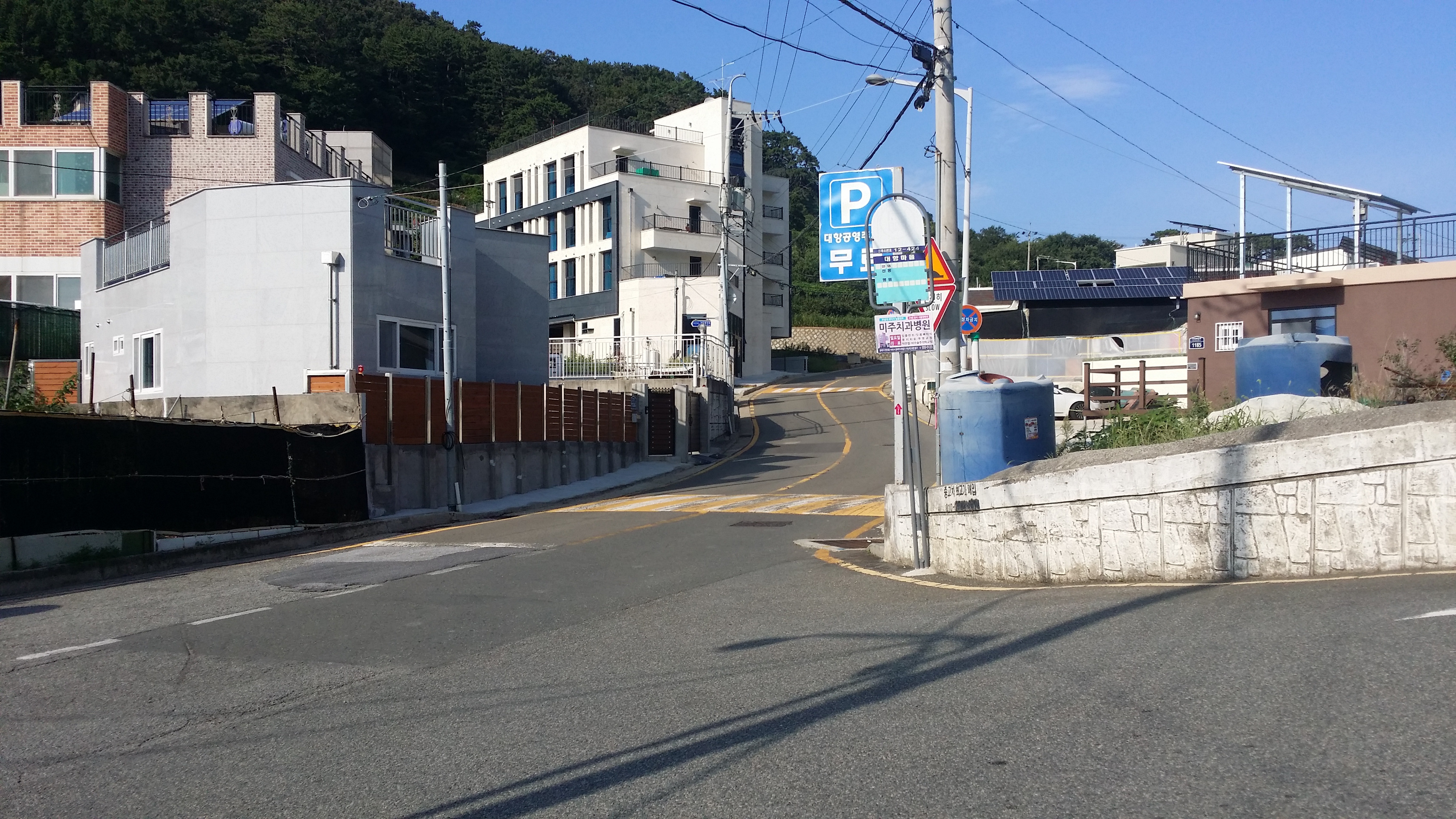 16:20 갈림길 / 마을길을 잘 걷다가 도로로 왜 나갔지 대항마을 공중화장실에서 옷을 갈아 입을려면 마을길로 그대로 직행하고, 버스 정류소로 가고자 한다면 큰 도로로 가는게 맞는데 그냥 마을길 안가고 뭐 하는거야