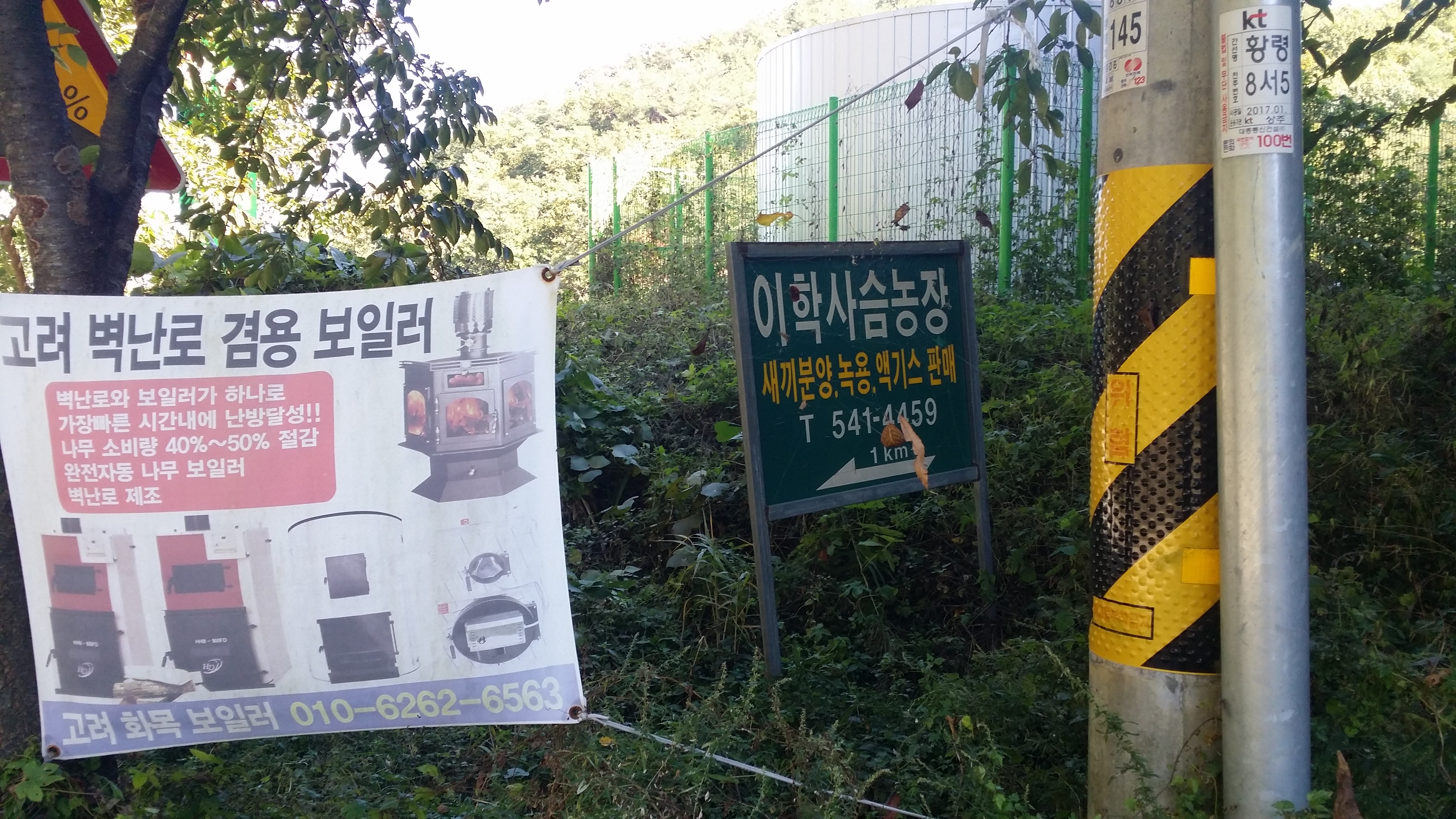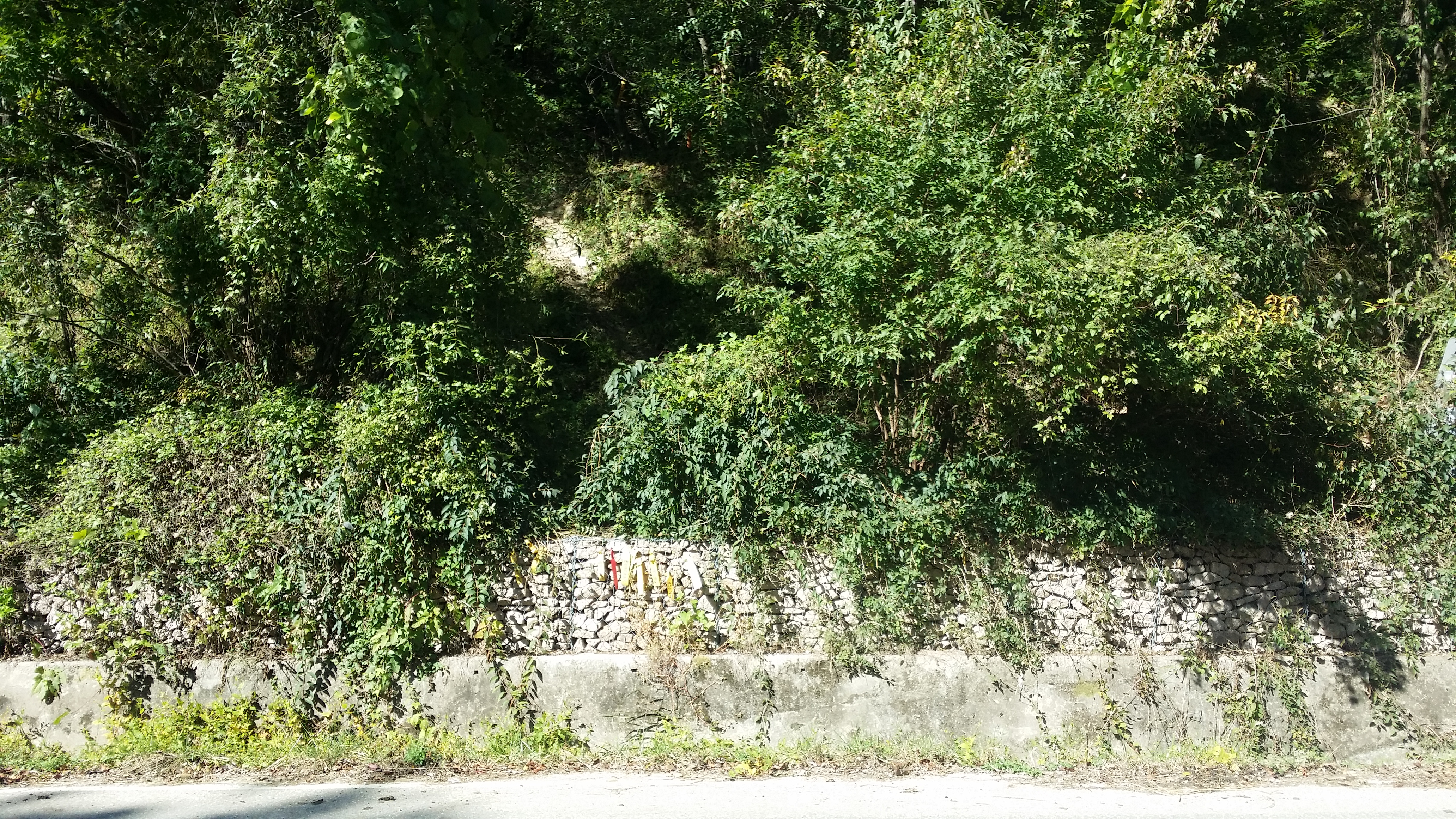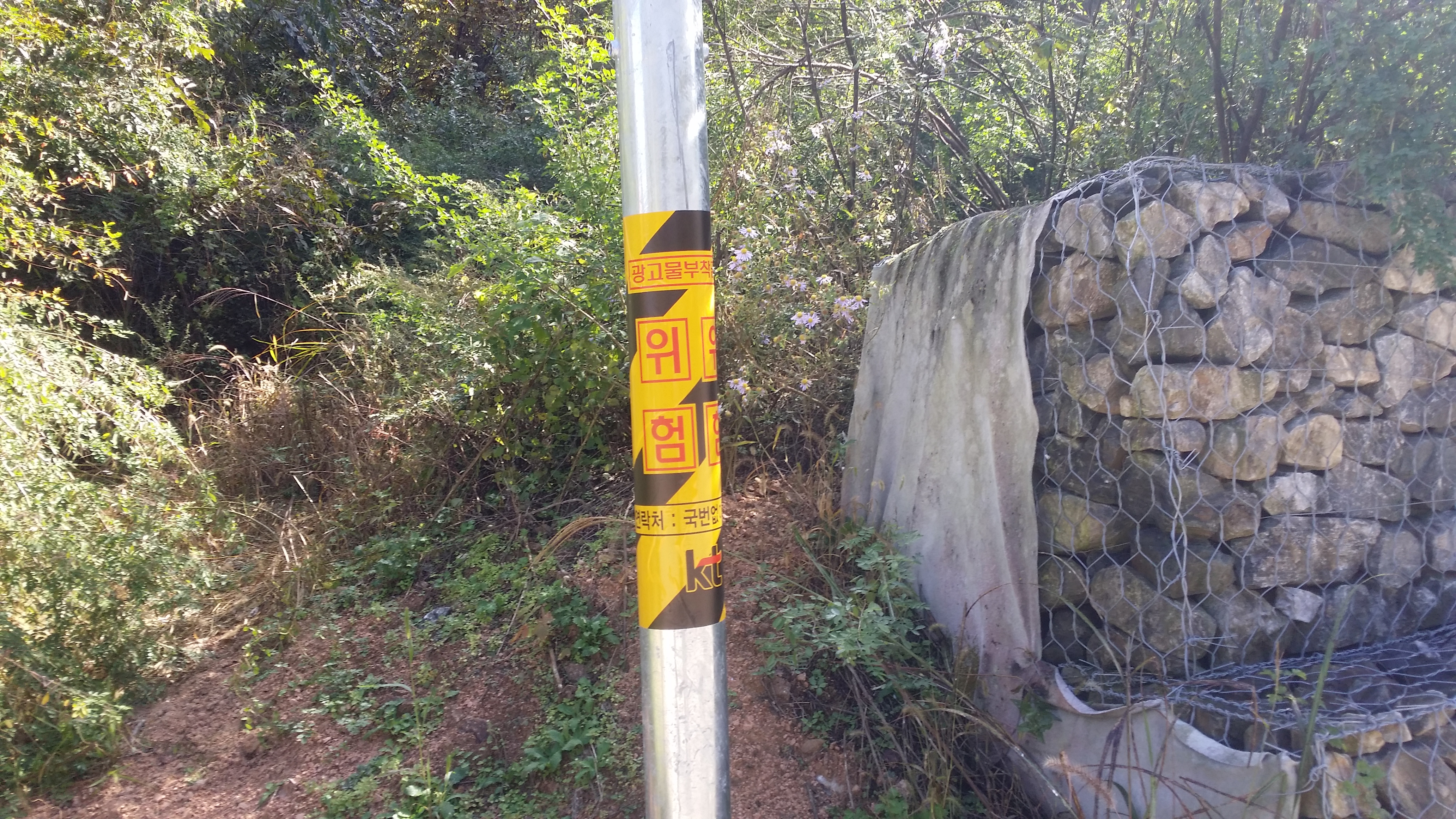 KT전신주가 서있는 옹벽 뒤로 진입한다