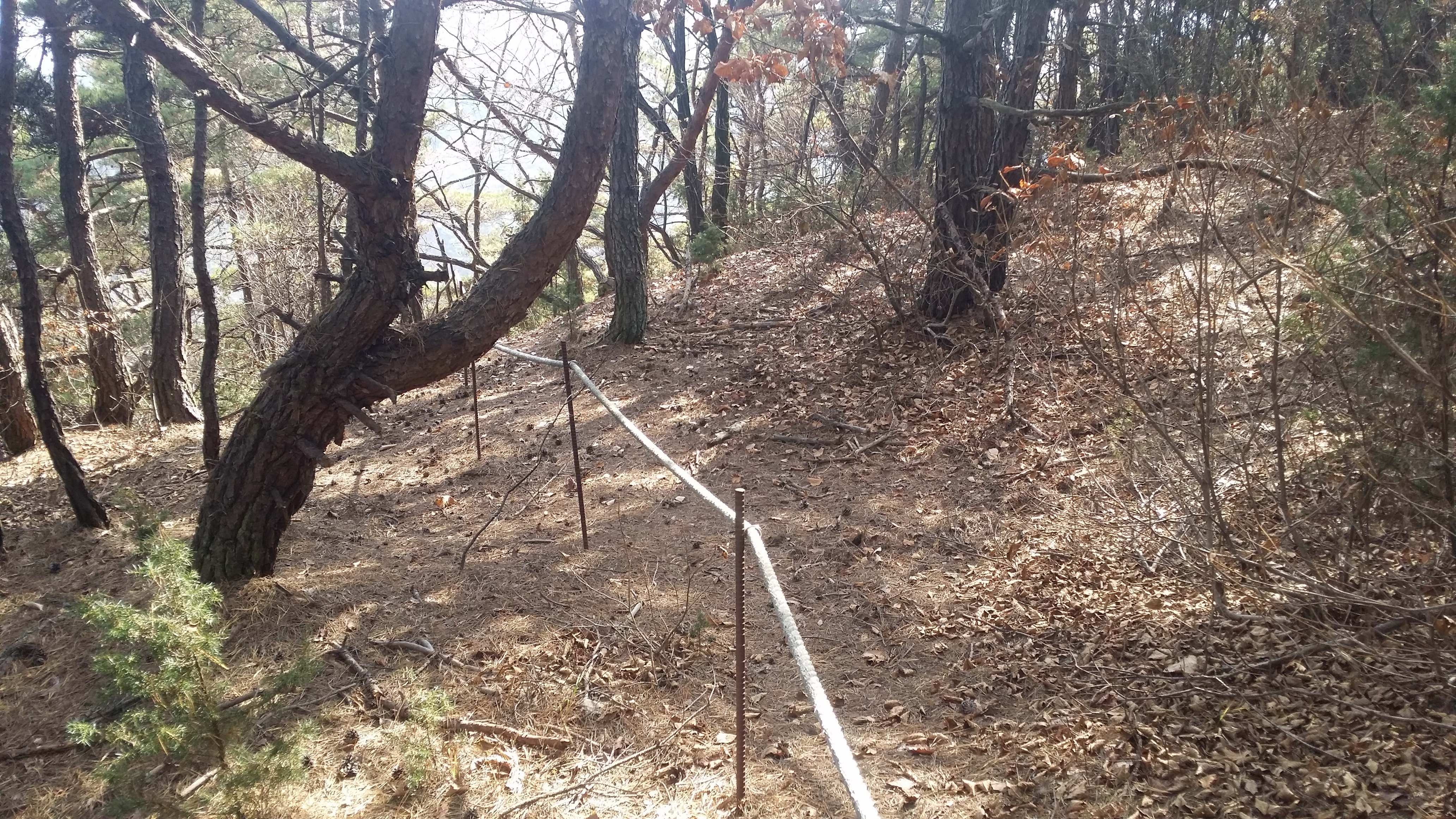 15:15 ~ 15:17 등로체크지점 / 직진 좋은 등로를 버리고 좌측으로 내려서야 하는데 정확한 등로가 없다.