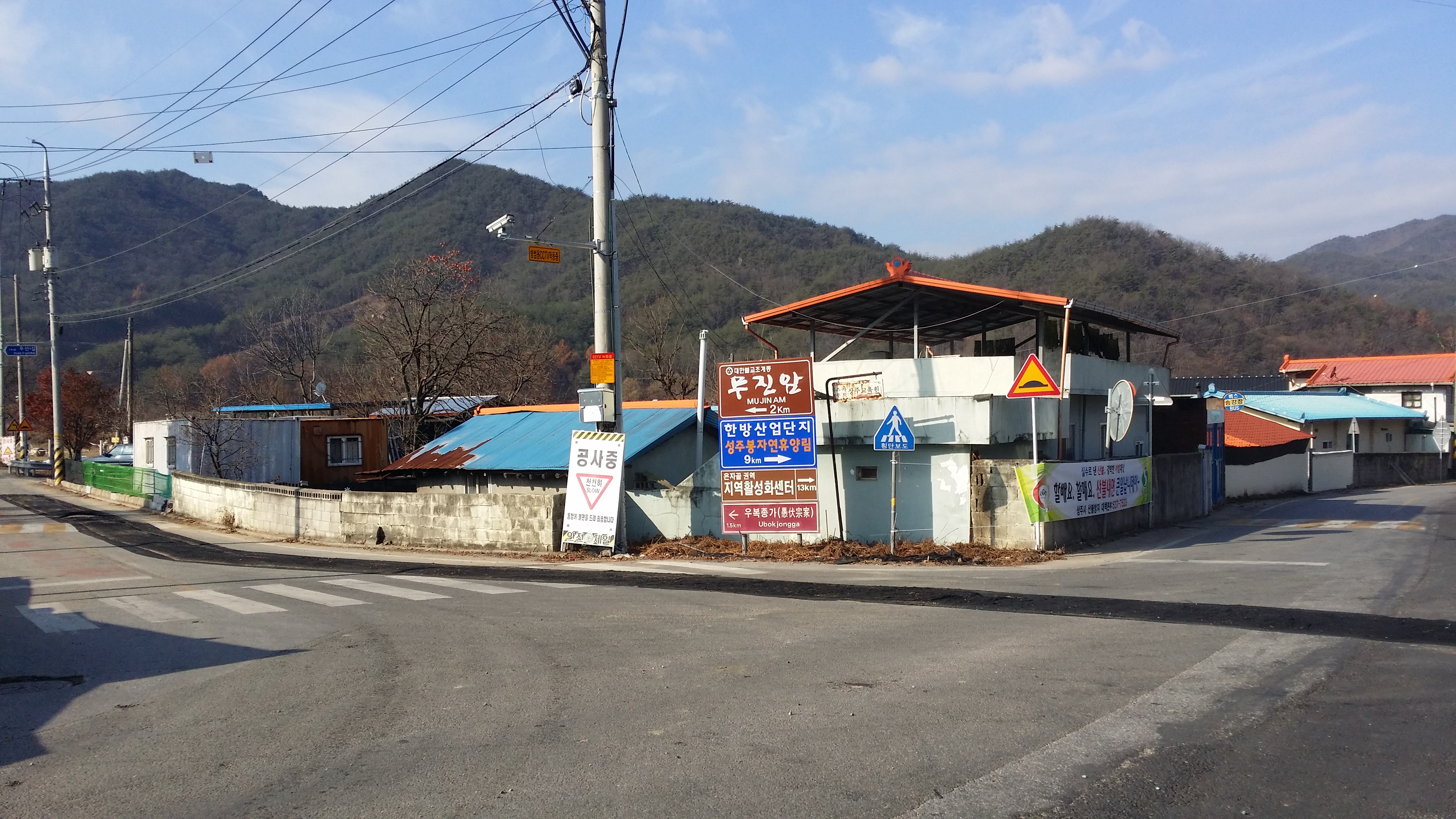 15:36 농가 / 3마리의 견공이 지키고 있다. 1마리는 줄이 풀려 졸졸 따라오고, 우측으로 진입해야 하는데 견주와 조우 할까봐 도로를 따라 걷다가 우측으로 우회하여 진입한다