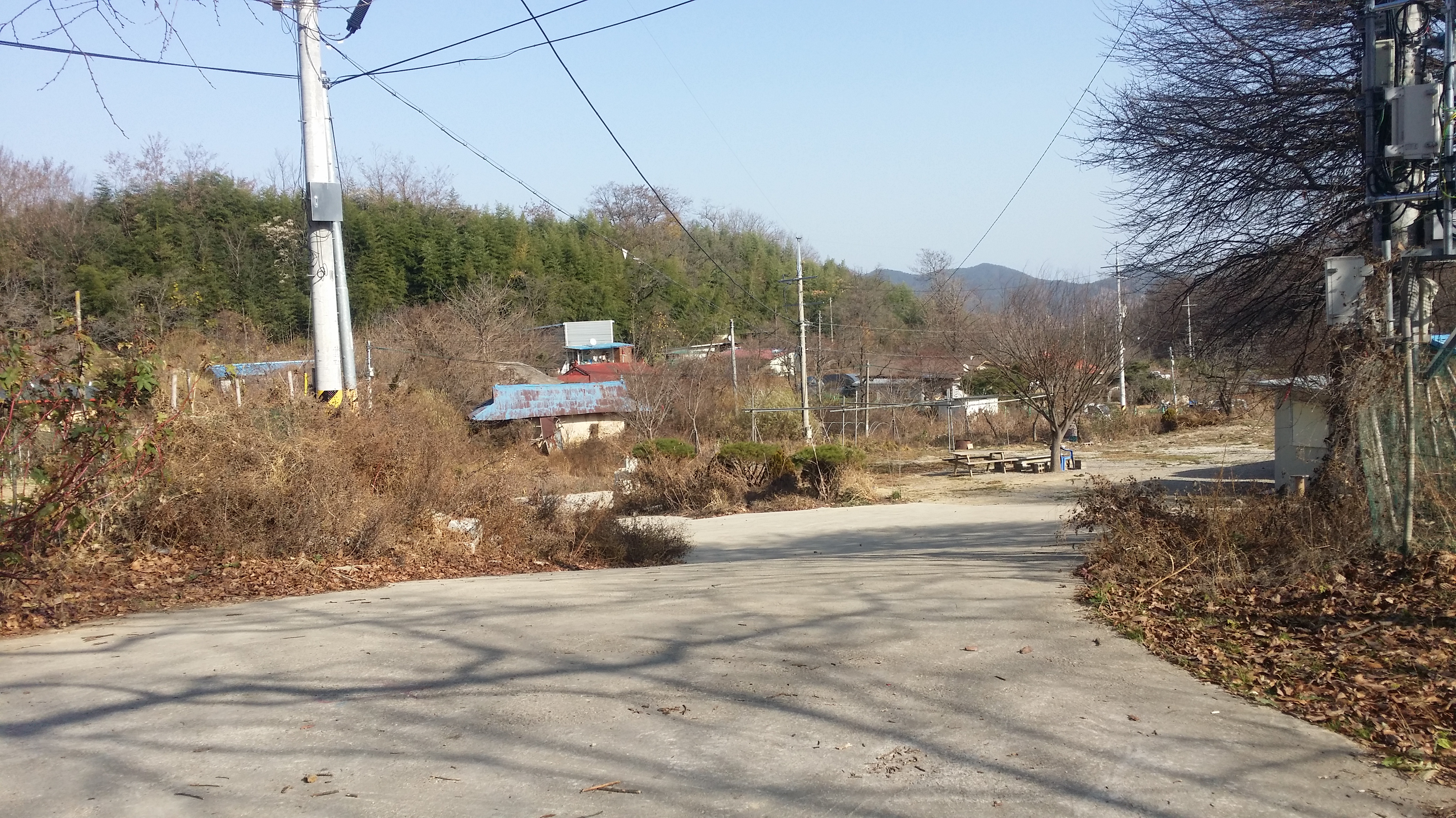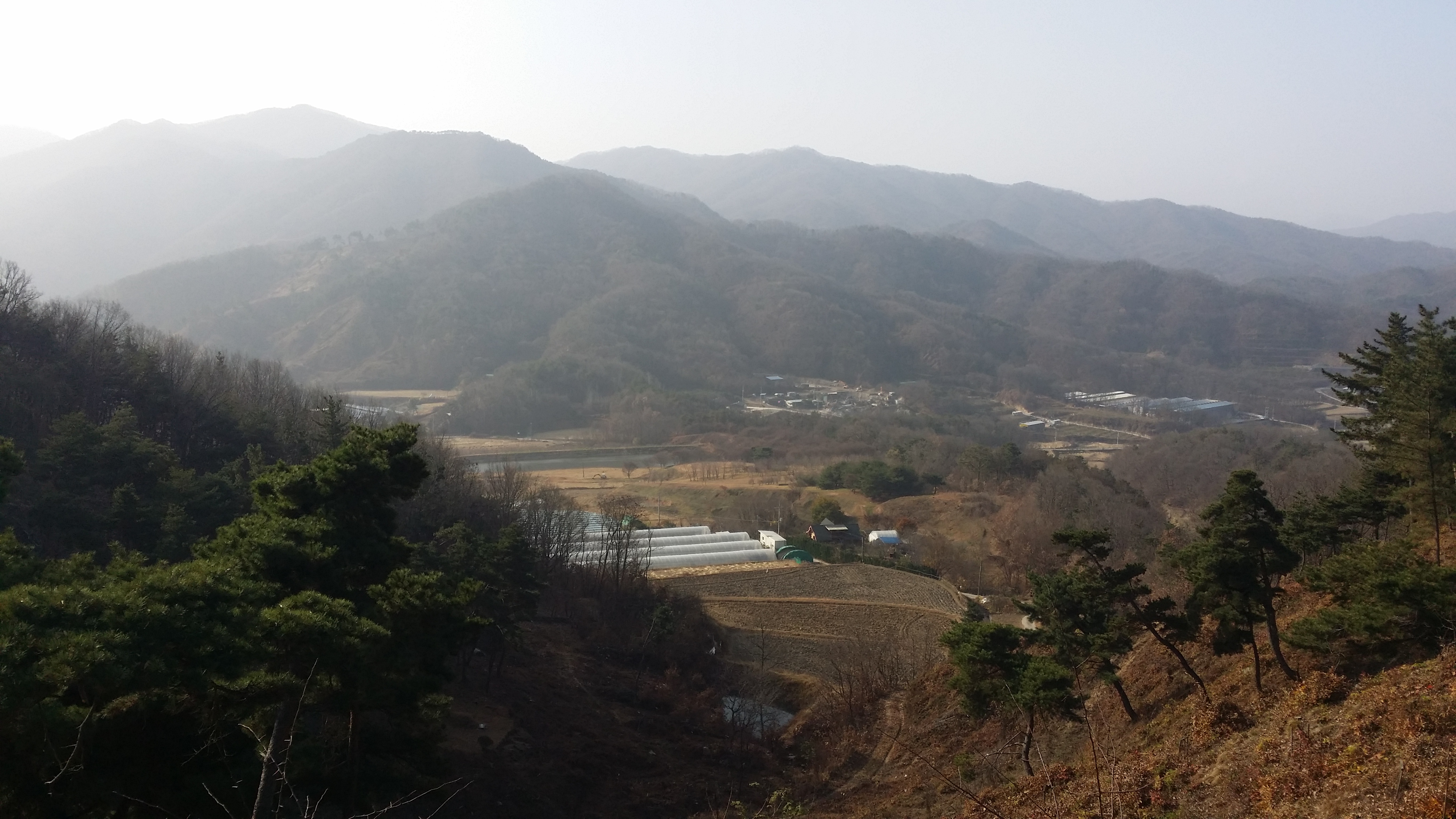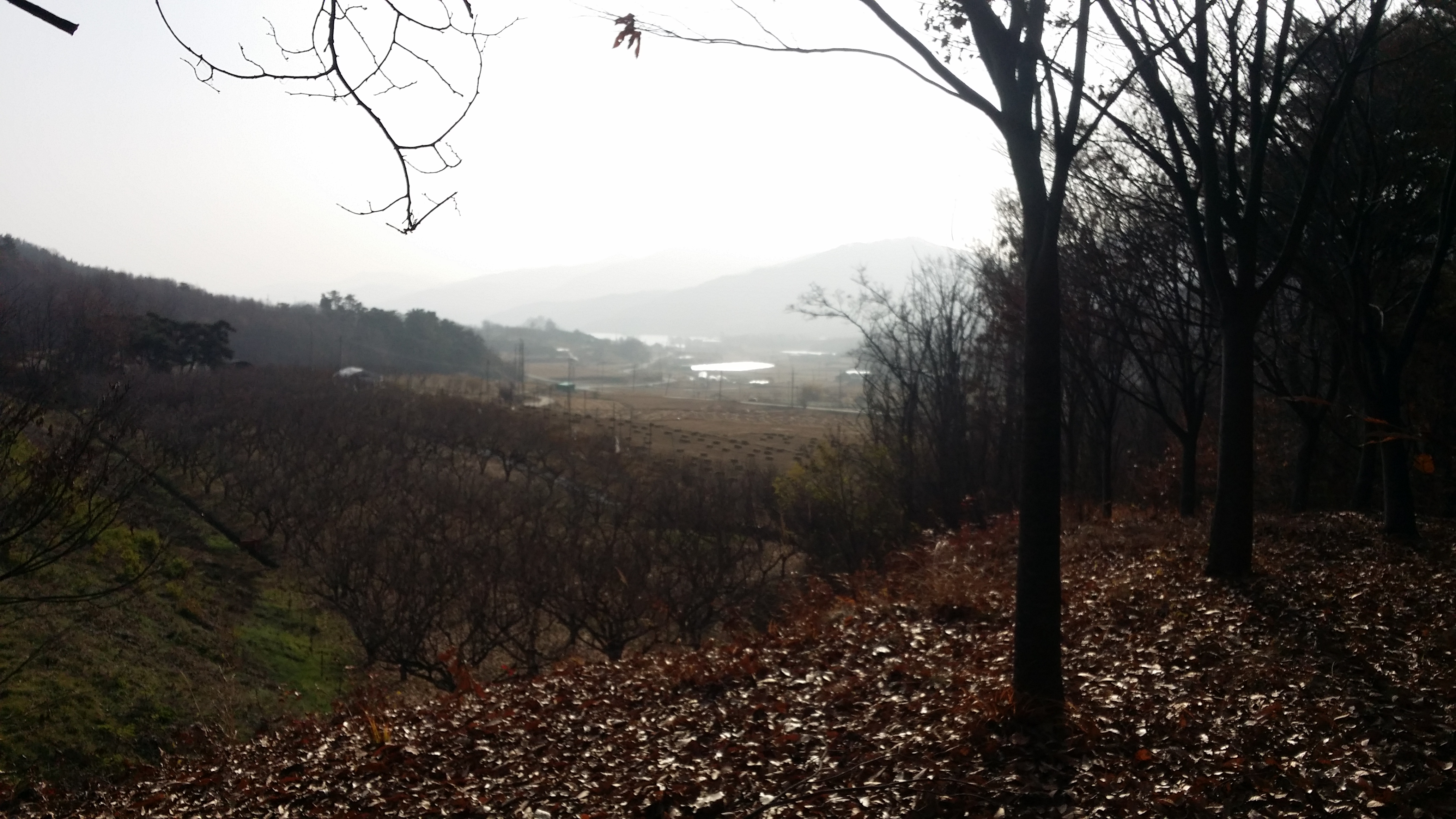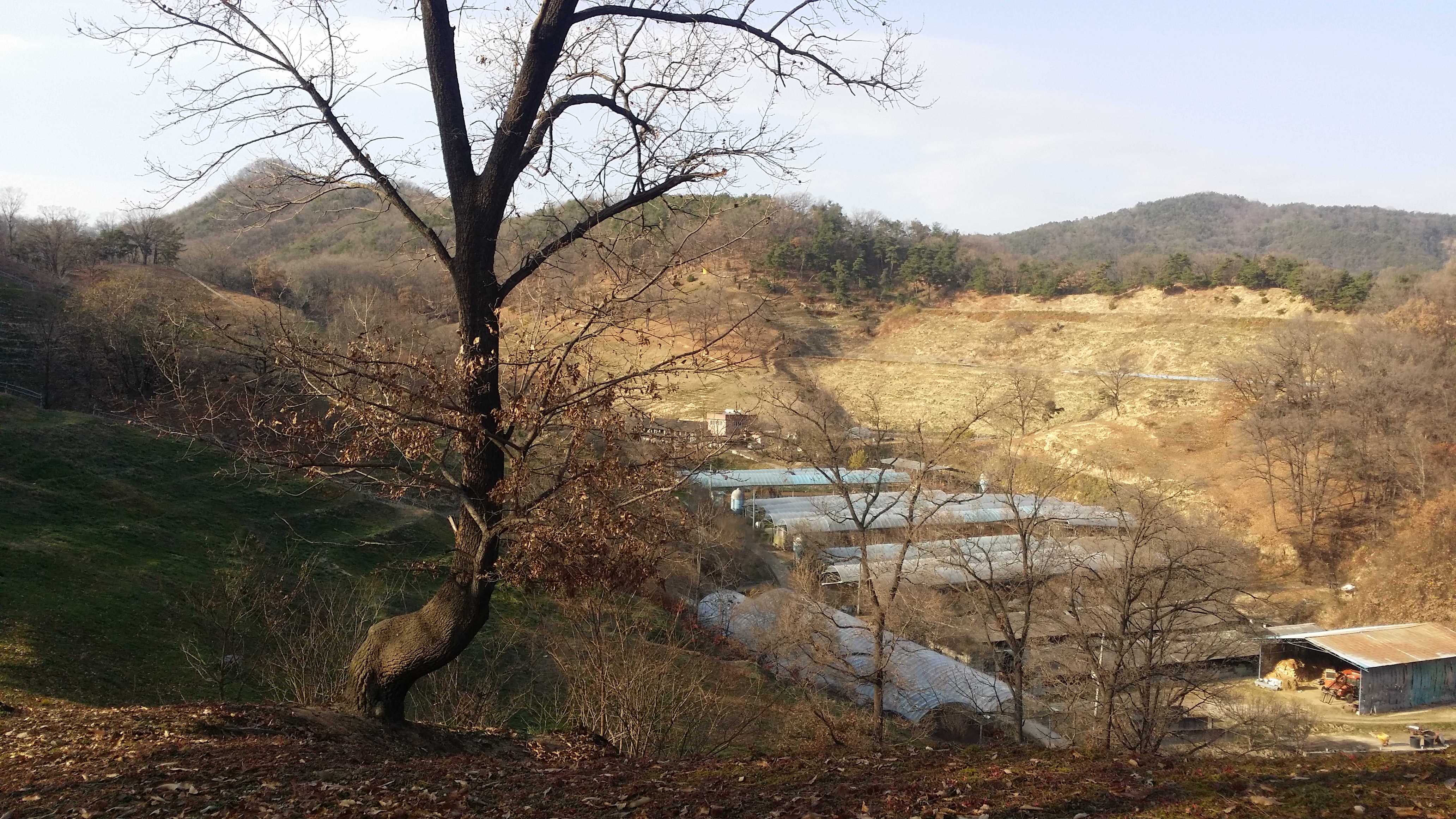 15:22 옥성 곶감 영농법인 / 마당 건너 저기 능선으로 올라서야 하는데 펜스로 가로막혀 있다