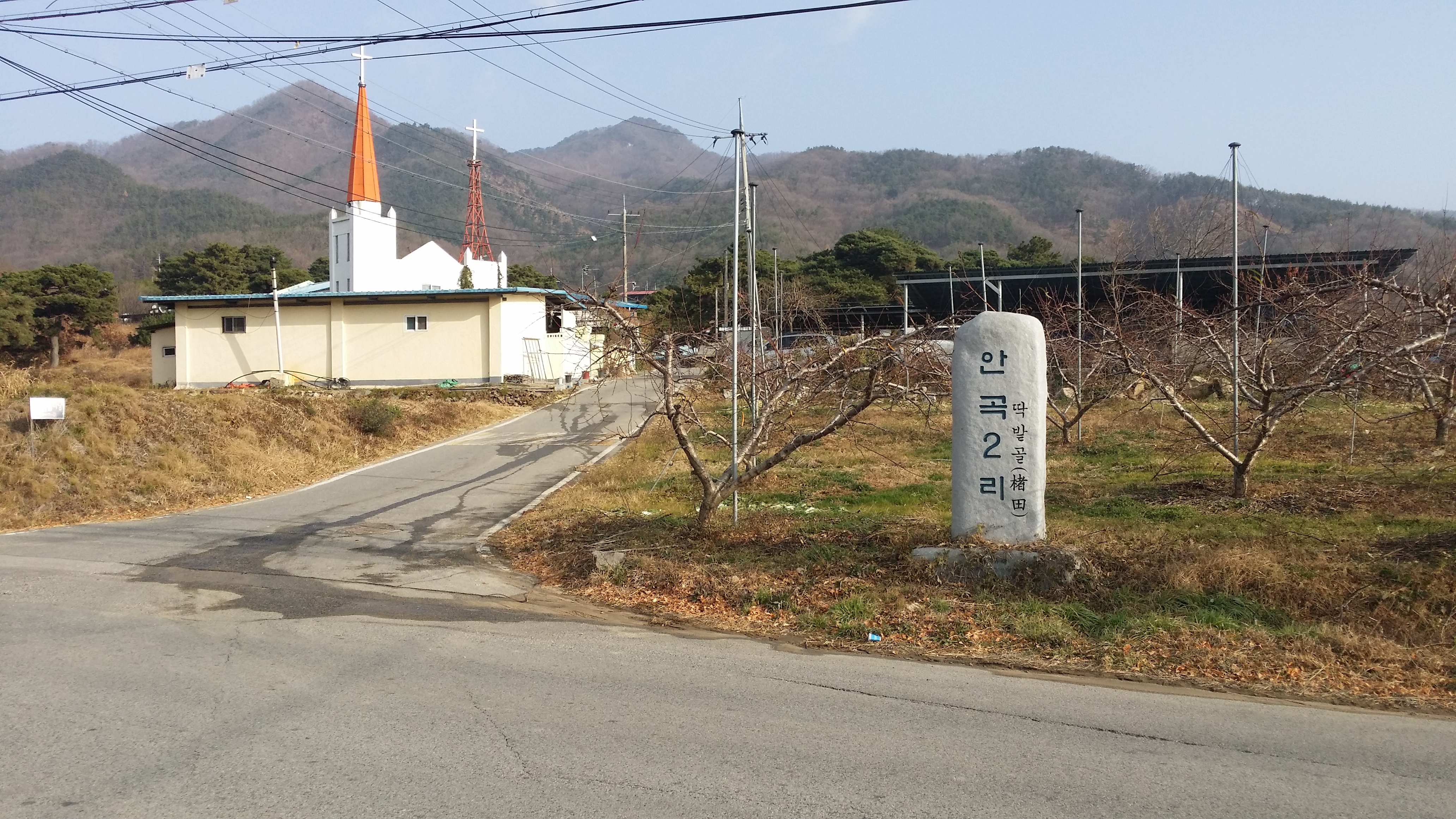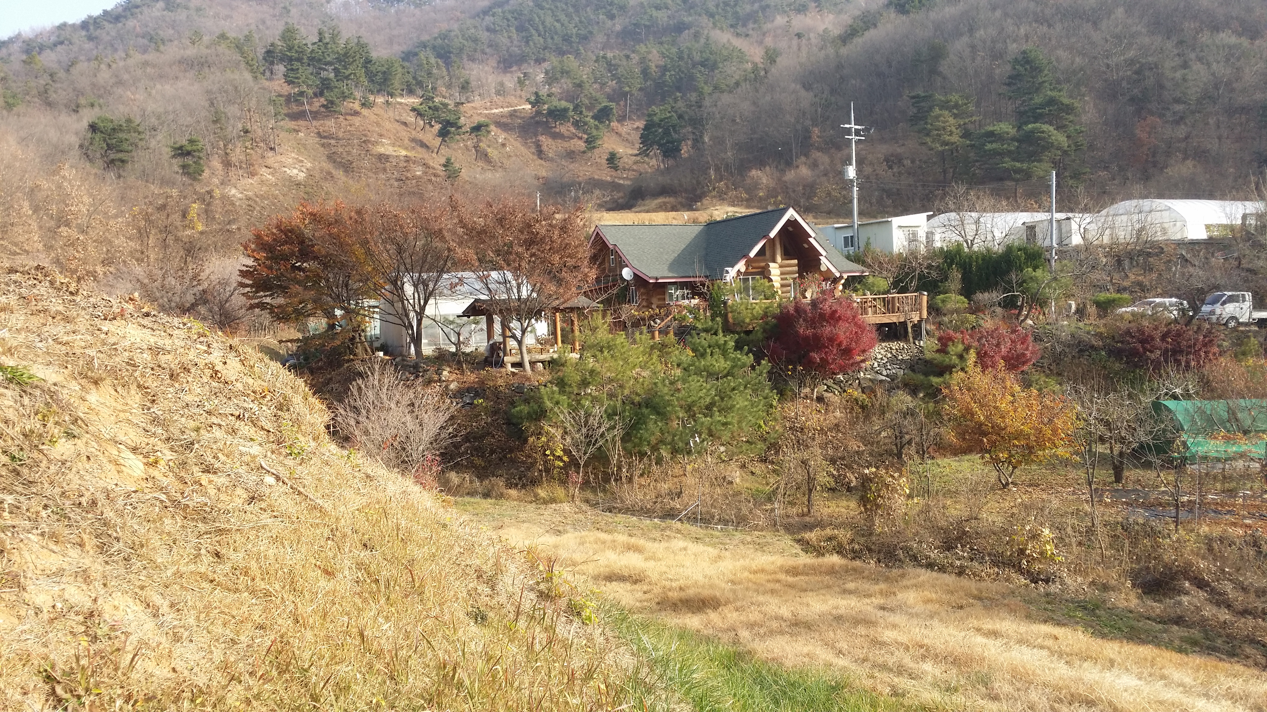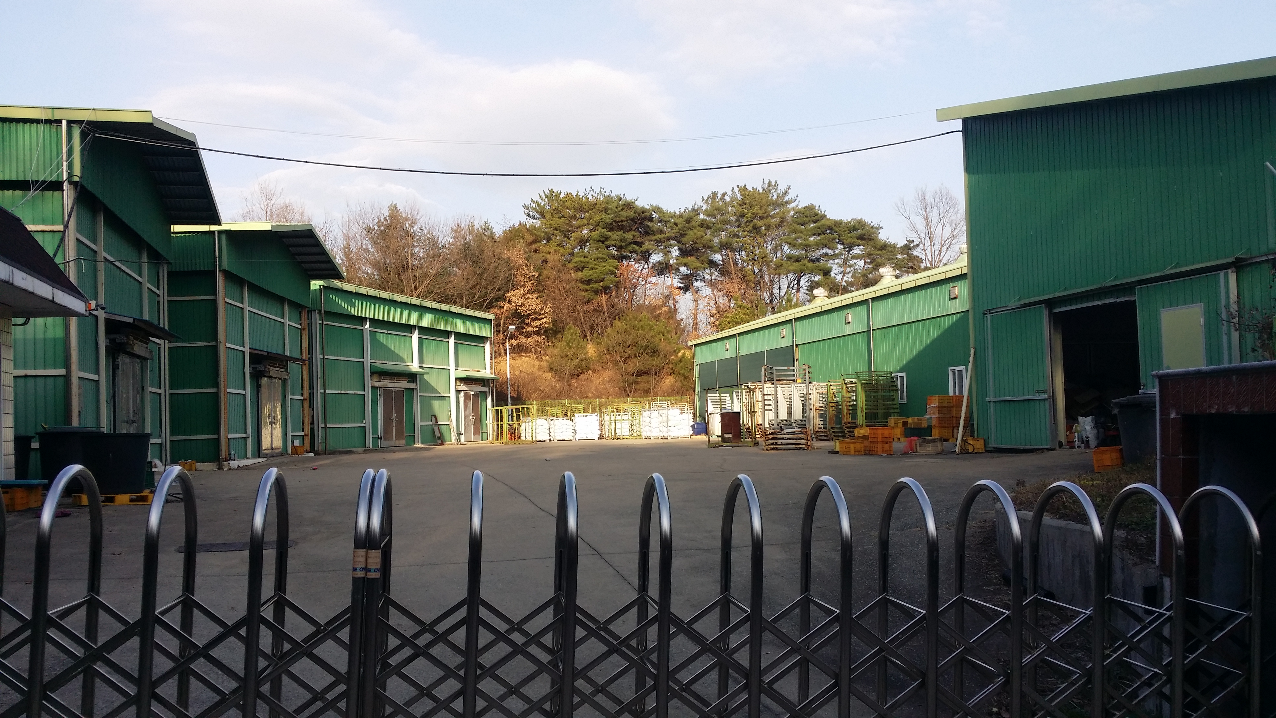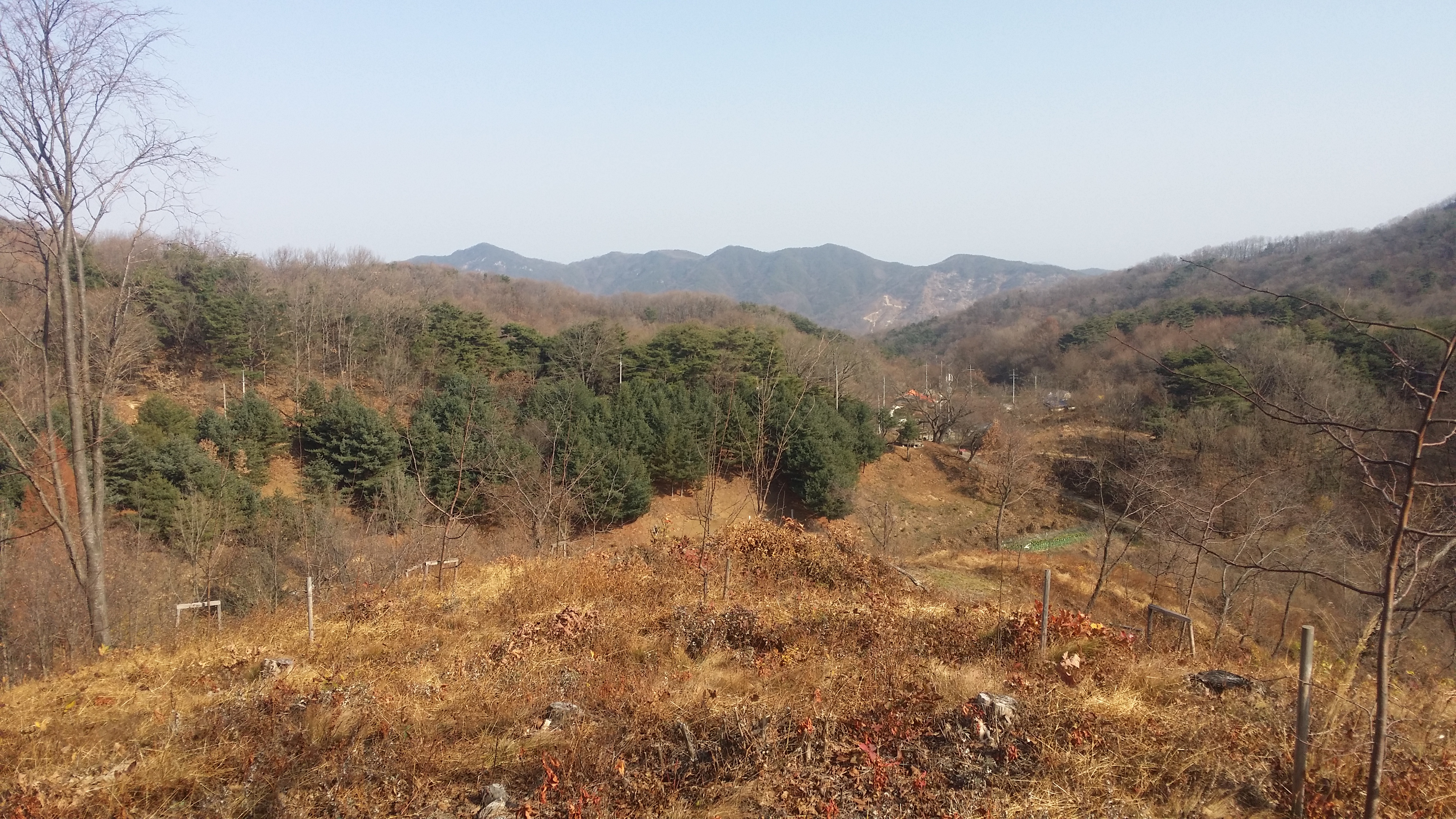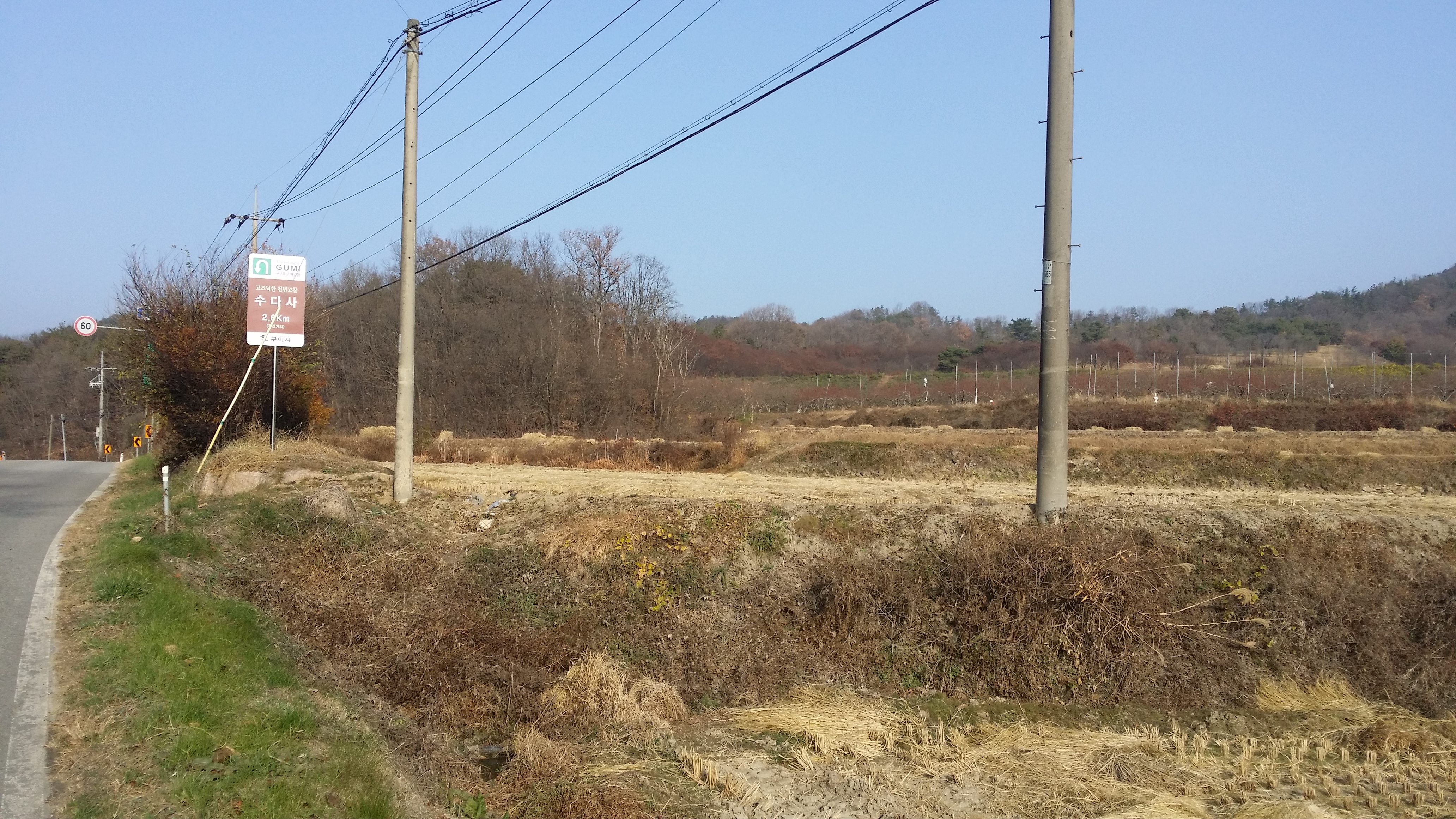 15:22 옥성 곶감 영농법인 / 마당 건너 저기 능선으로 올라서야 하는데 펜스로 가로막혀 있다