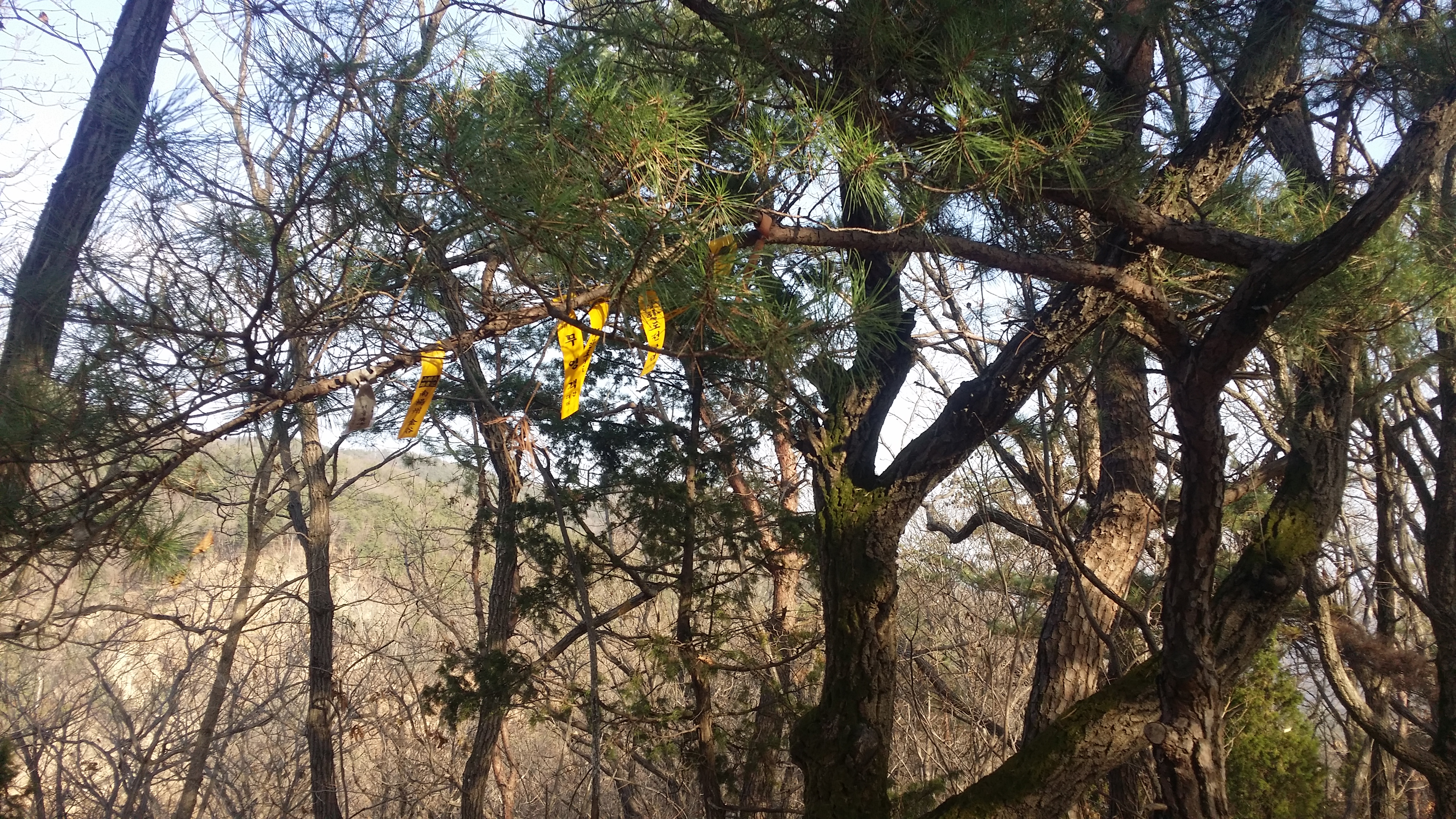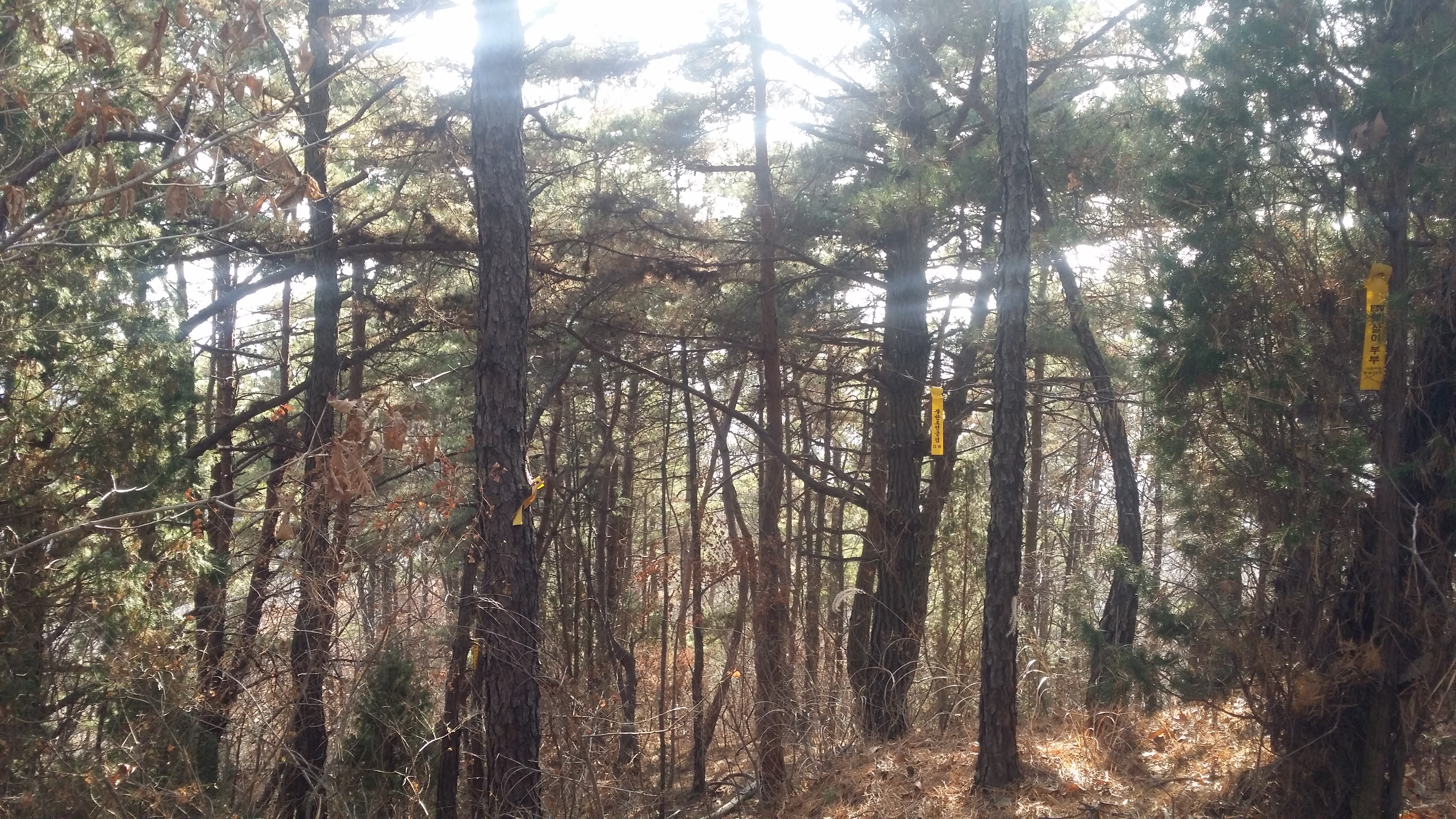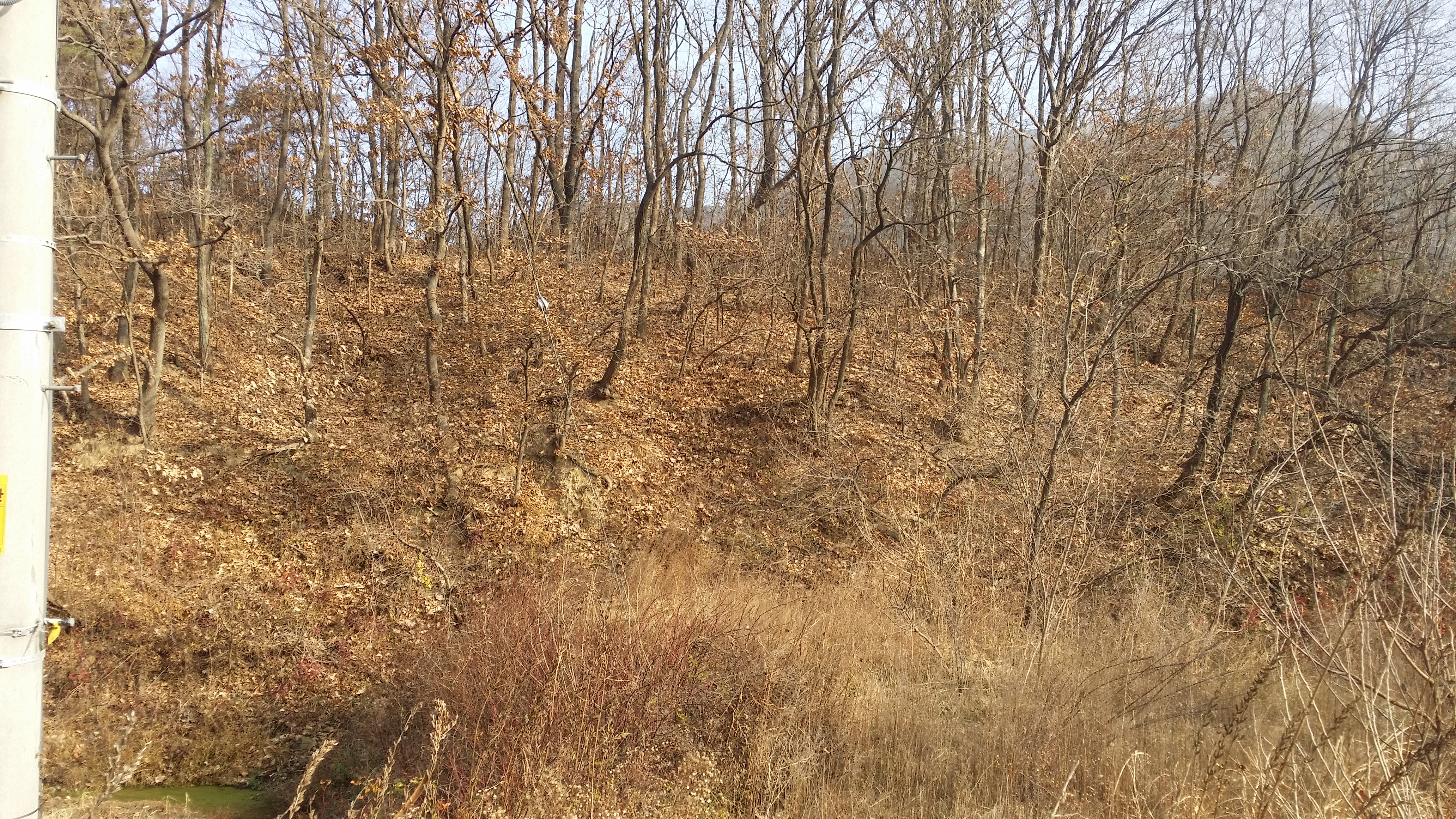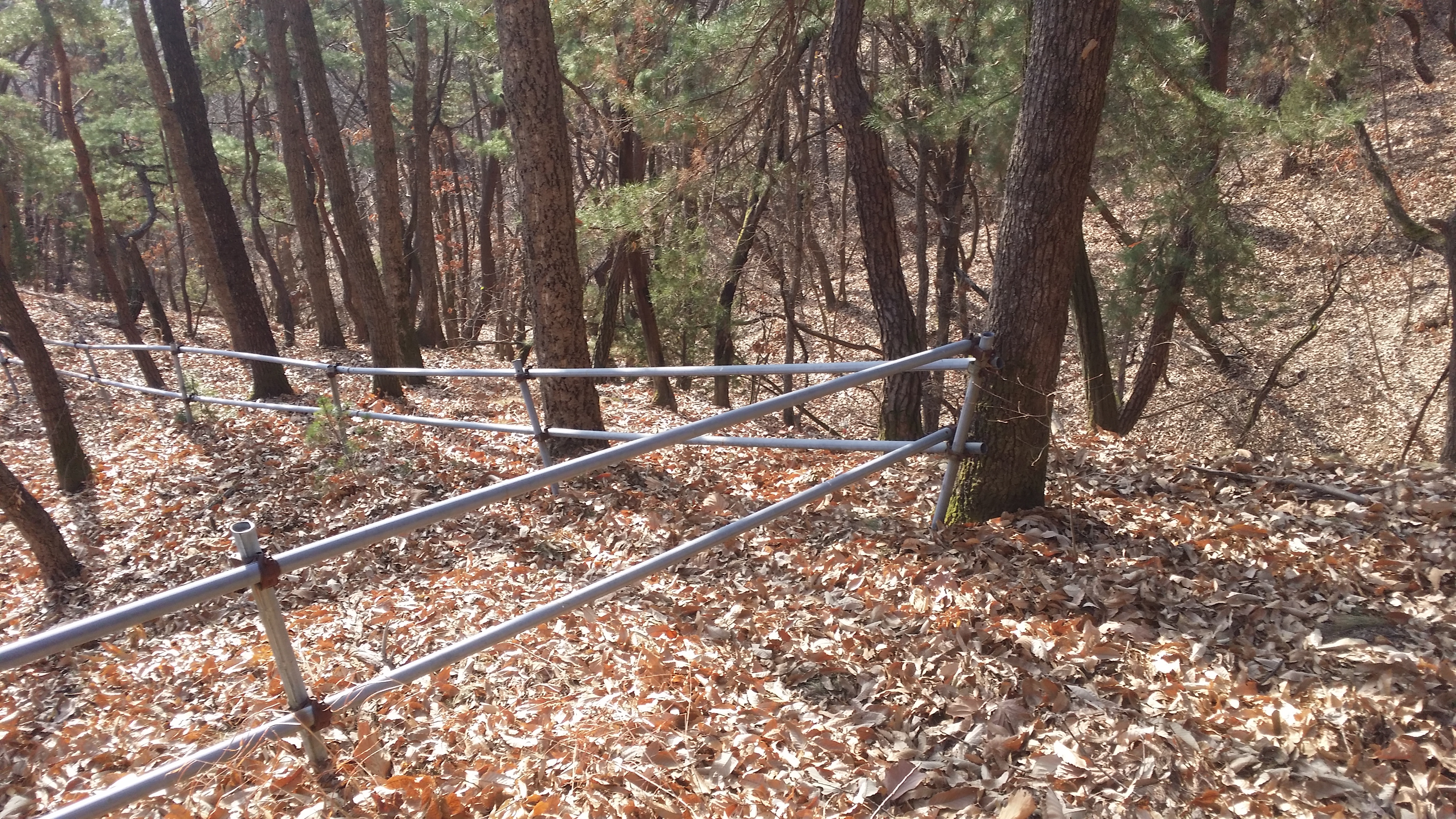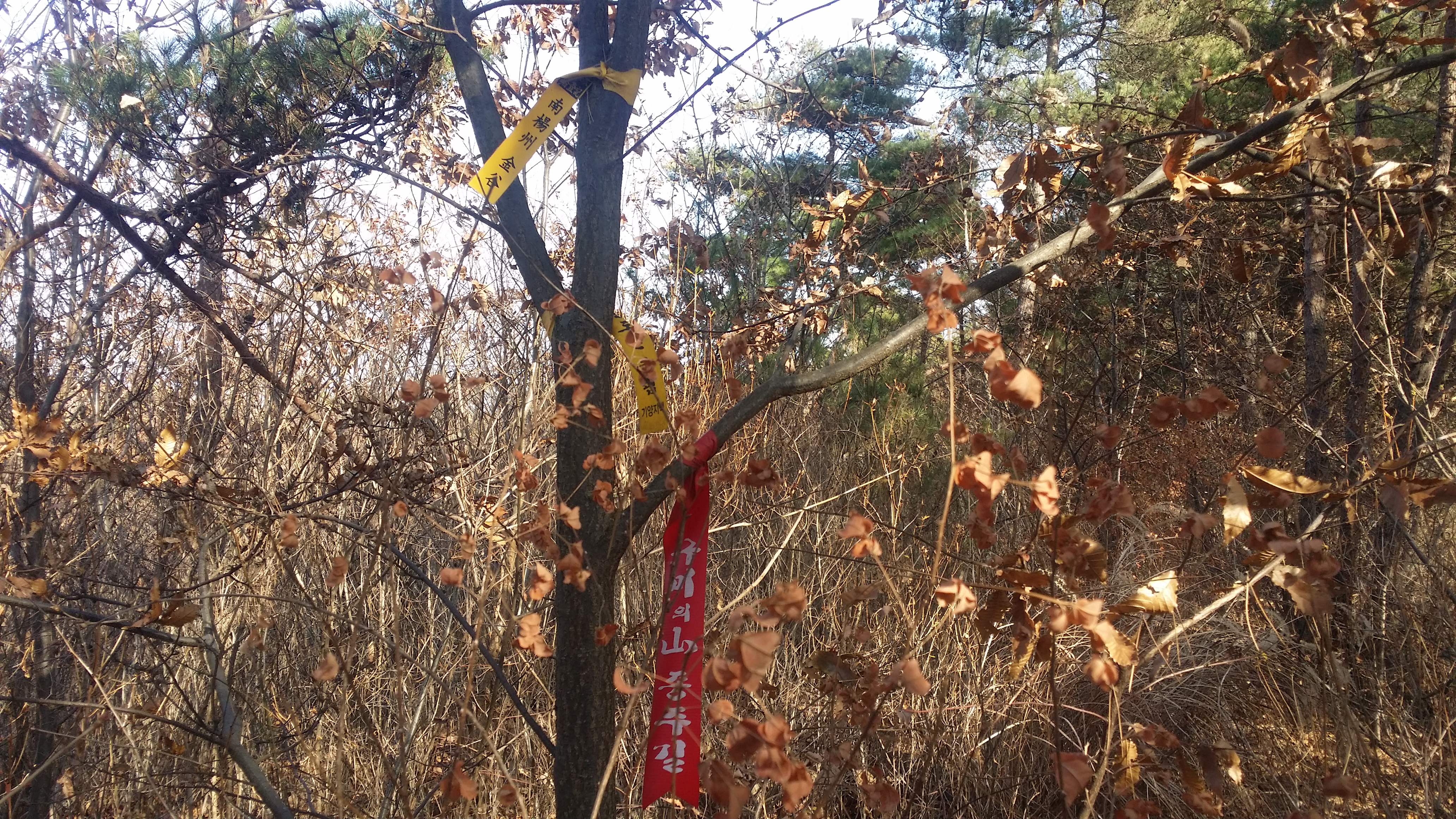 09:51 진드기 기피제를 뿌리고 상주 방면으로 조금 내려서 웅덩이를 지나 측면으로 올라선다.