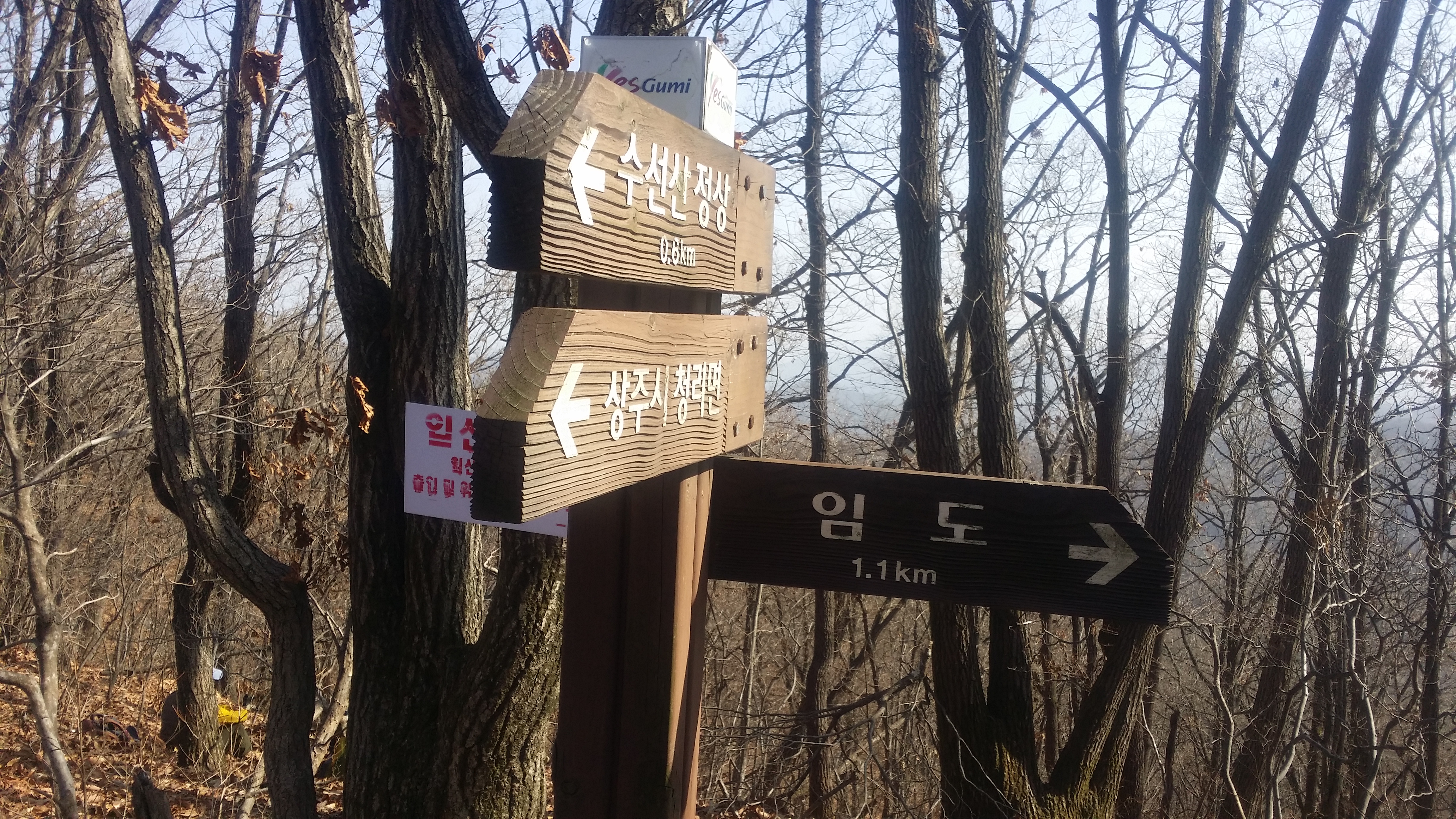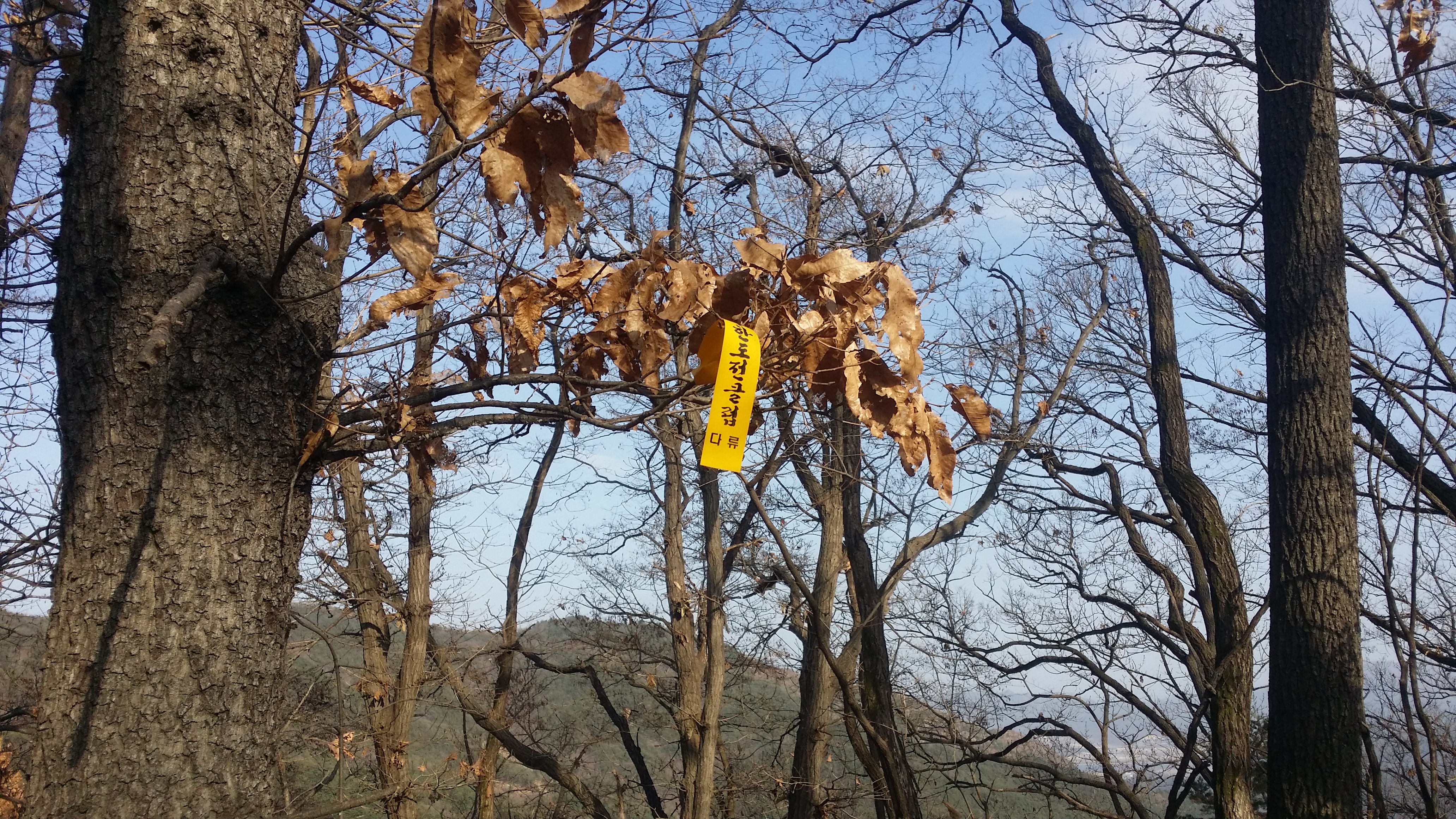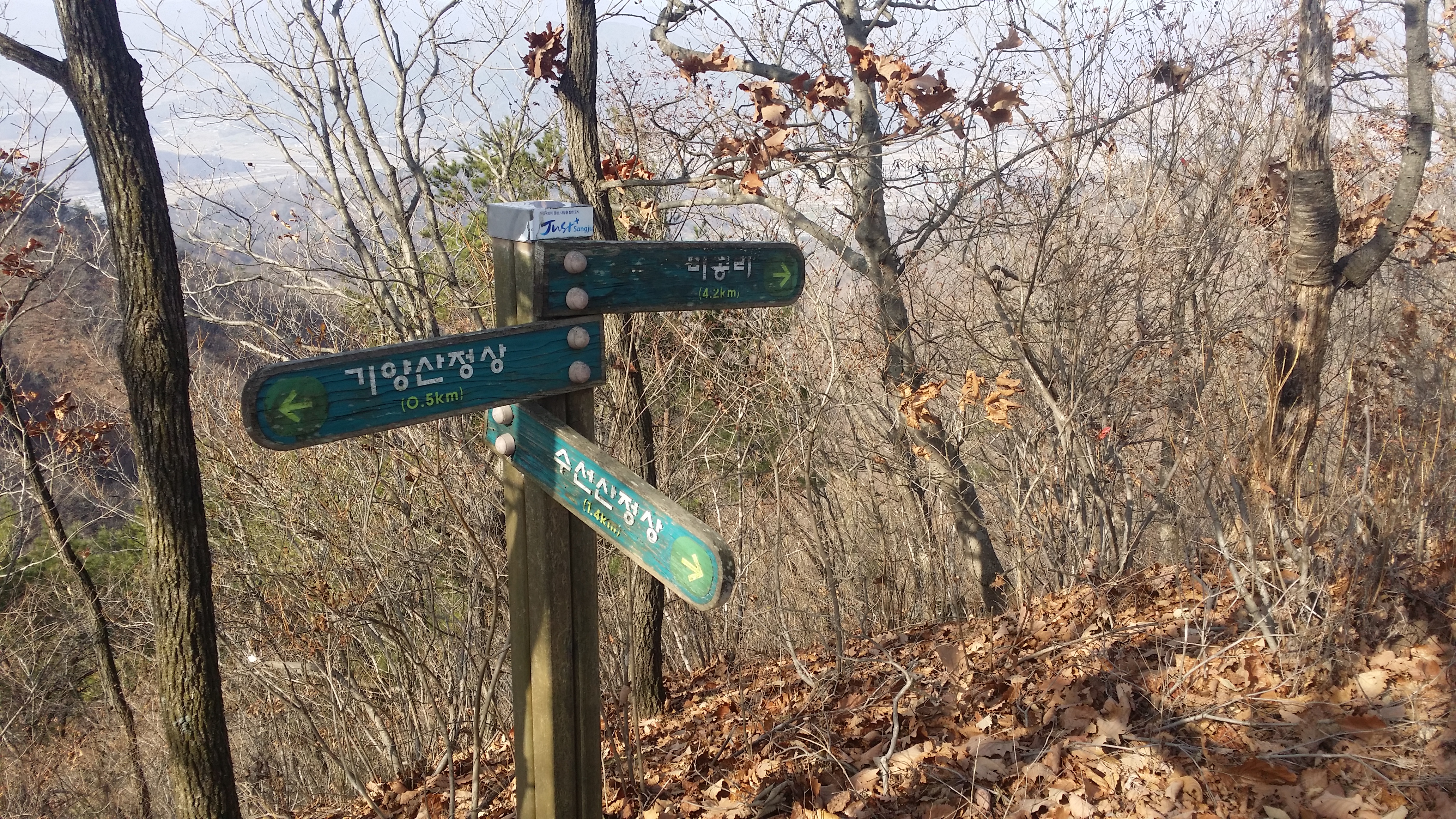 이번 구간의 날머리 탈출은 중부내륙 고속도로 하행선 선산휴계소에서 고속버스를 타고, 사상 또는 동대구로 탈출이 용이하여 모처럼 시간에 압박을 안받고 산행을 했다. 기양산 오름길은 낙엽의 윤활작용에 힘을 실지 못하고 미끄러짐과의 싸움 이었다. 평소 같으면 바람의 고마움을 절실히 느끼는 오름길이었지만 오늘은 콧물을 흘리며 올라서야했다. 바람이 싫다. 춥다. 감기 재발할라